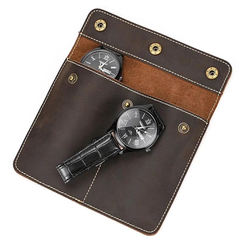 1pc 2pcs Slots Watch Cover Travel Case Chic Portable Vintage Leather Display Watch Storage Bags Watch Case Cowskin Organizers