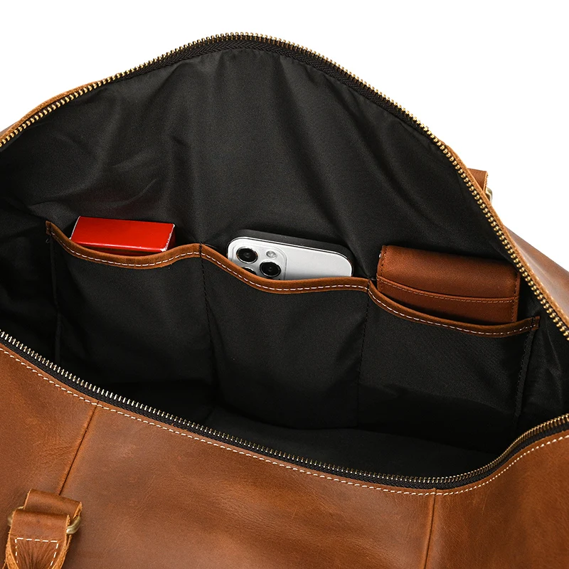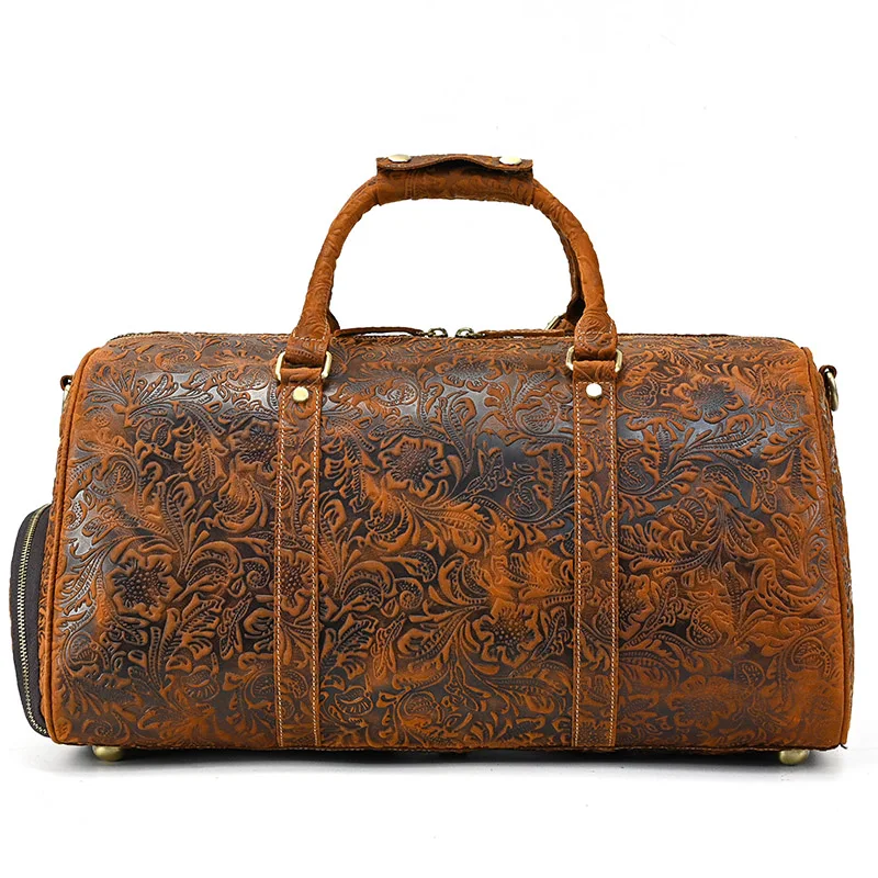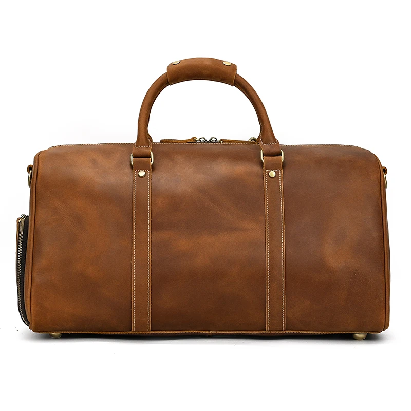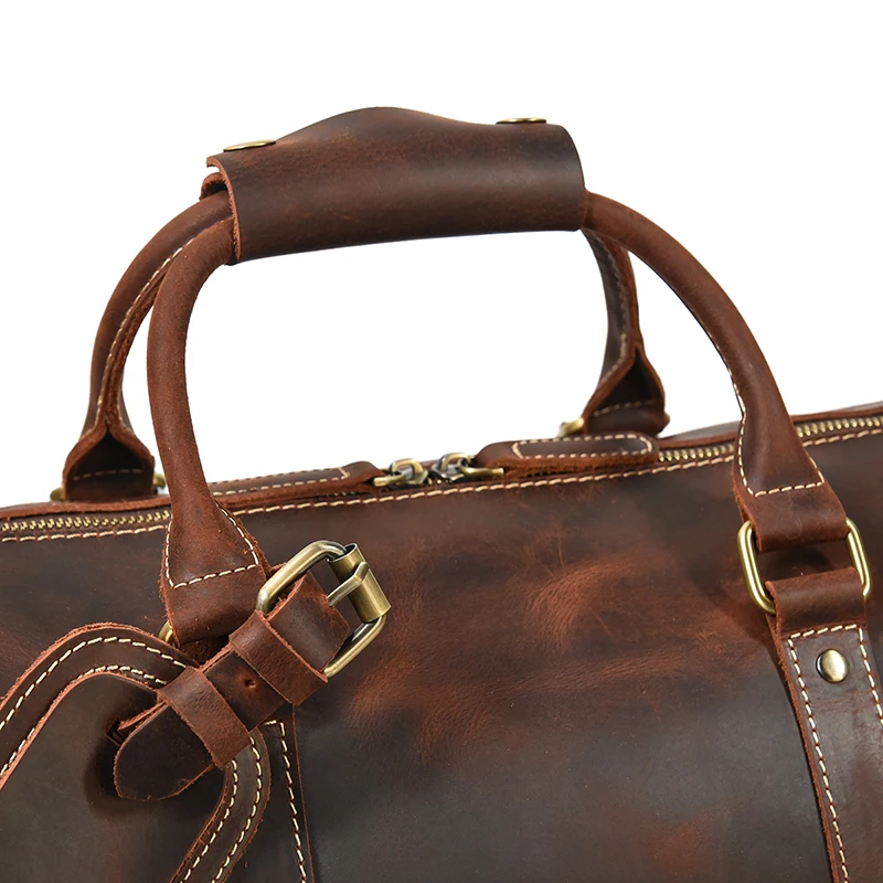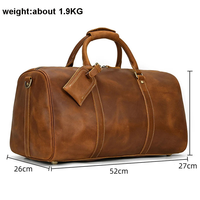 52cm Vintage Genuine Leather Travel bag for Men Crazy Horse Leather Travel Duffle Large Shoulder Bag Cowhide Bag Weekend Bag
