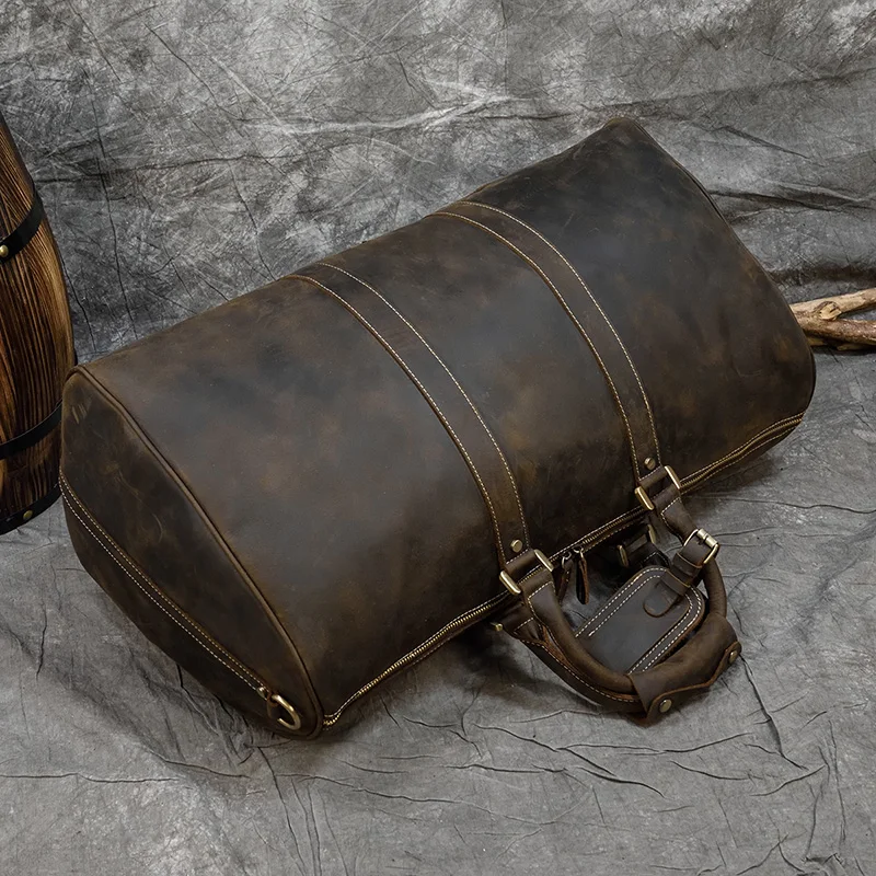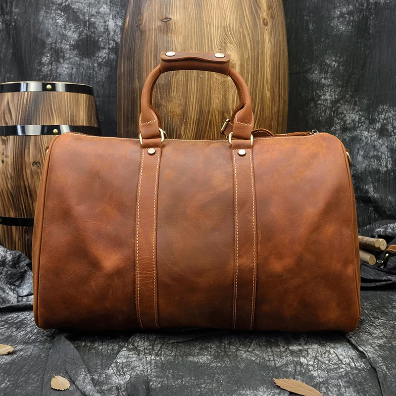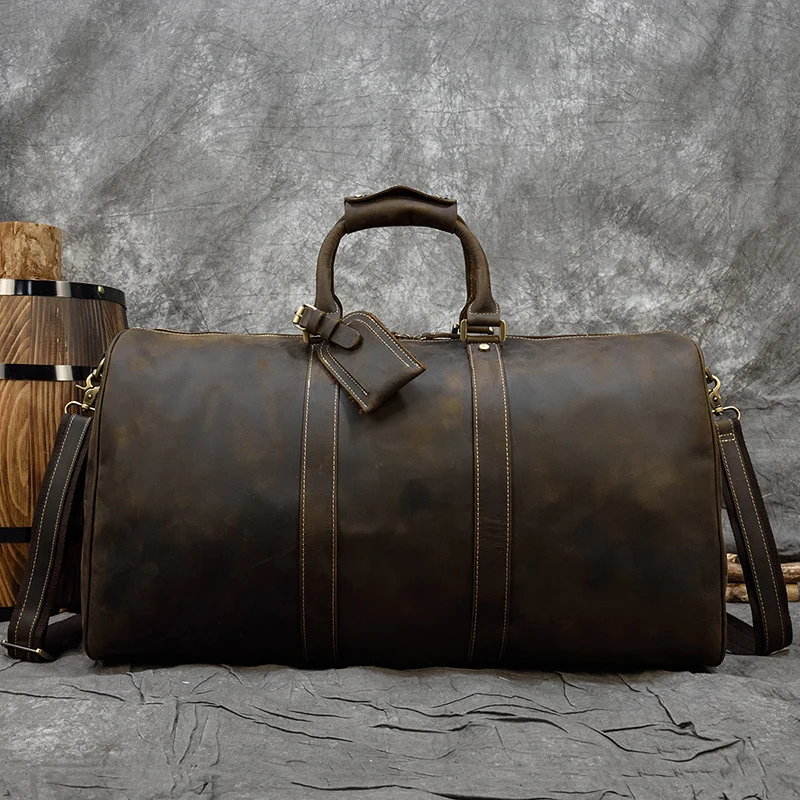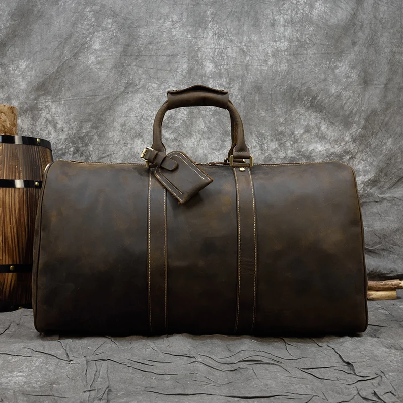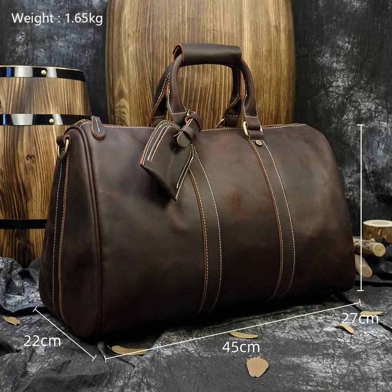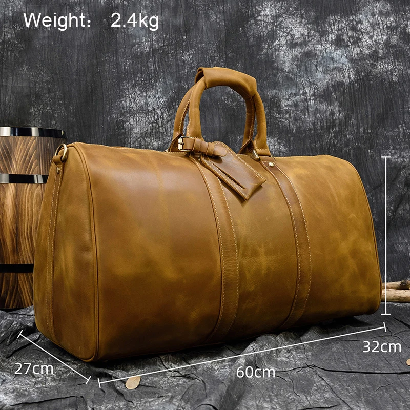 60cm Vintage Mens Leather Travel Bag Real Leather Weekender Bag Overnight Travelling Handbag For 3 days Business Travel