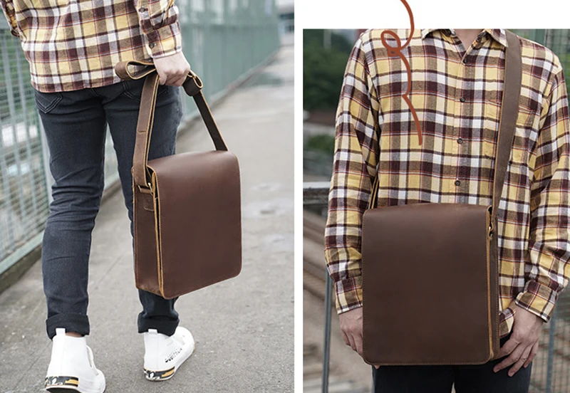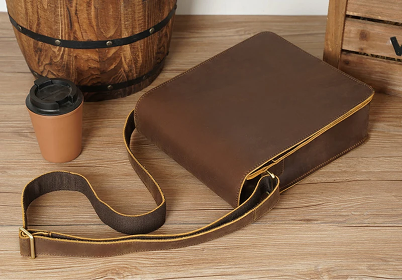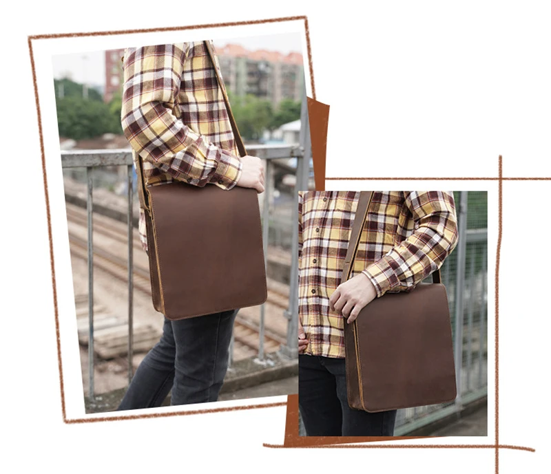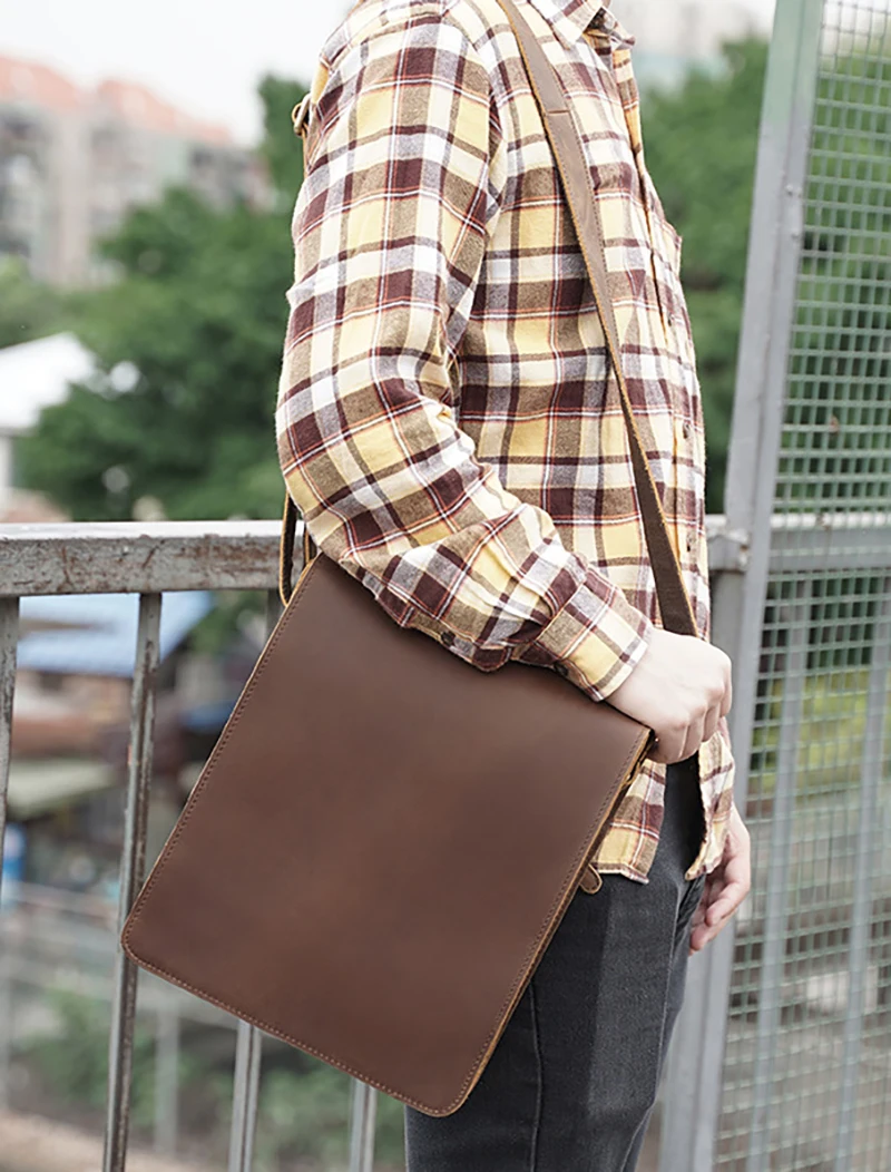 A4 Shoulder Bag Mens Document Business Bag Genuine Leather Messenger Bag Crossbody Daily Commuter Bag for Man Real Cowskin Bag