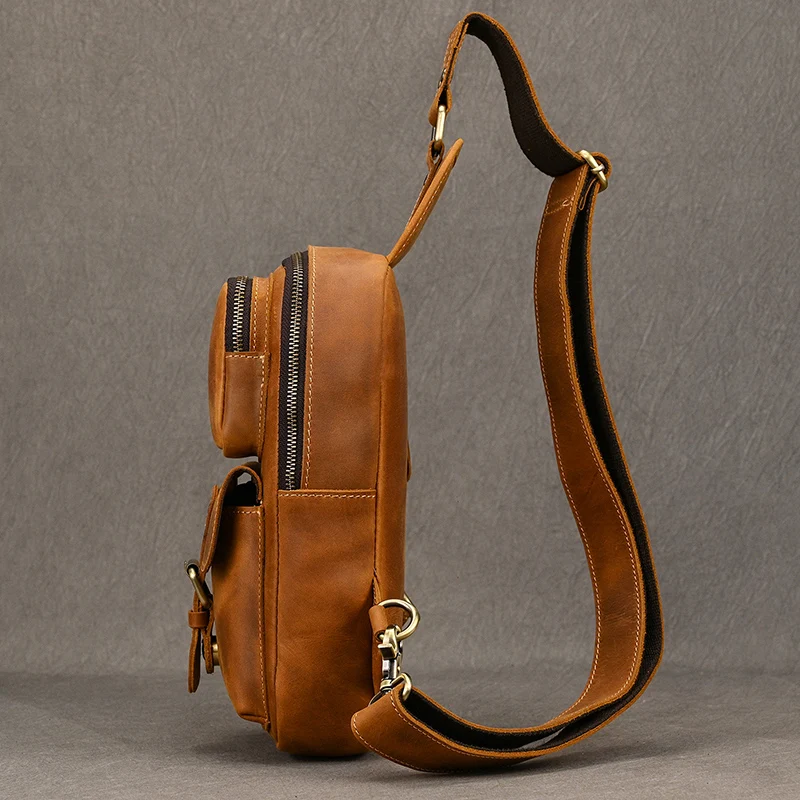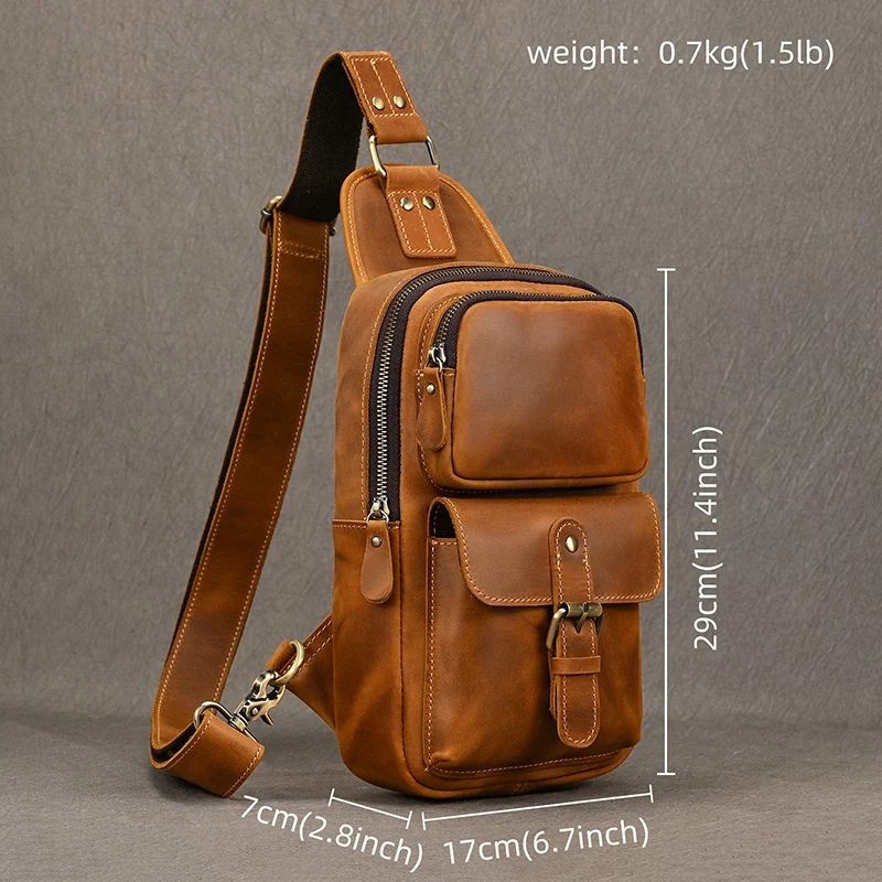 Crazy Horse Leather Men Chest Bag Casual Top Layer Cowhide New Pattern Men’s Crossbody Bag Single Shoulder Bagpack Male Designer