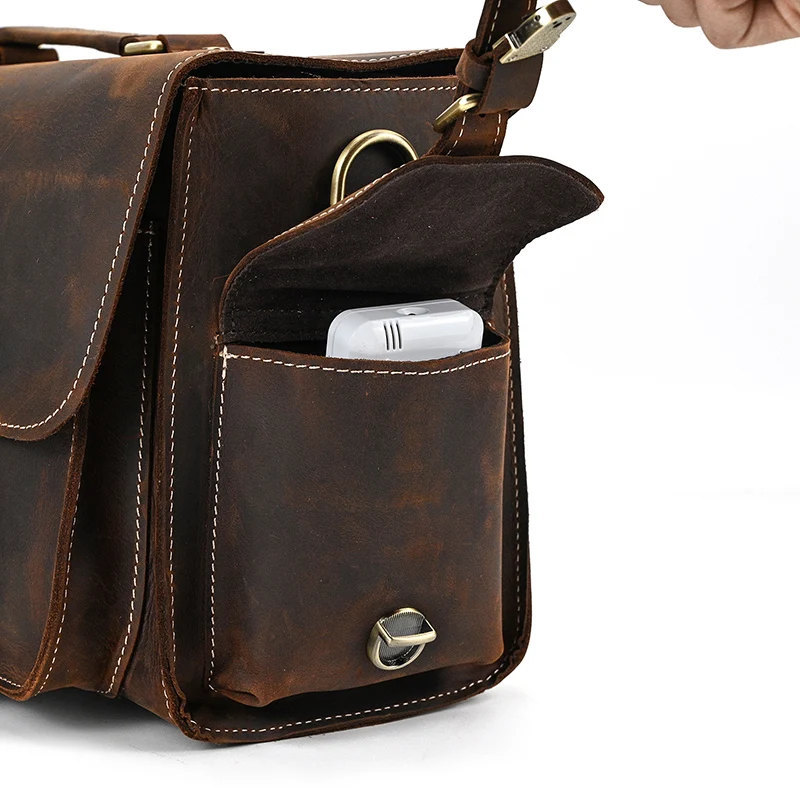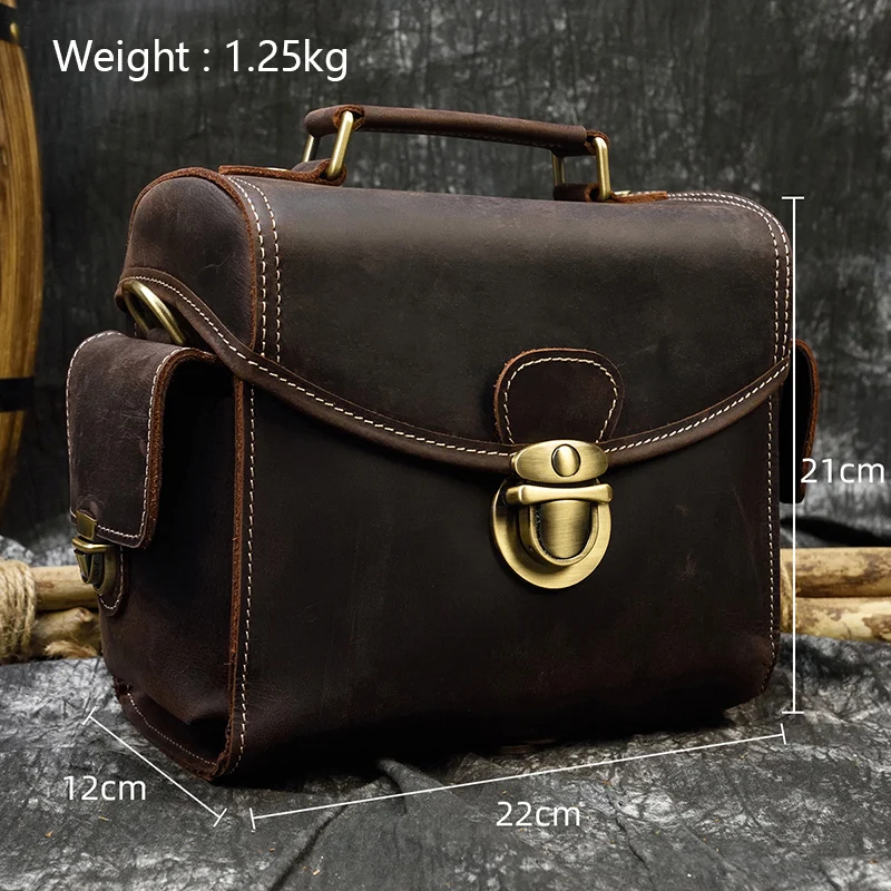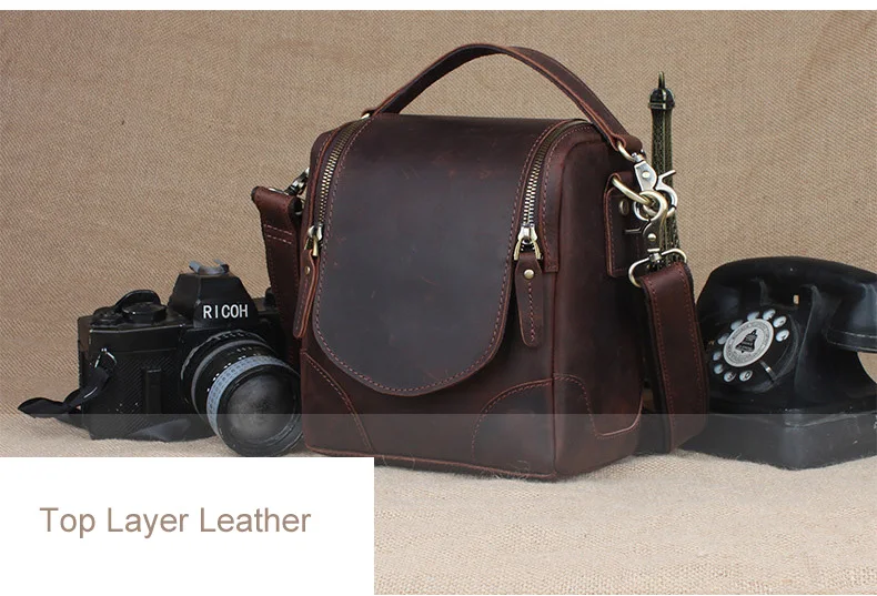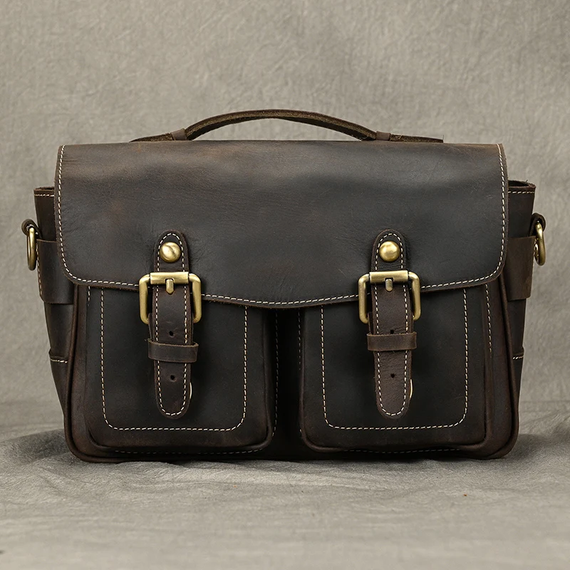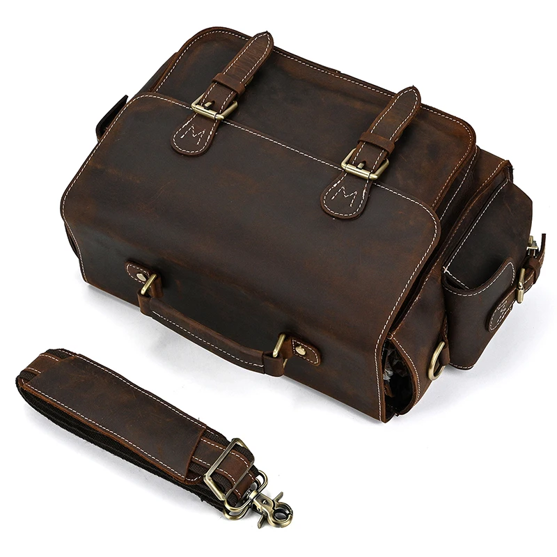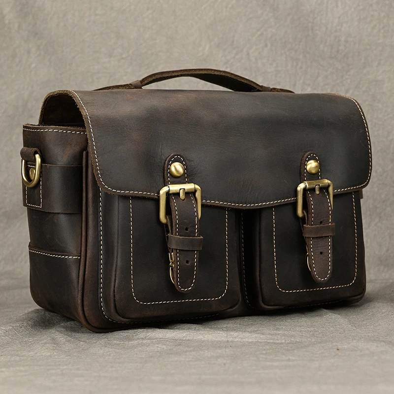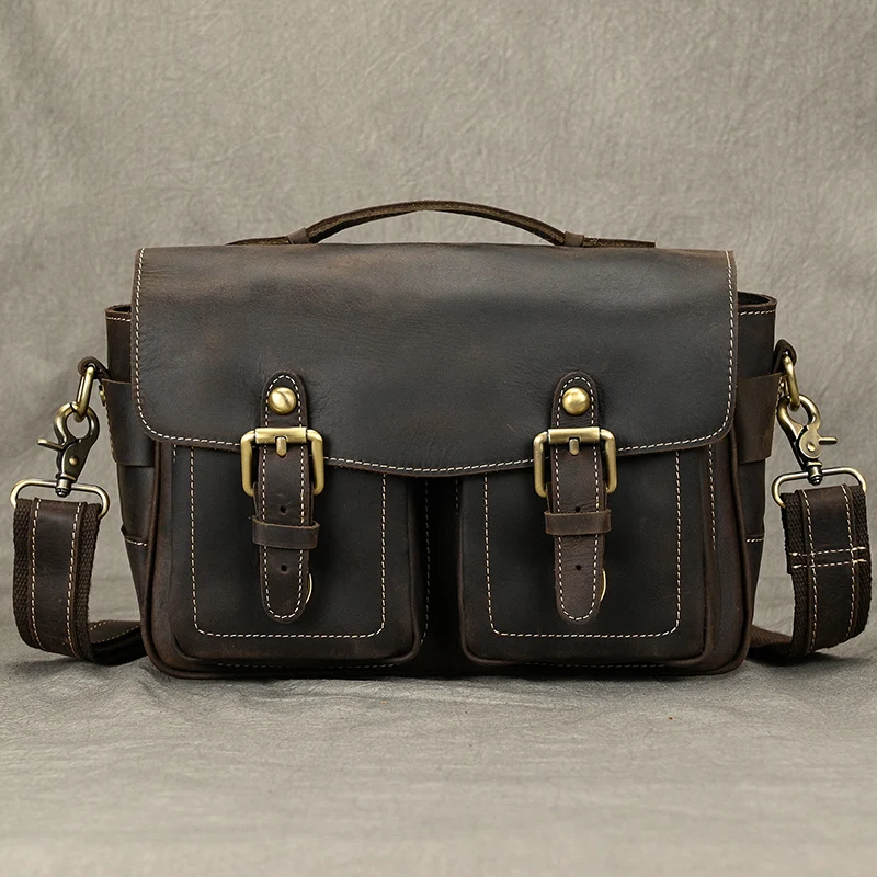 Crazy Horse Leather Shoulder Bag Camera Bags Vintage Fashion Men’s video camera bag Crossbody Man Bags For Outdoor