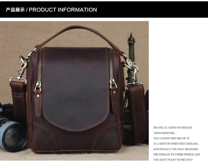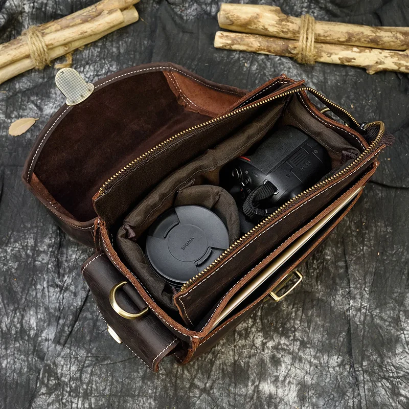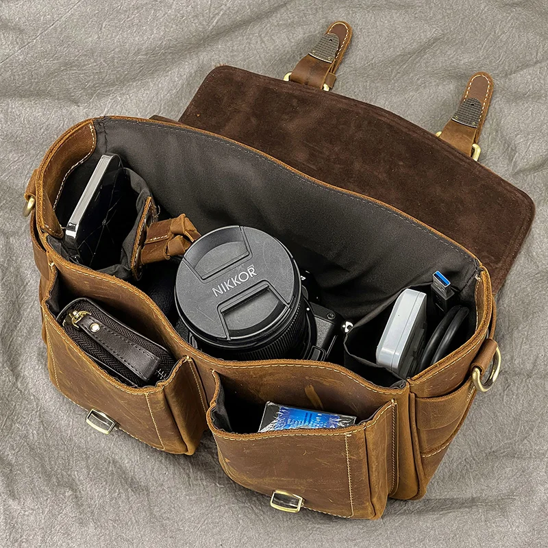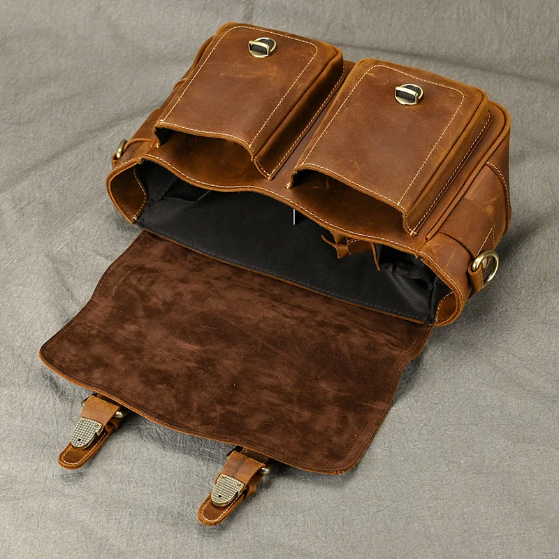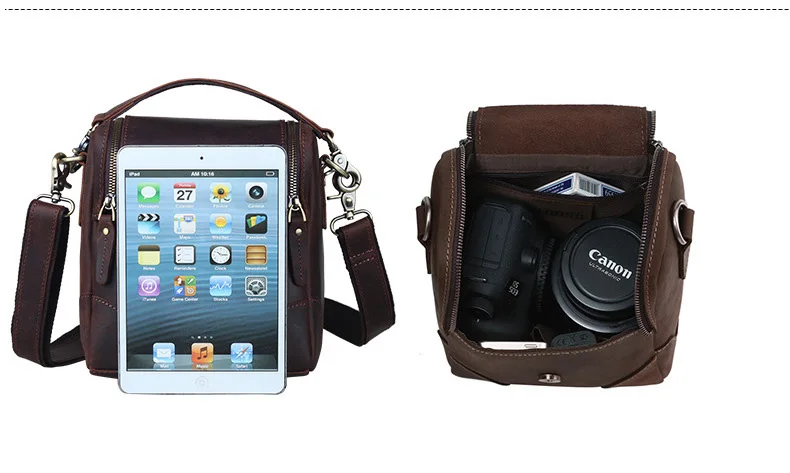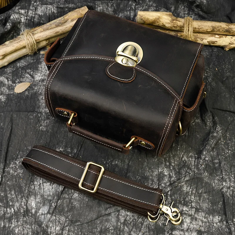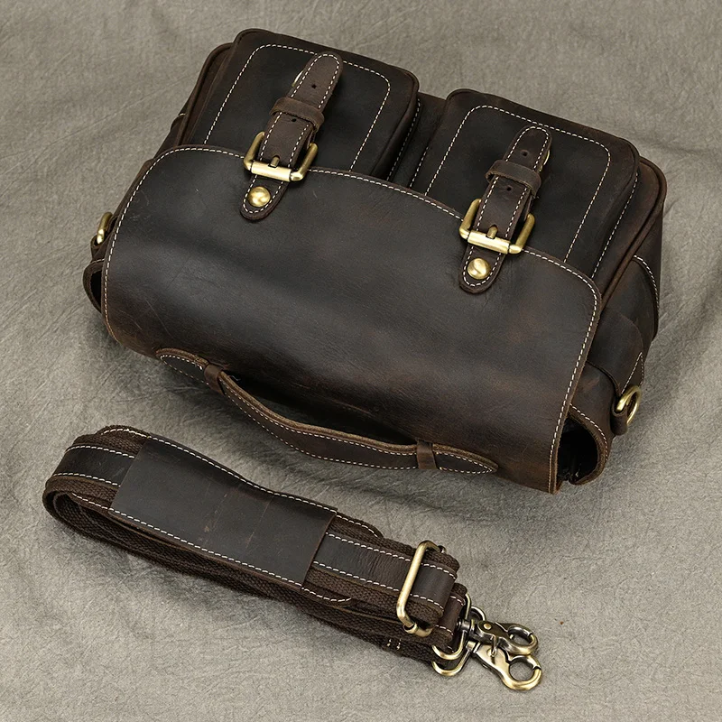 Crazy Horse Leather Shoulder Bag Camera Bags Vintage Fashion Men’s video camera bag Crossbody Man Bags For Outdoor