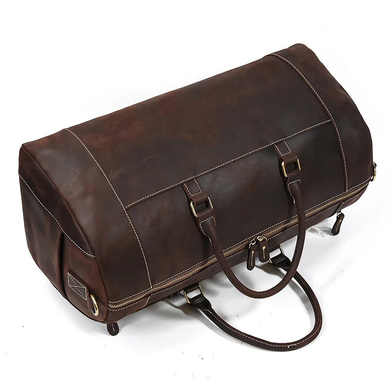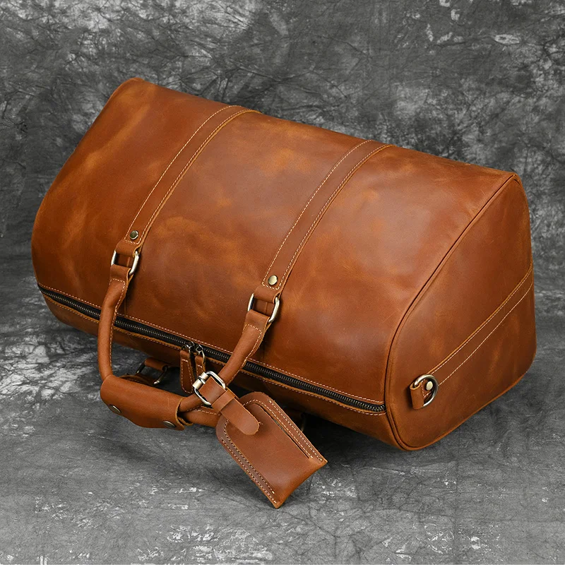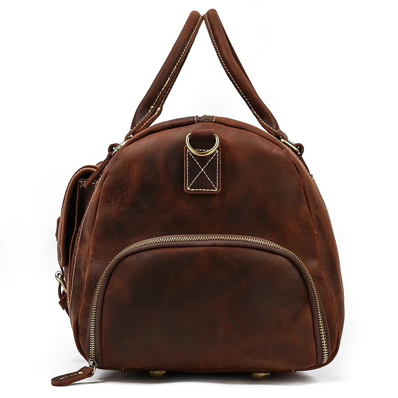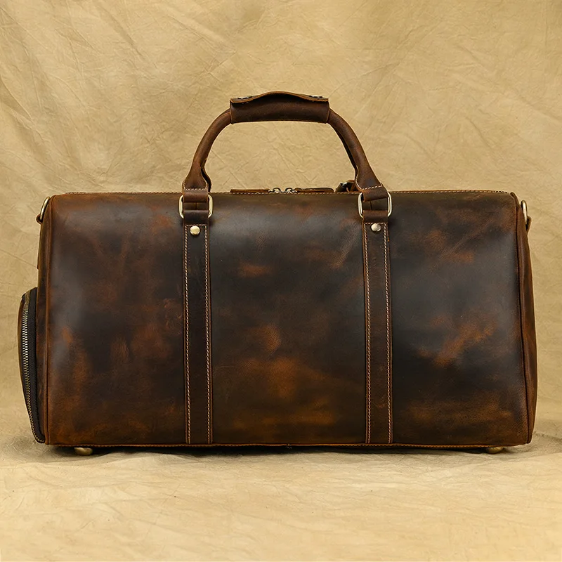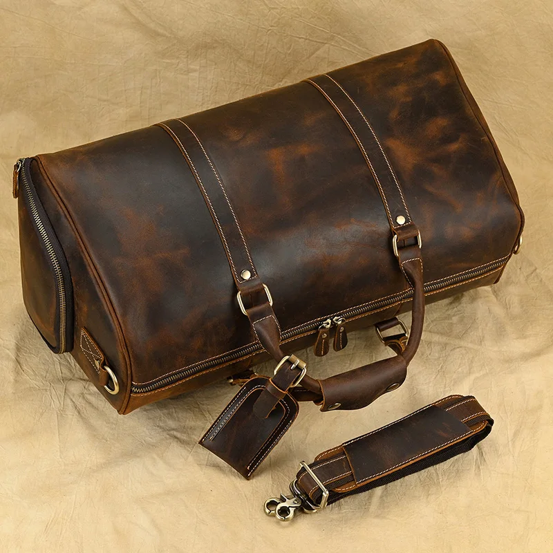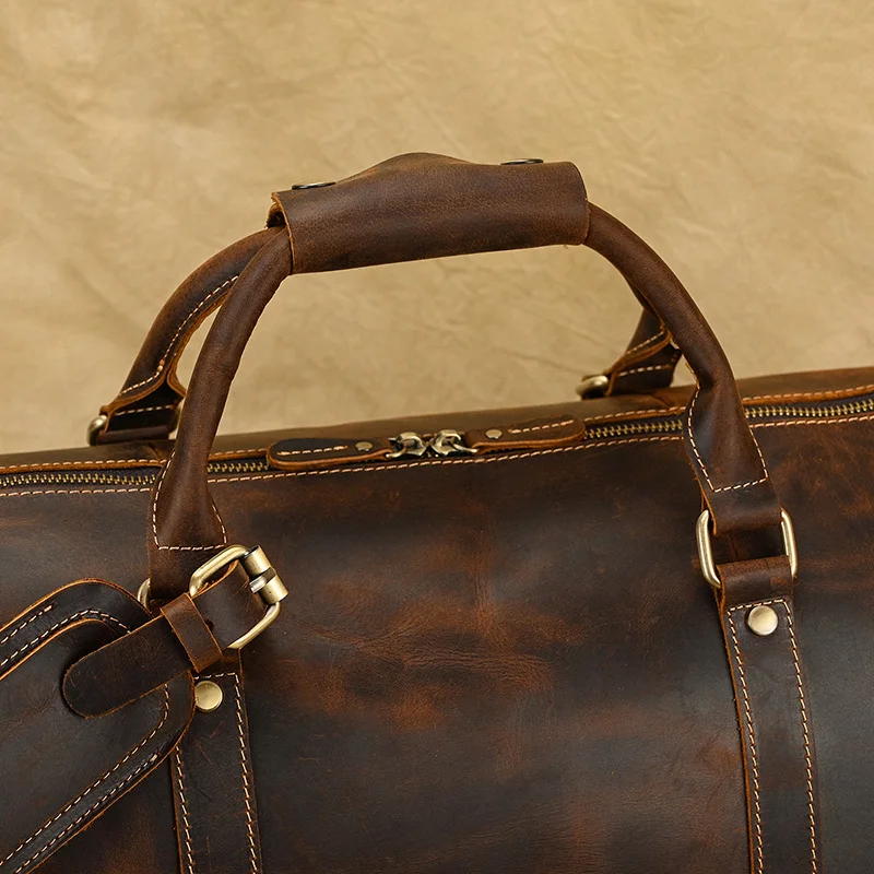 Crazy Horse Leather Travel Duffle Bag With Shoe Pocket Big Capacity Travel Weekender Bag Mens Business Bag Travel Tote Bag 20″