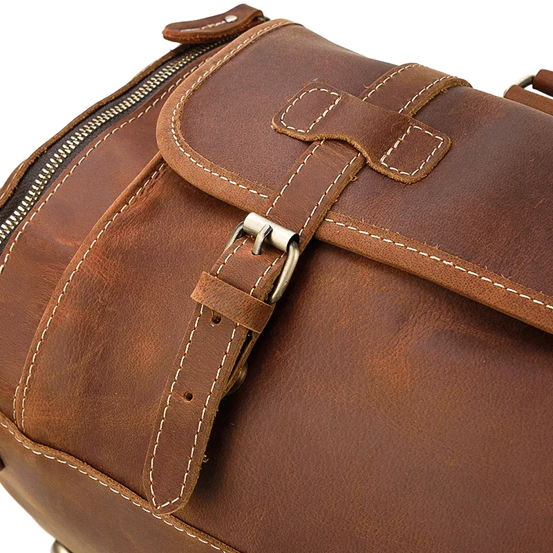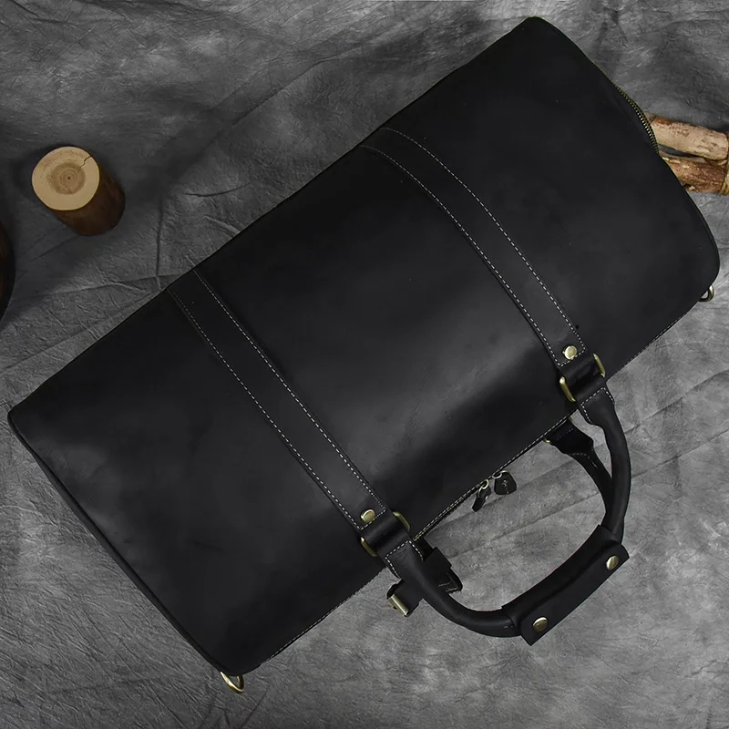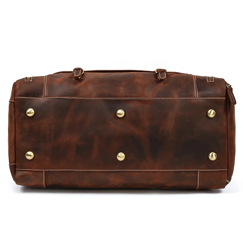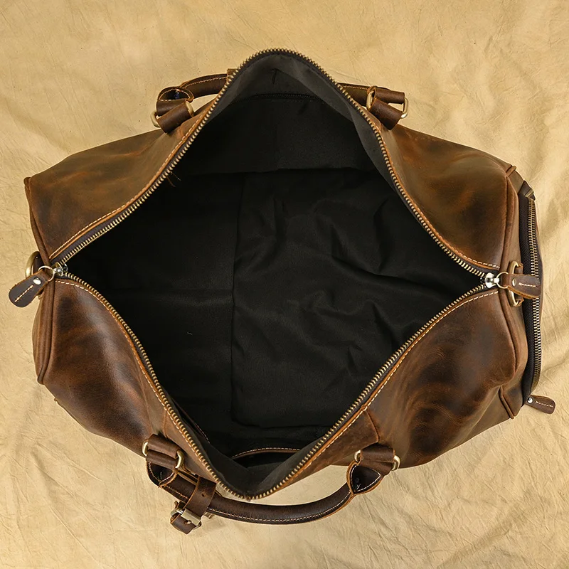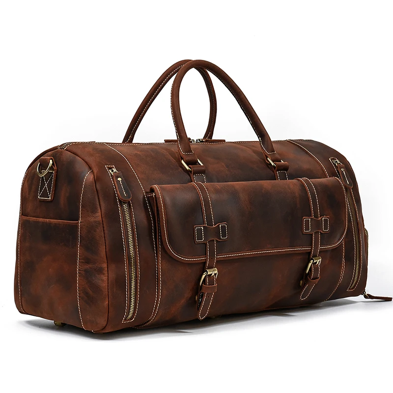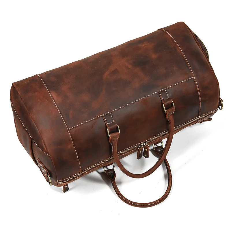 Crazy Horse Leather Travel Duffle Bag With Shoe Pocket Big Capacity Travel Weekender Bag Mens Business Bag Travel Tote Bag 20″