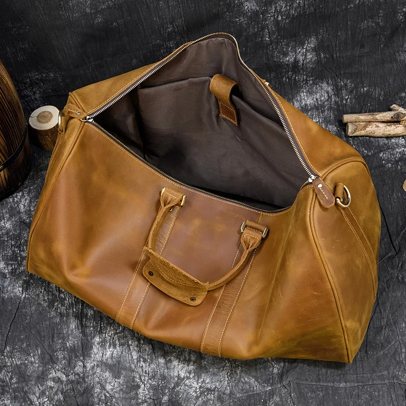 Crazy Horse Men Bag Leather Travel Bag Men Women Carry On Luggage Travelling Shoulder Bag Duffle Bags Retro Handbag On Flights