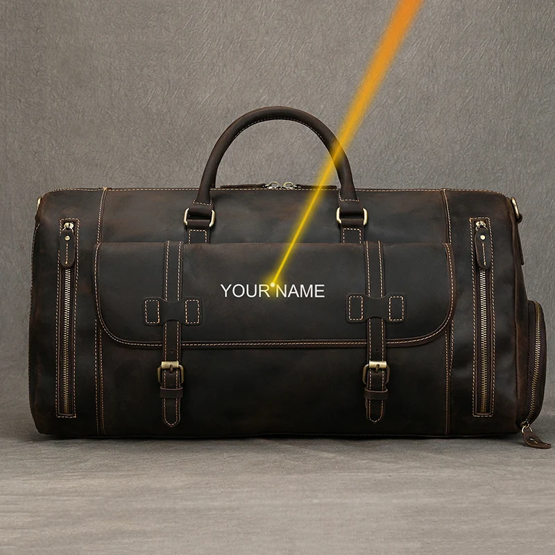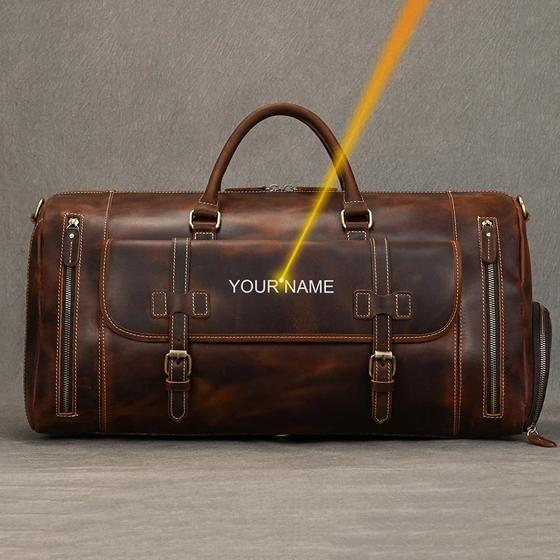 Custom Name Genuine Leather Travel Bag Vintage Design Men Handbags For Business Trip Cowhide Mens Hand Luggage Duffle Bag Gift