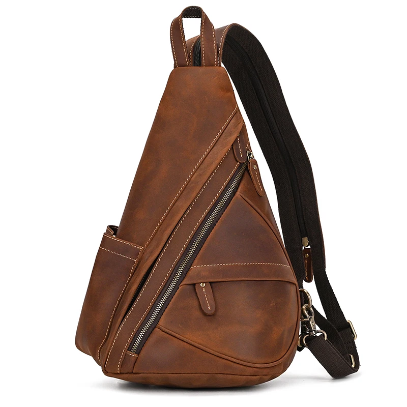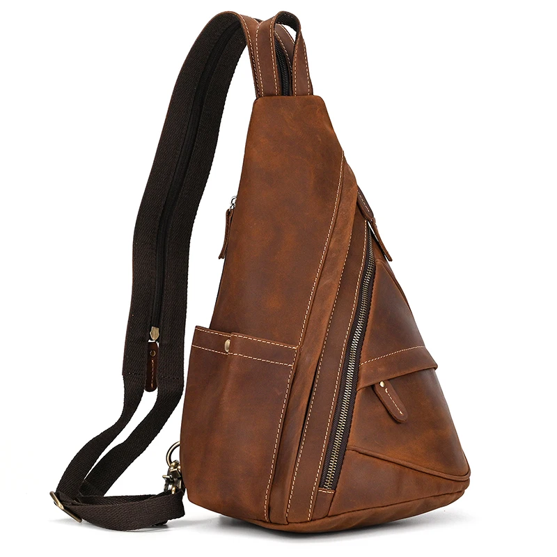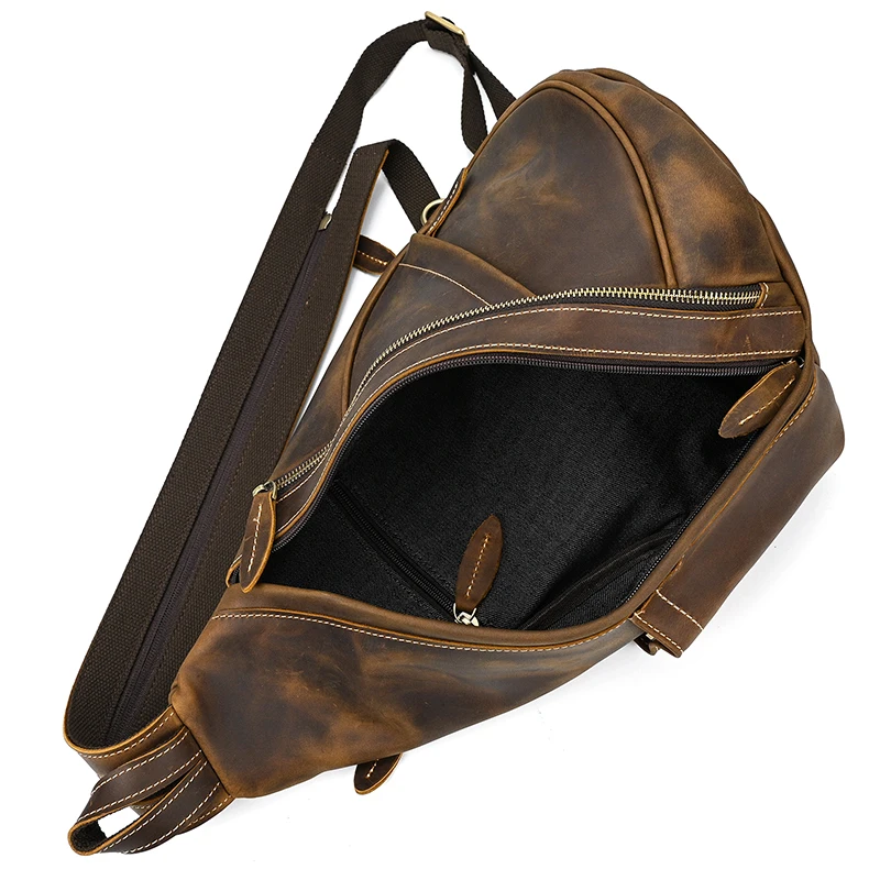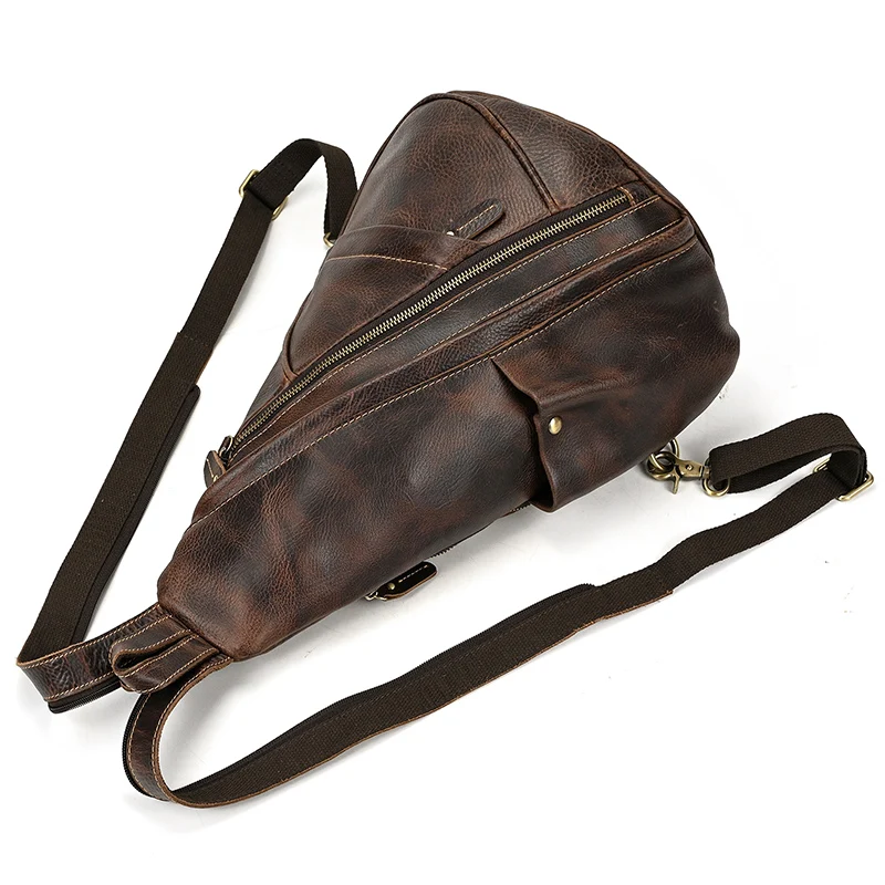 High Quality Leather Saddle bag Genuine Leather Chest Bag Crossbody Bag Men’s Leather Chest Pack Single Shoulder Backpack