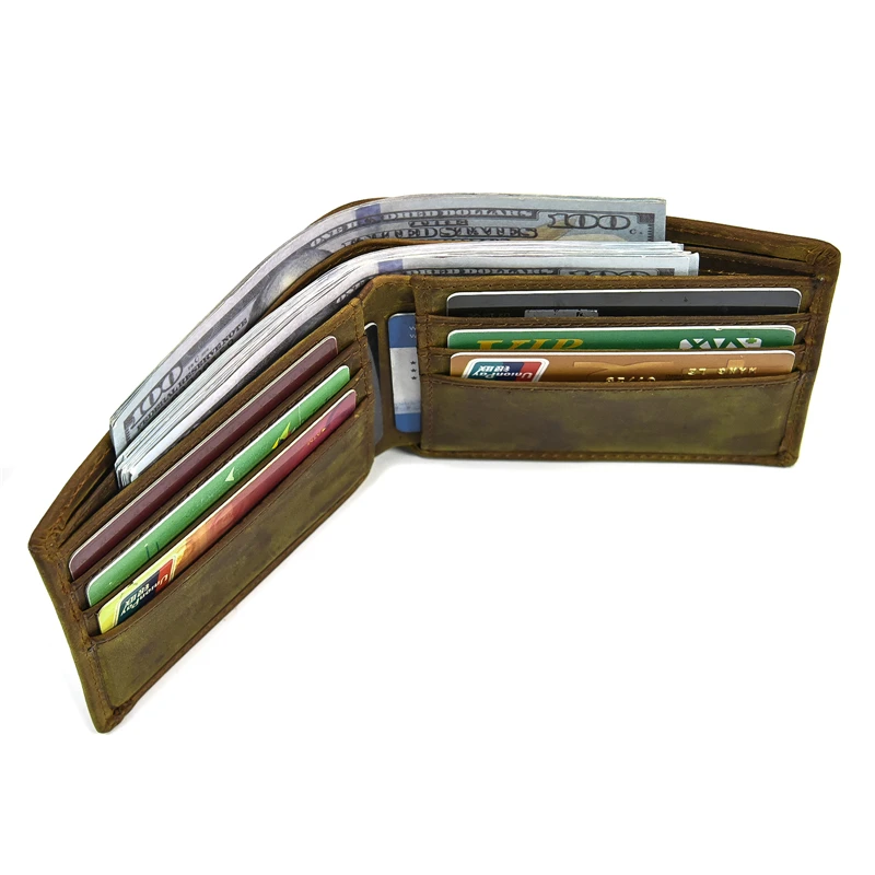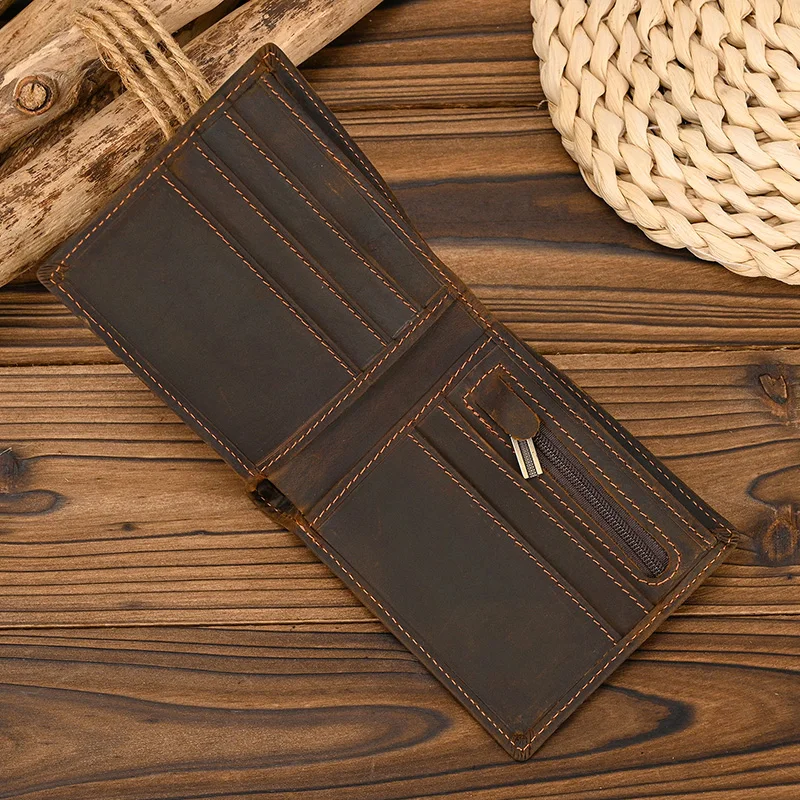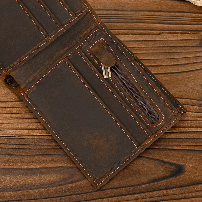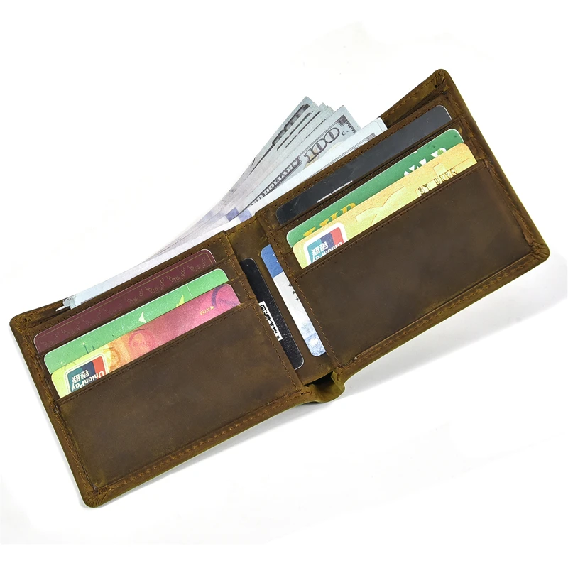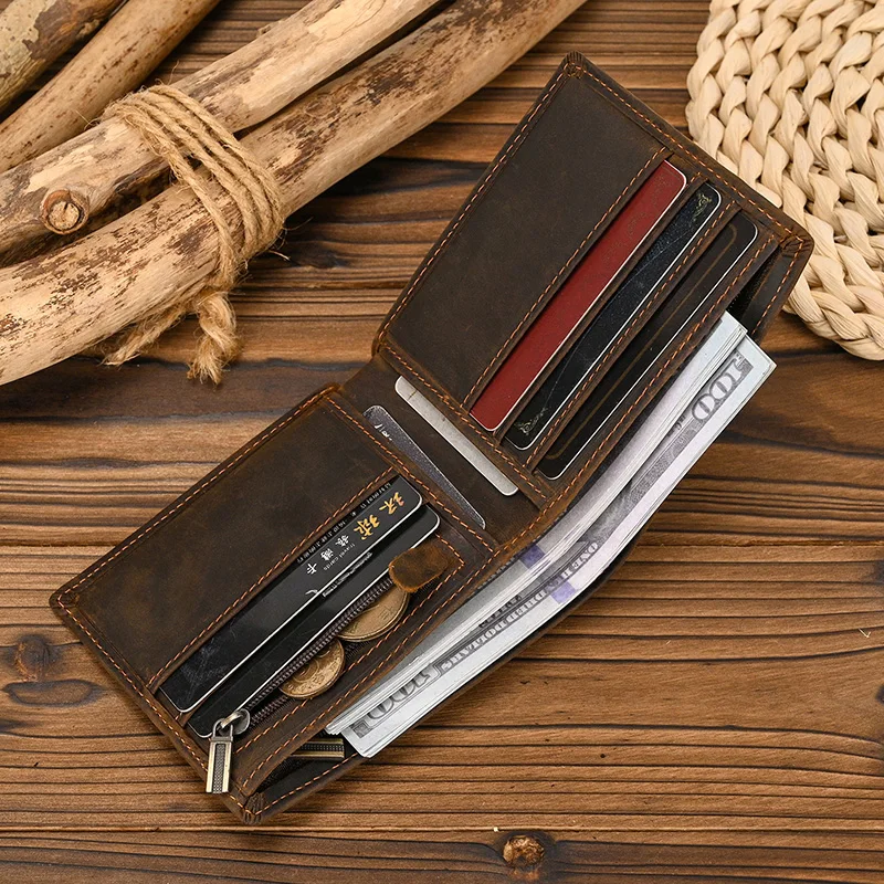 Hot Sale Bifold Leather Wallet Luxury Style Fashion Wallet For Men Leather Original Cowskin Short Purse 2 Folds Slim Purse Coins
