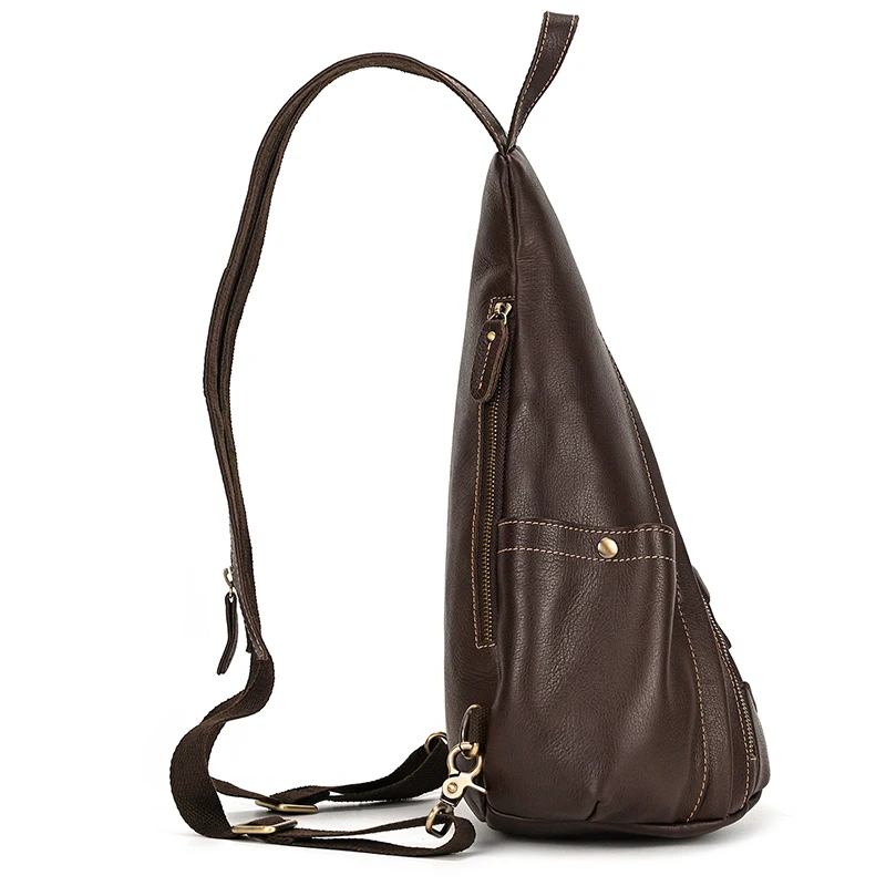 Hot Sale Unique Casual Genuine Leather Triangle Backpack Male Female Travlling Bagpack For Ipad Small Backpack Portable Men Bag