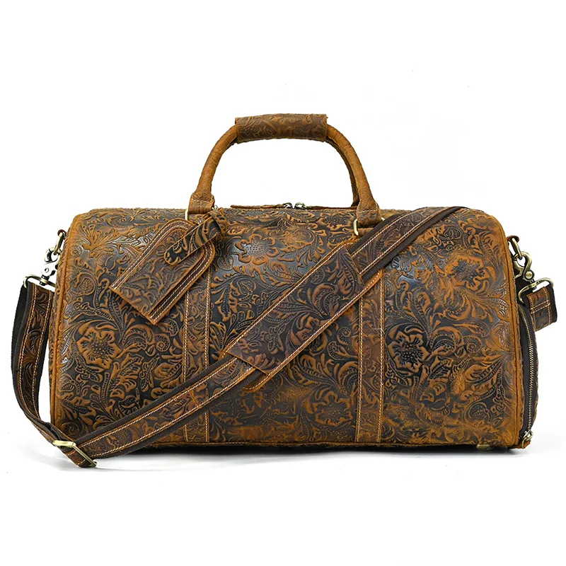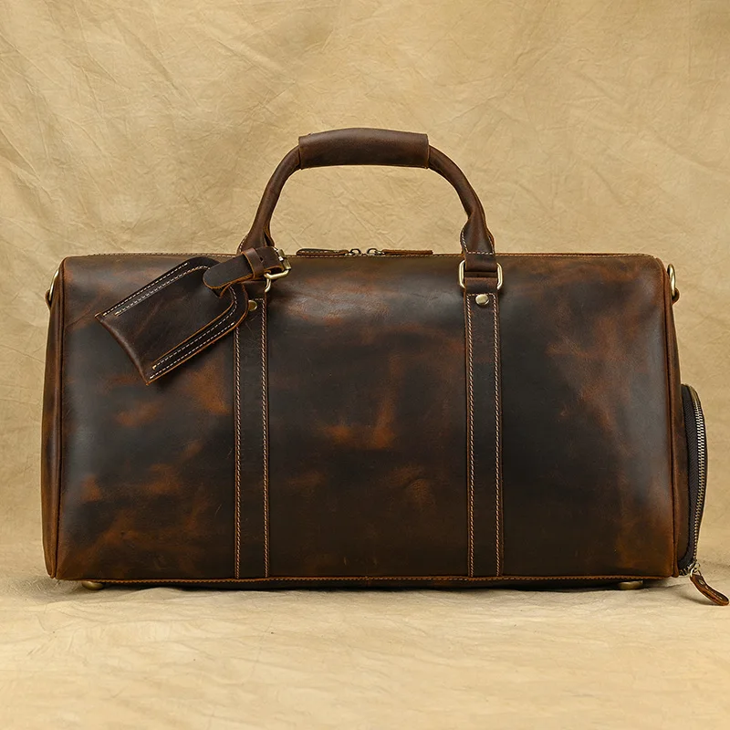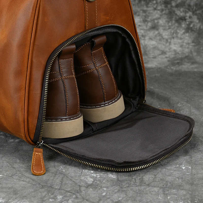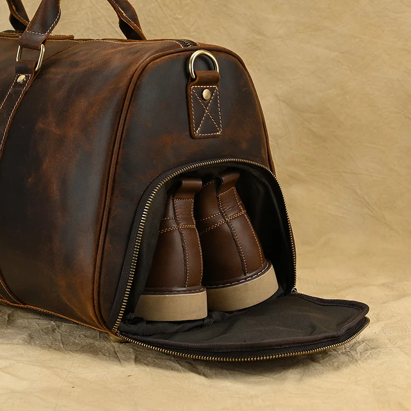 Hot Selling Leather Travel Bag Vintage Leather Travel Duffle Bag With Shoe Pocket Weekend Bag Men Male travel bag luggage bag