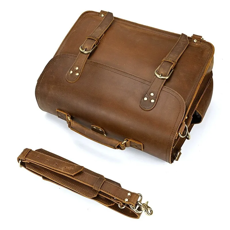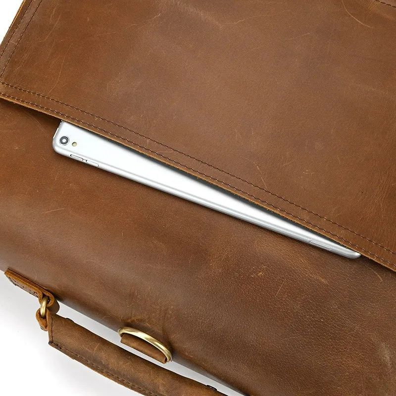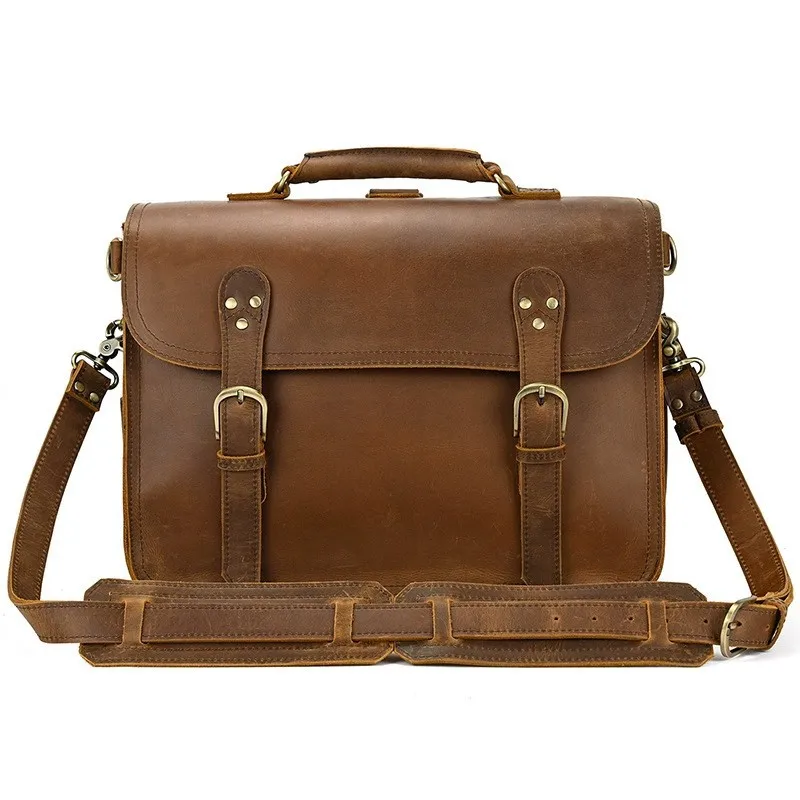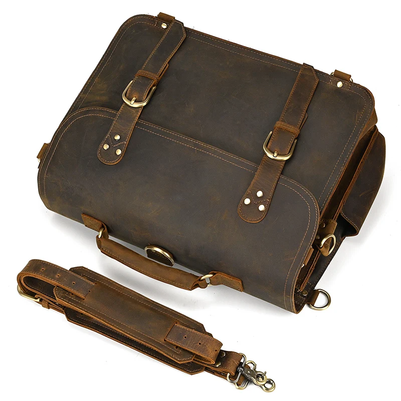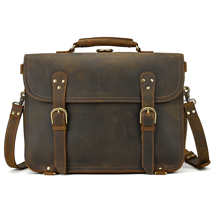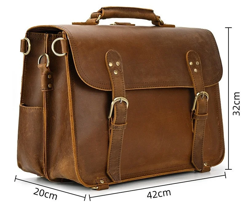Lare Size Genuine Leather Men’s Briefcase Bag Cowhide Laptop Bag Vintage Business Bag Real Leather Backpack Bag 3 In 1