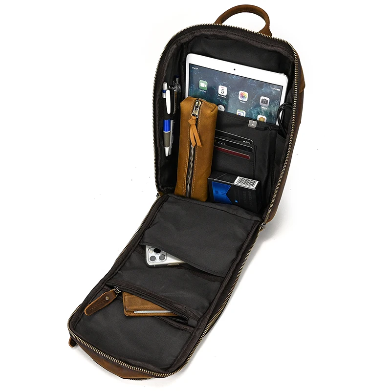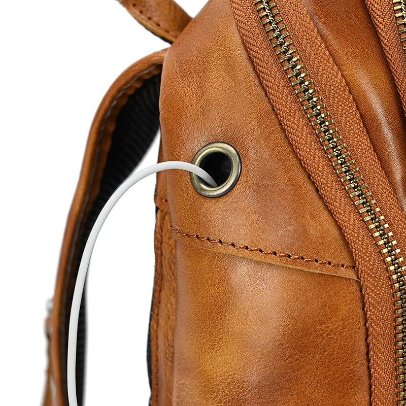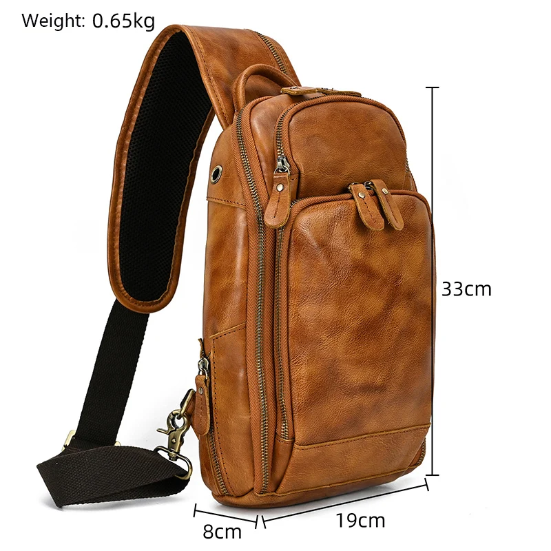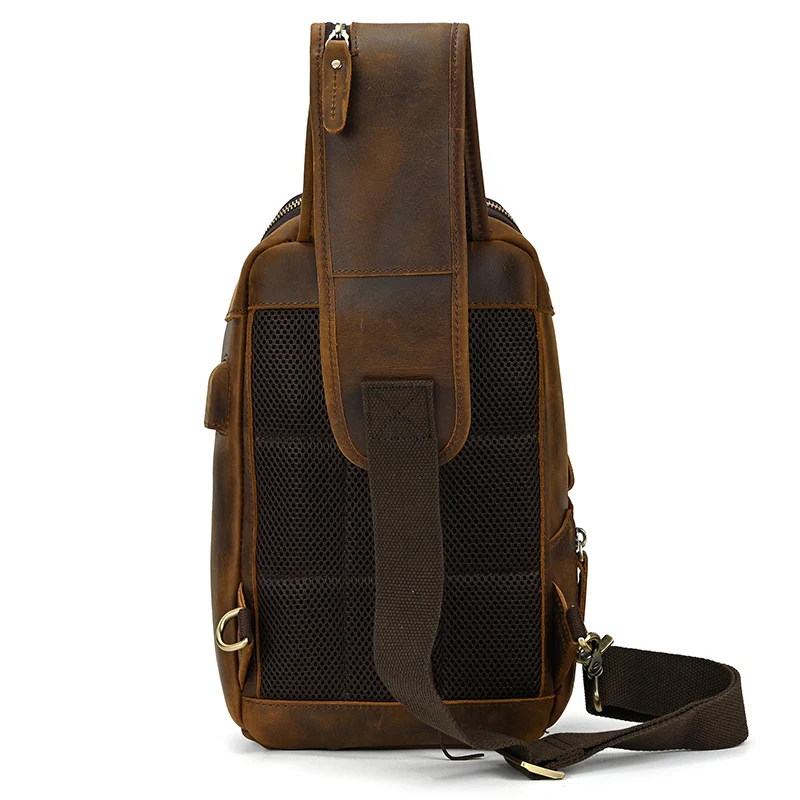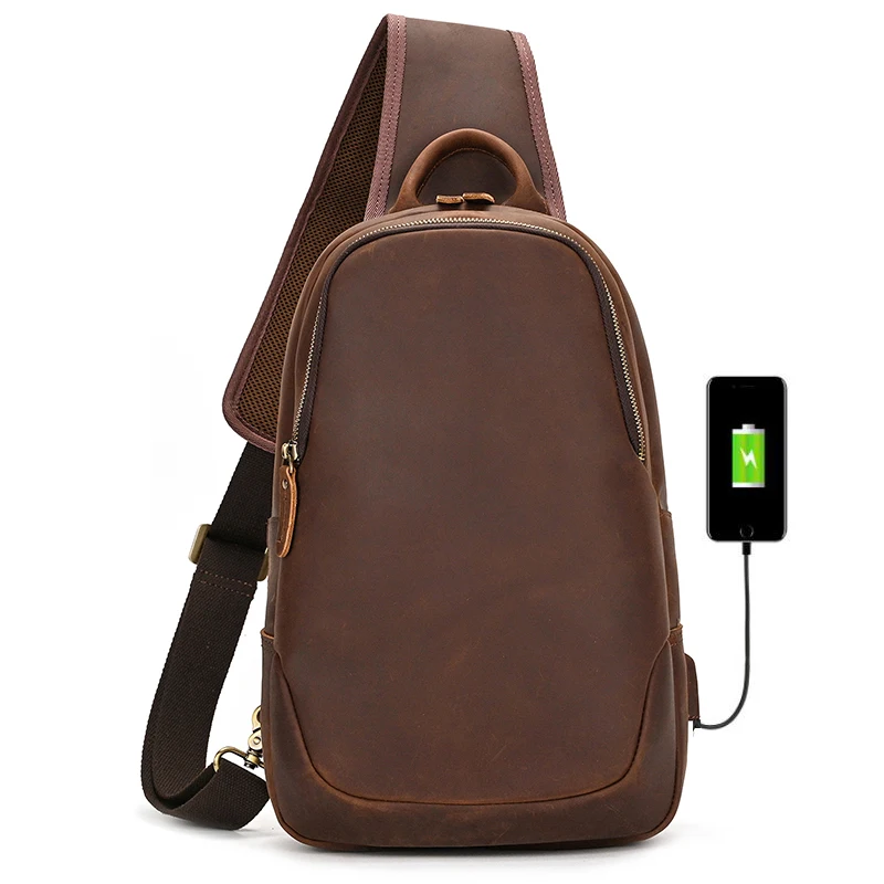 Leather Chest Bag Usb Charging Port Men’s Cross Body Bag Genuine Leather Chest Pack Single Shoulder Bag For Man Male Vintage
