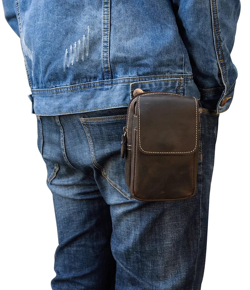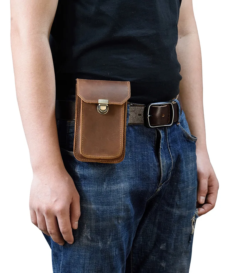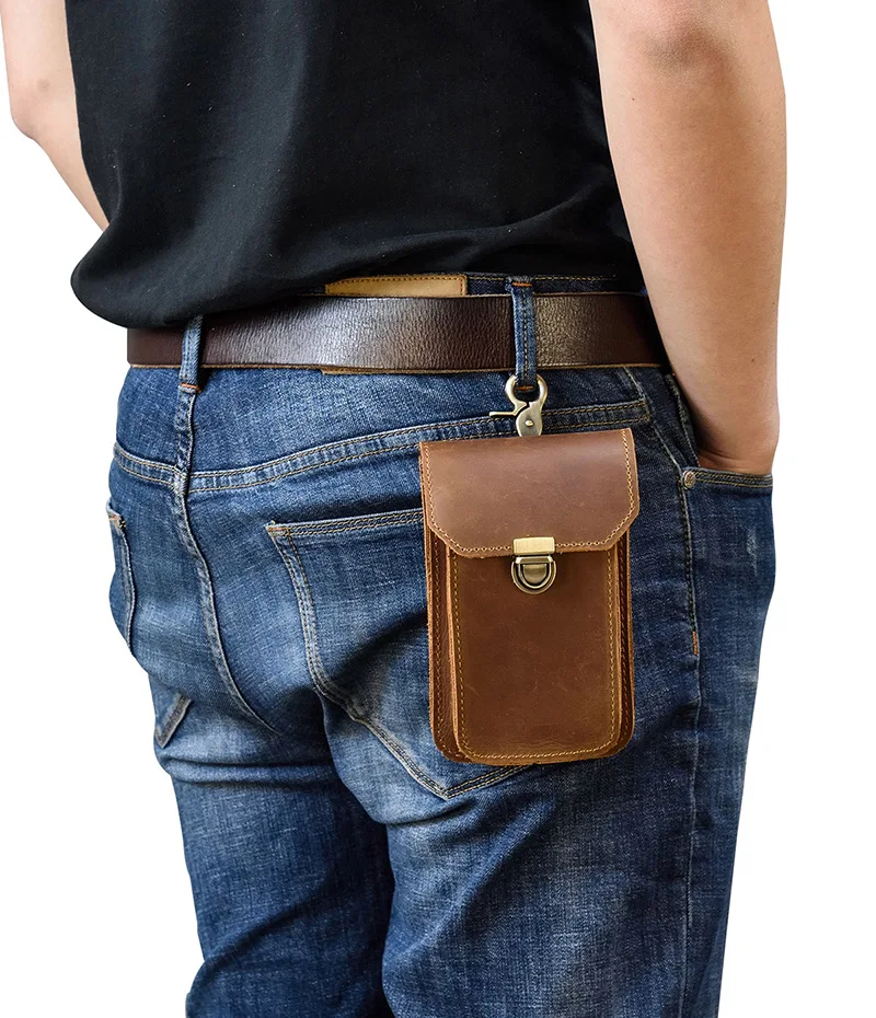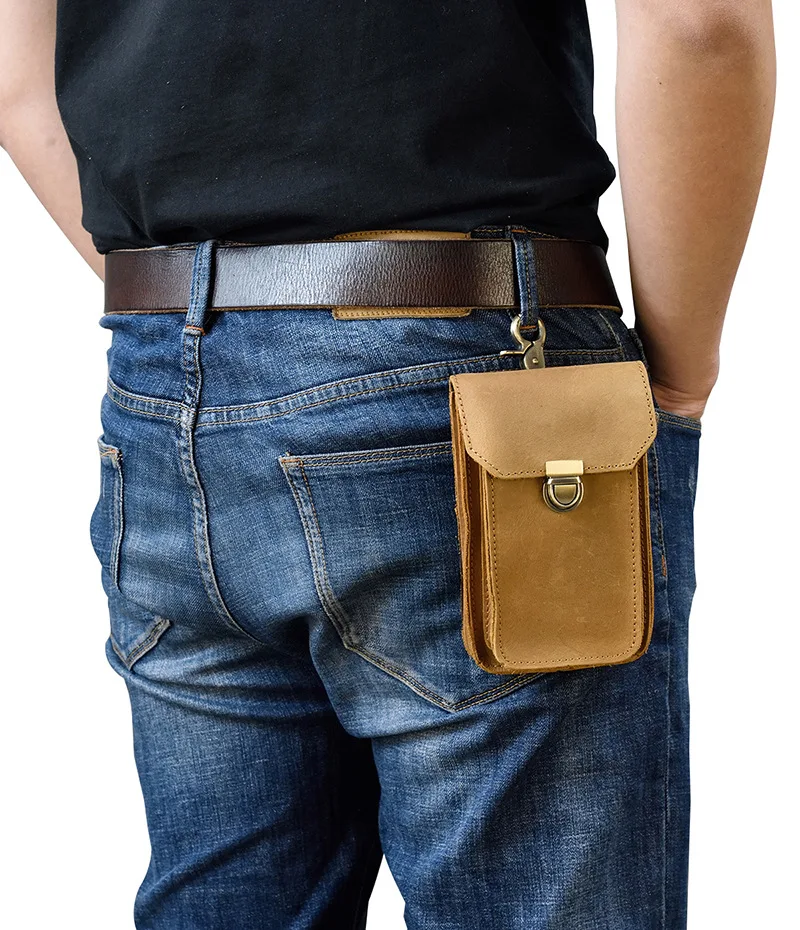 Leather Waist Bag On Belt Mobile Phone Bag Belt Pouch Leather Cellphone Pouch Fanny Pack Summer Mini Waist Bag Men Male