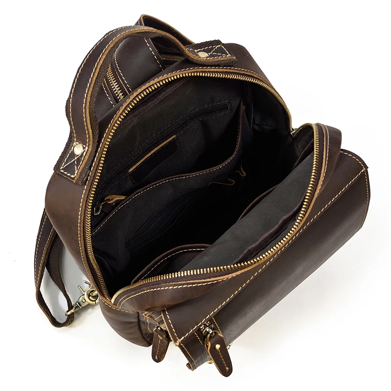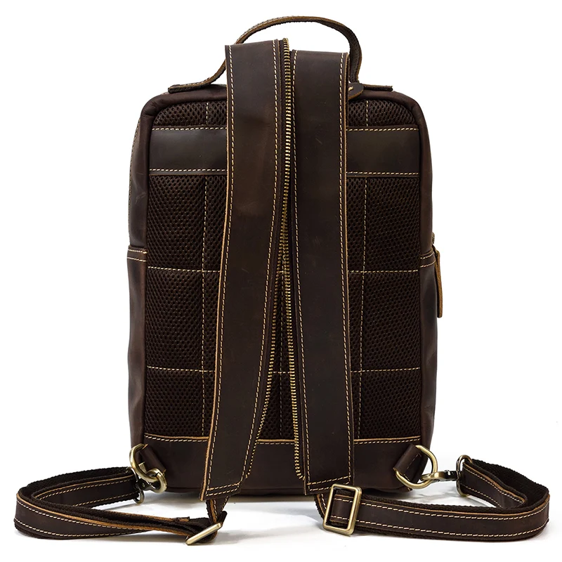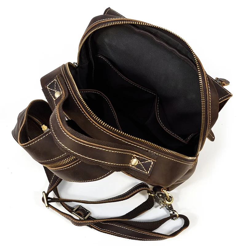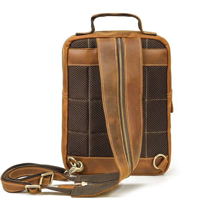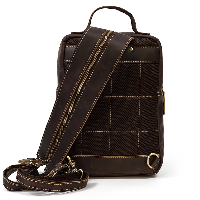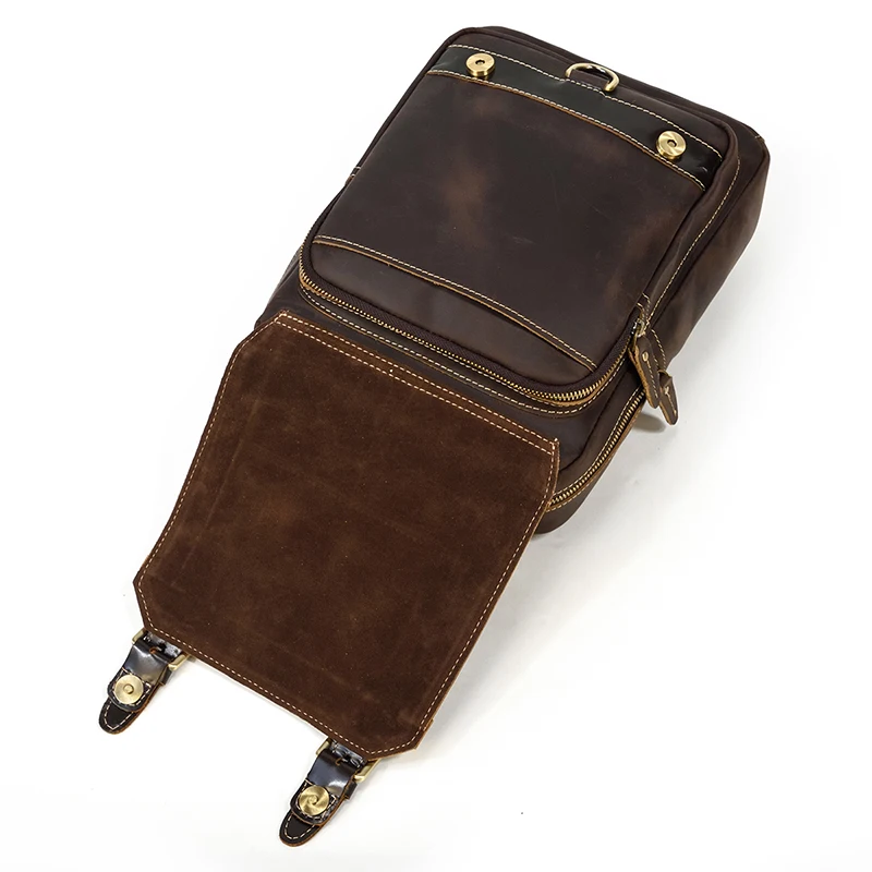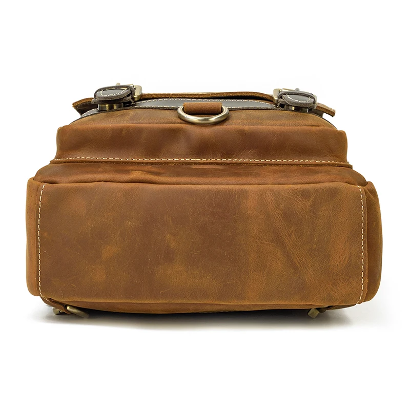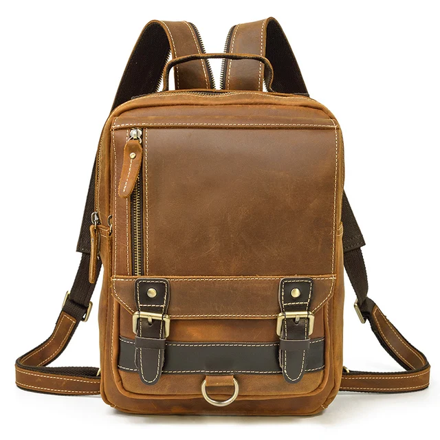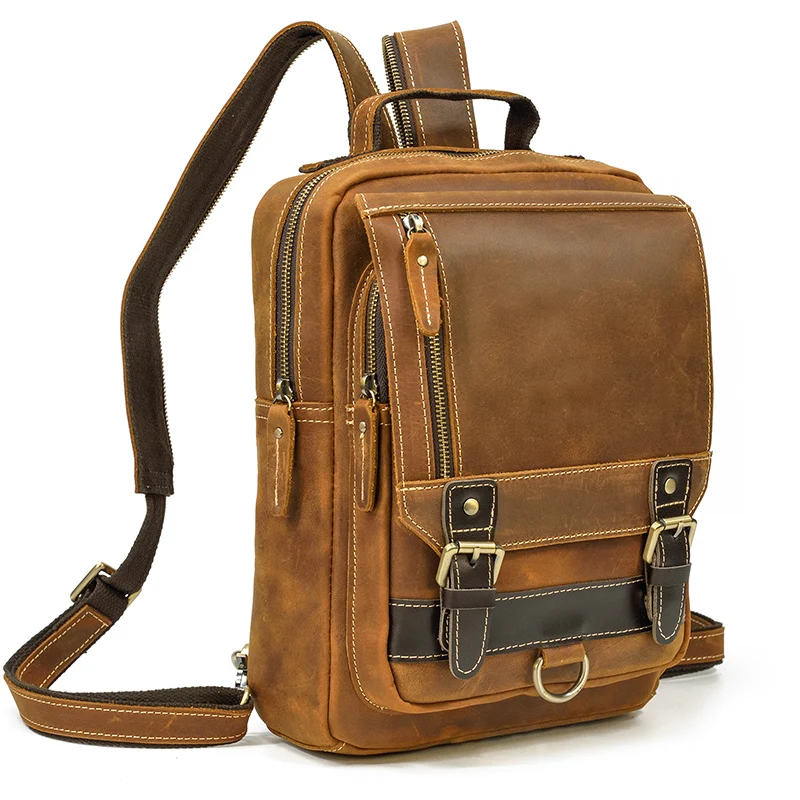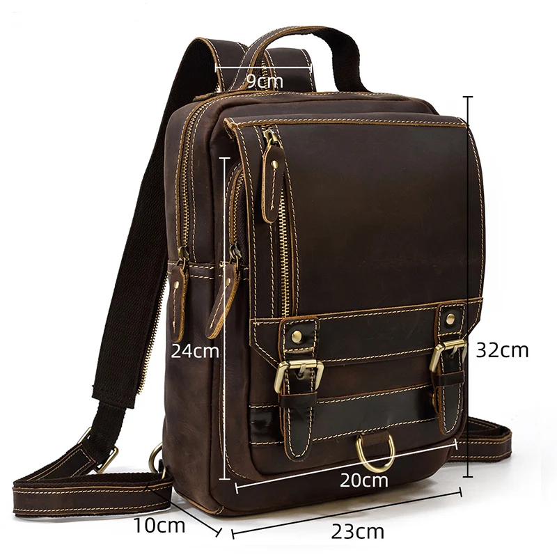 Luufan Crazy Horse Leather Mens Chest Bag Single Shoulder Backpack 2 Use Vintage Cow Leather Male Travel Backpack Daypack Brown