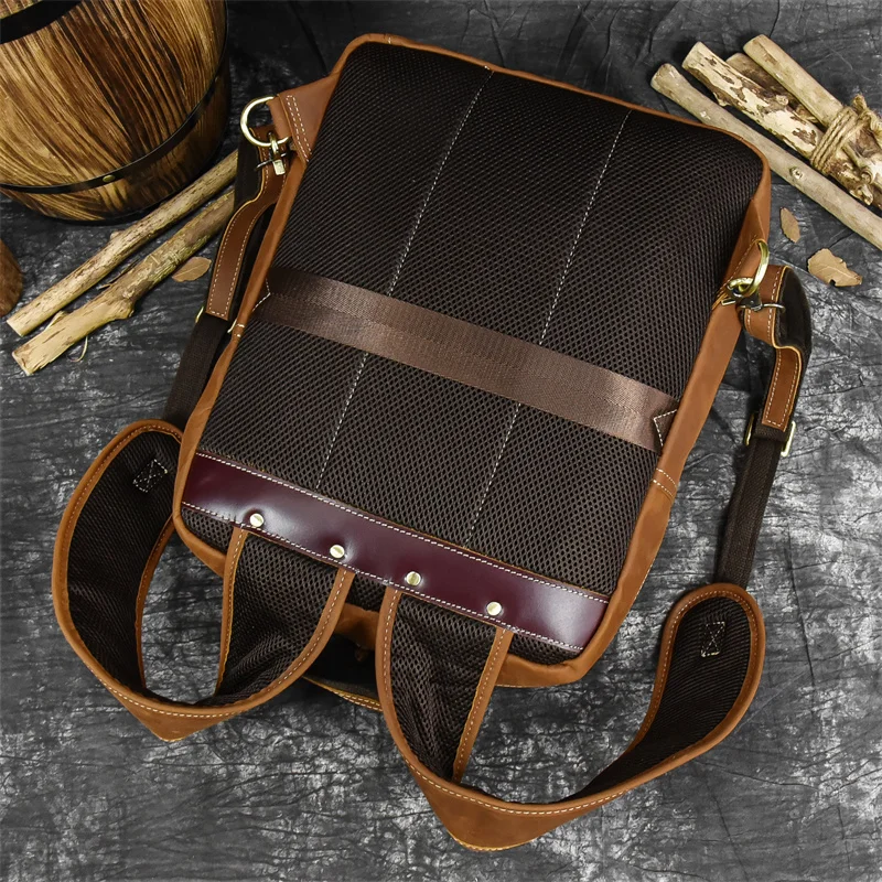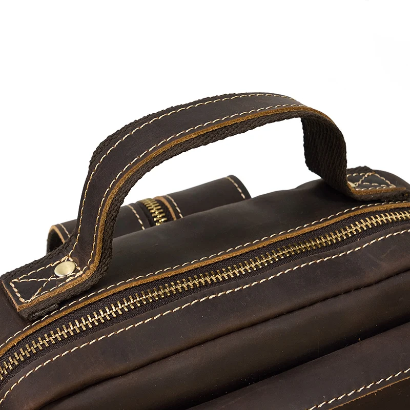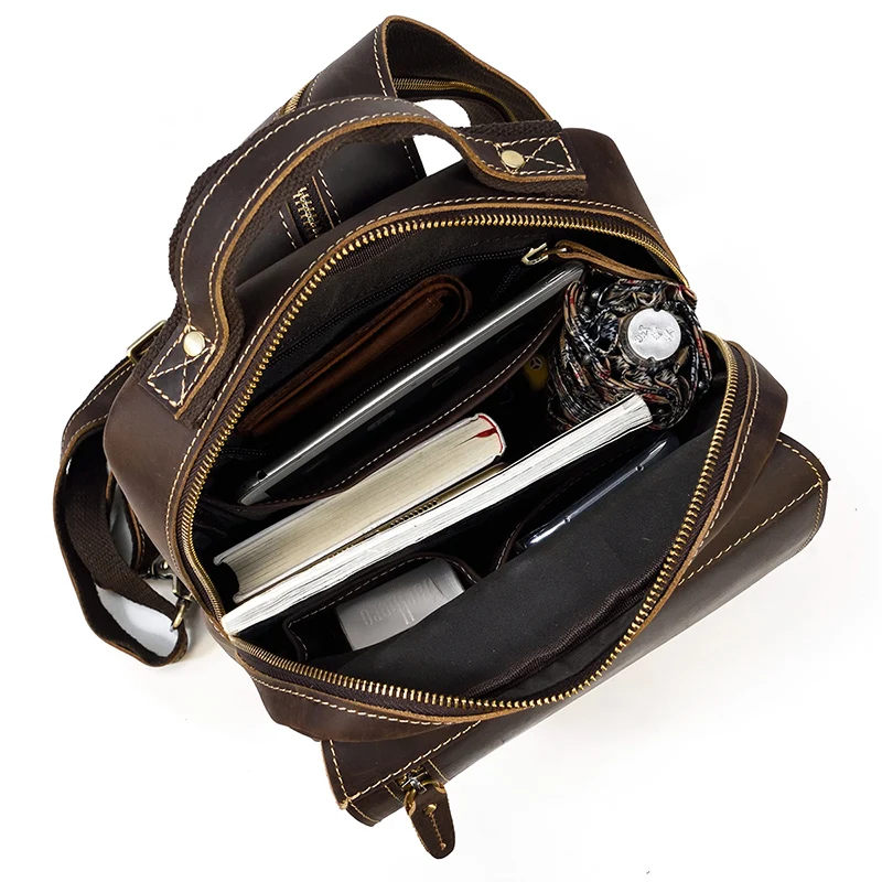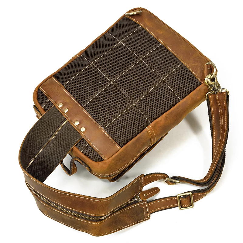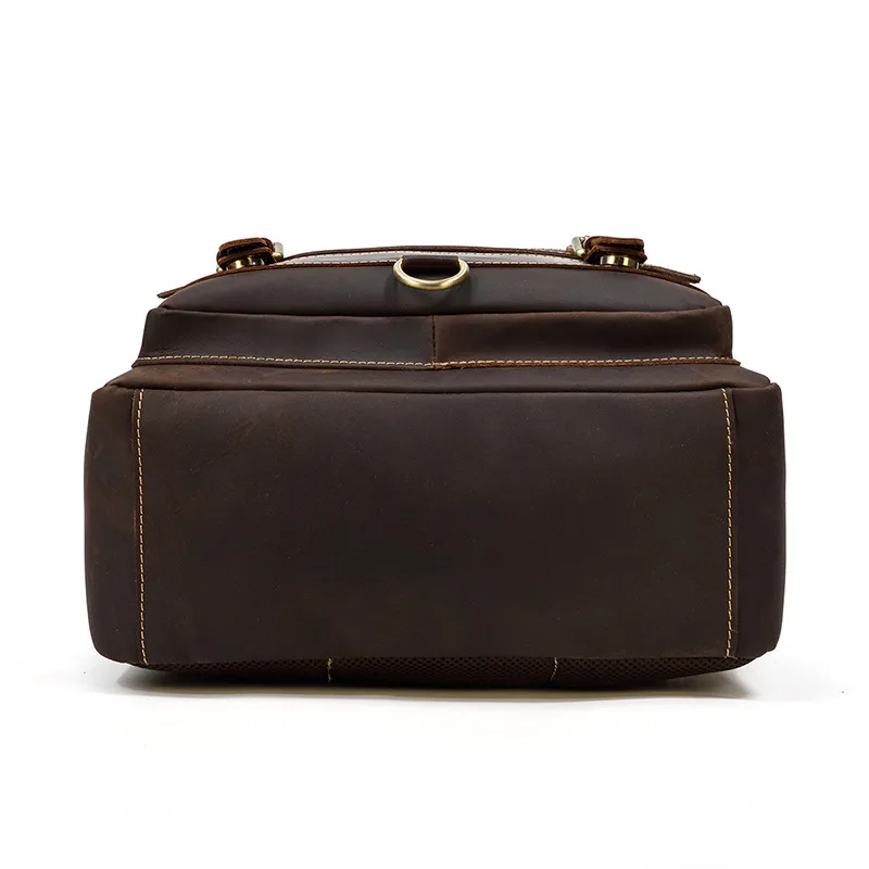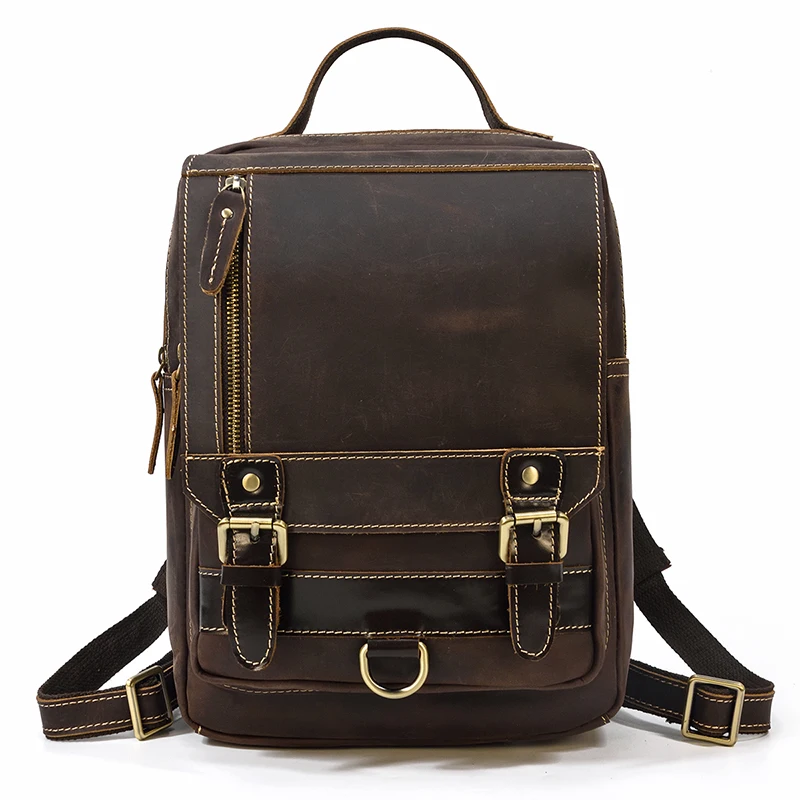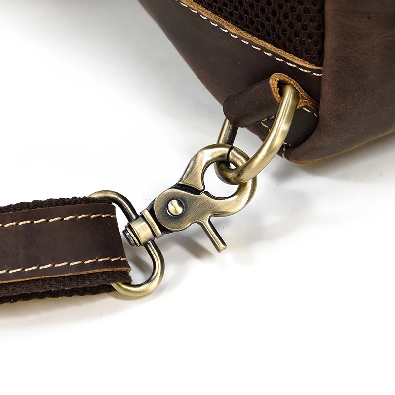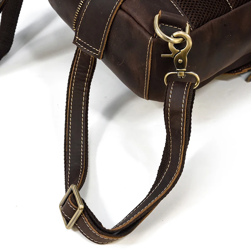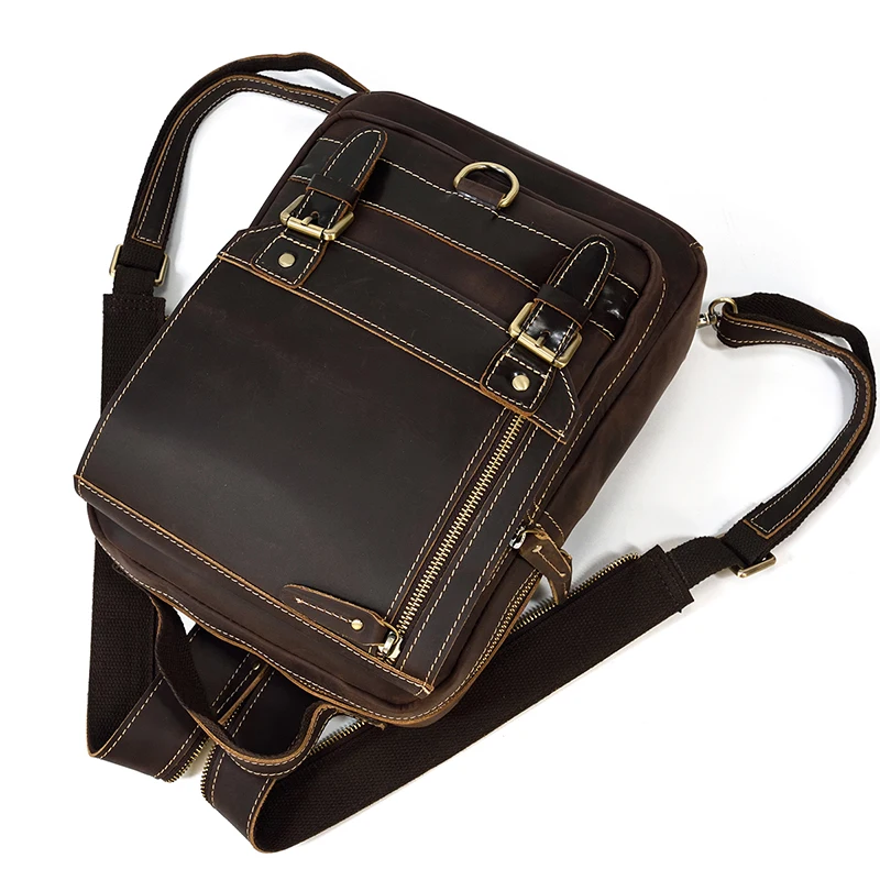 Luufan Crazy Horse Leather Mens Chest Bag Single Shoulder Backpack 2 Use Vintage Cow Leather Male Travel Backpack Daypack Brown