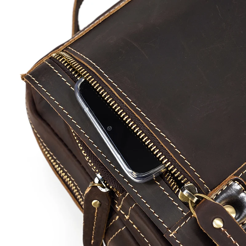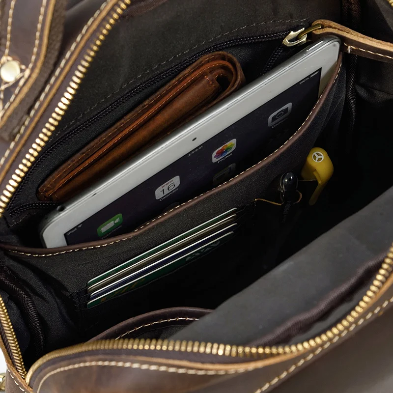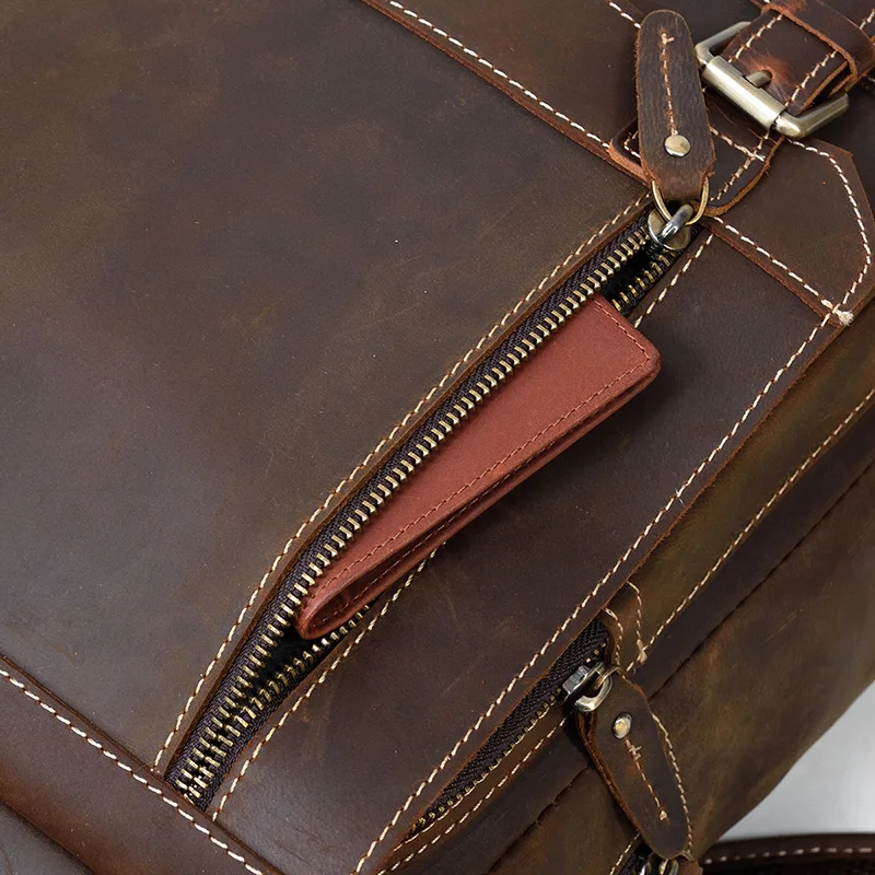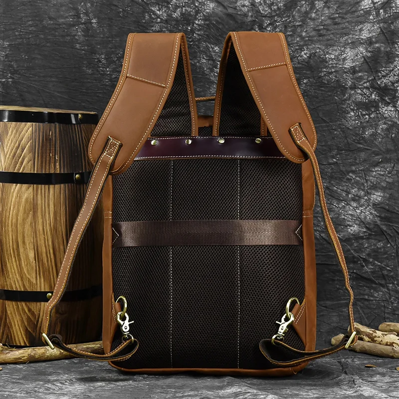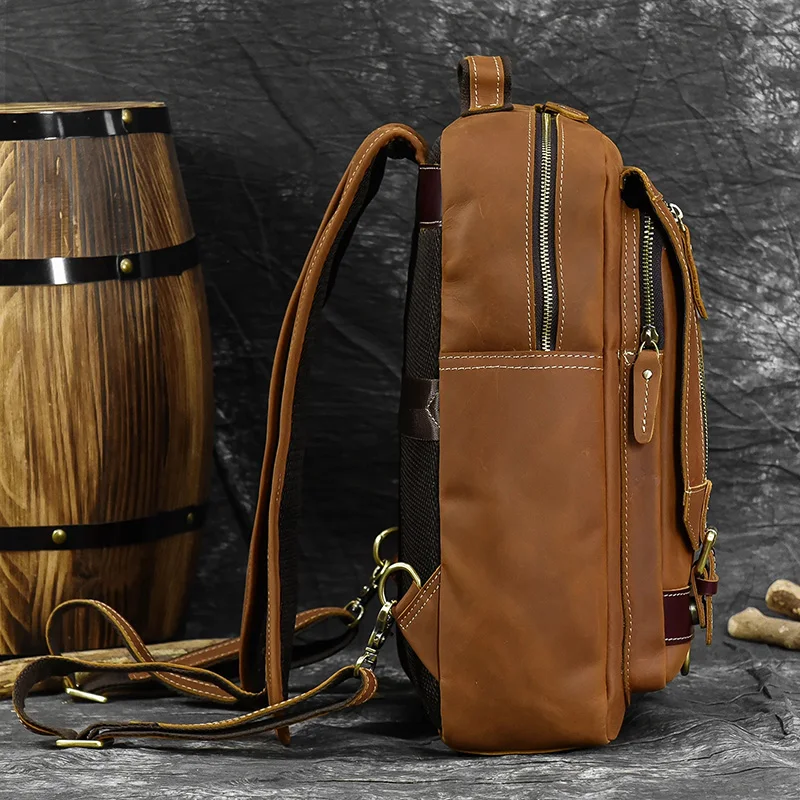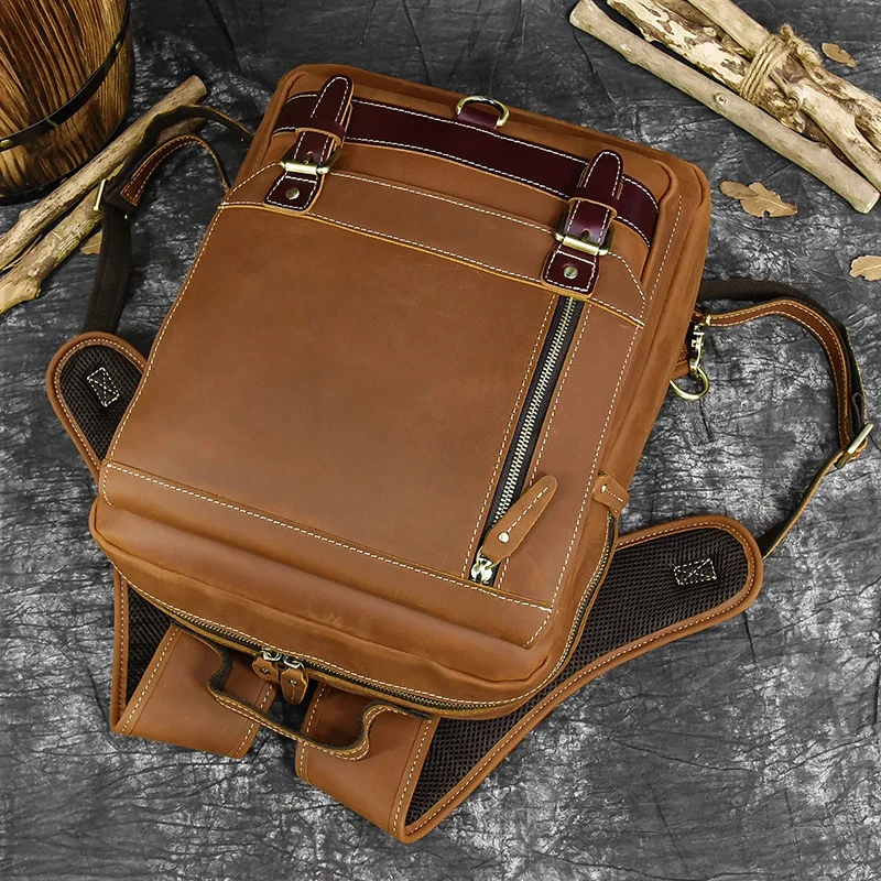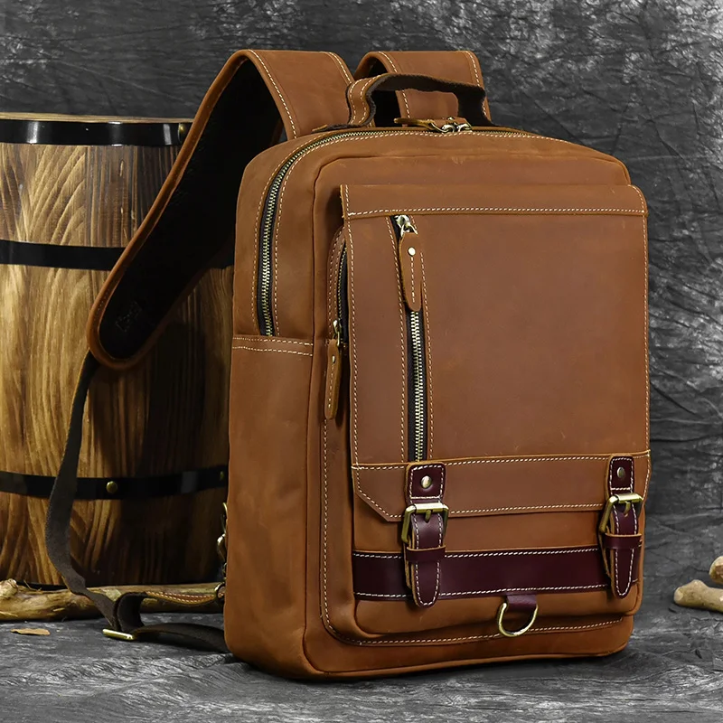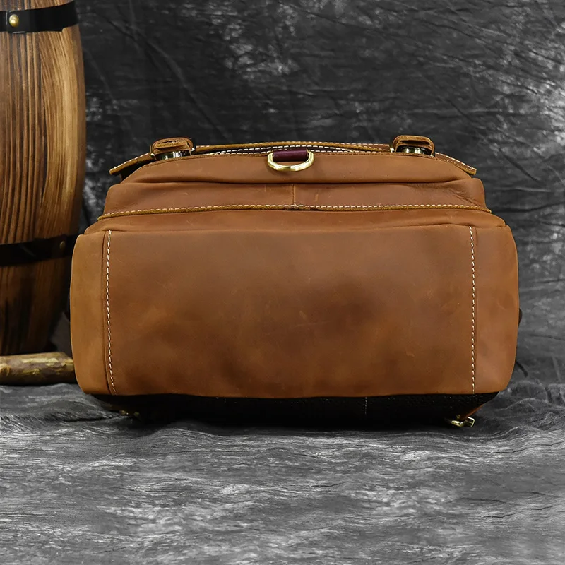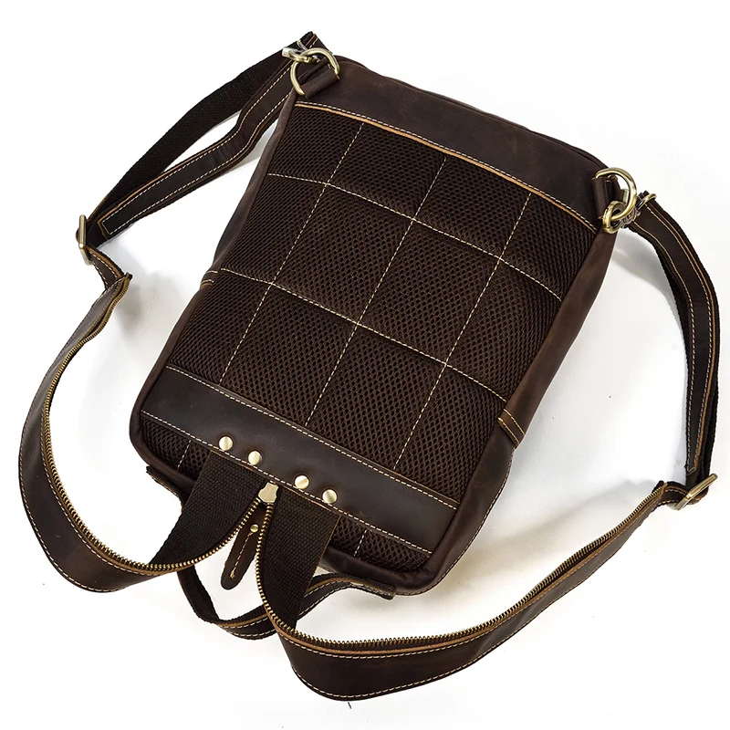 Luufan Crazy Horse Leather Mens Chest Bag Single Shoulder Backpack 2 Use Vintage Cow Leather Male Travel Backpack Daypack Brown