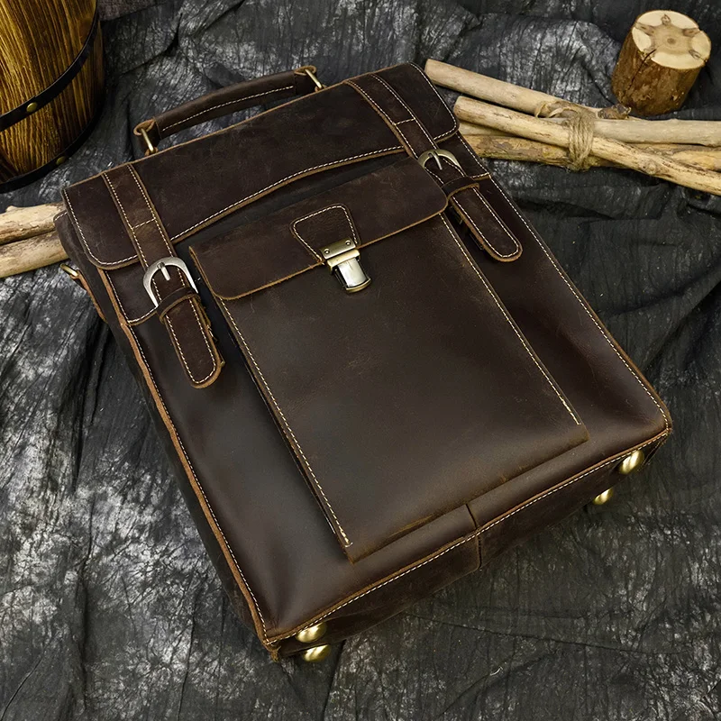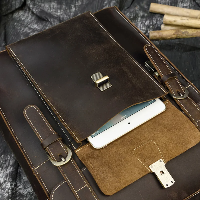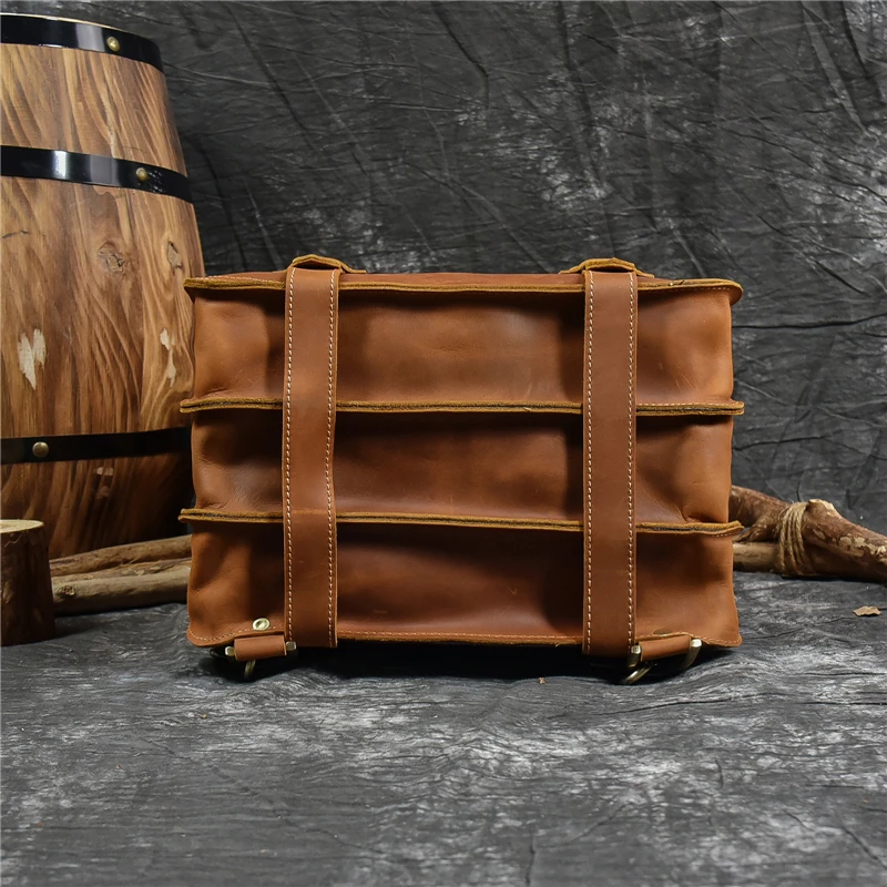 Luufan Genuine Leather Men’s Backpack Crazy Horse Leather Fit 14″ Laptop Business Shoulder Bag Multifunction man Travel Rucksack