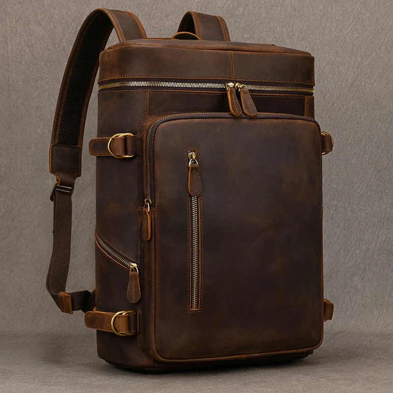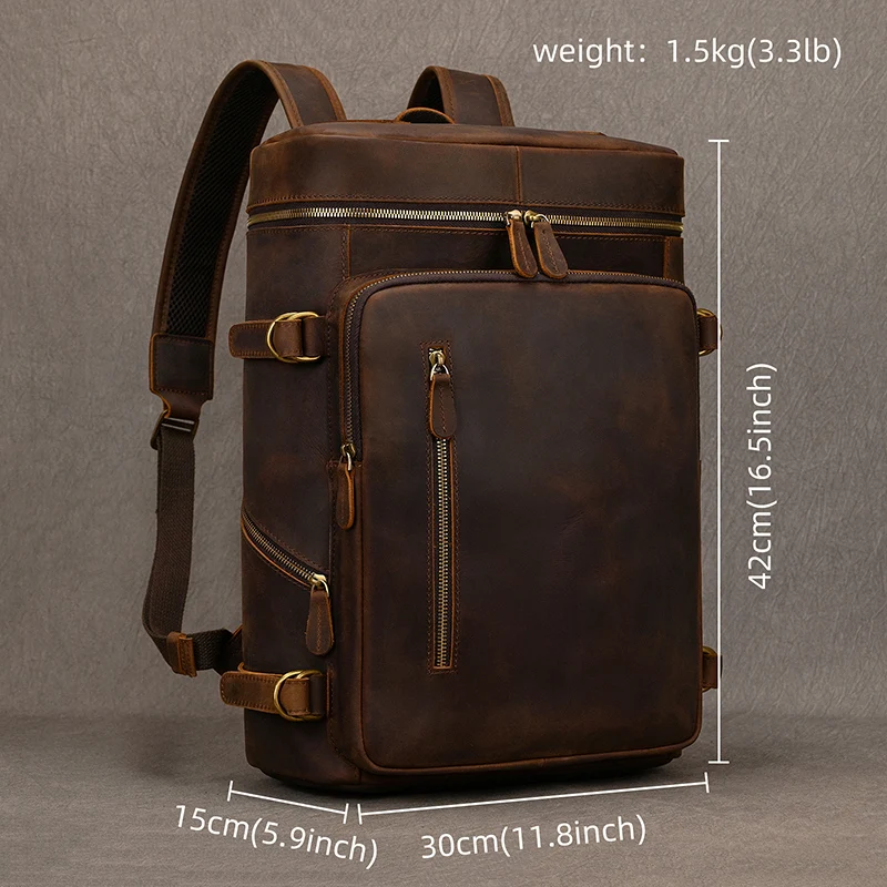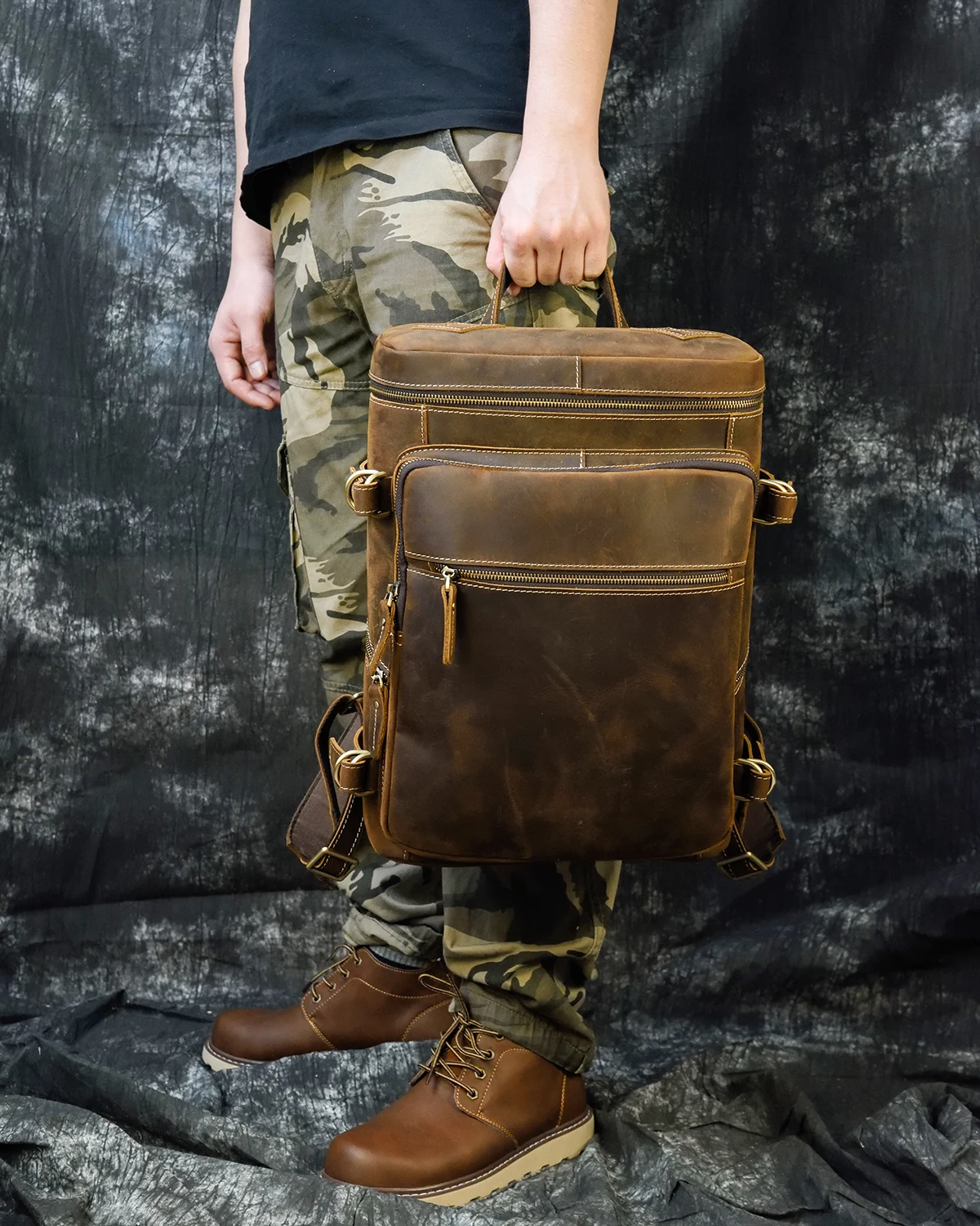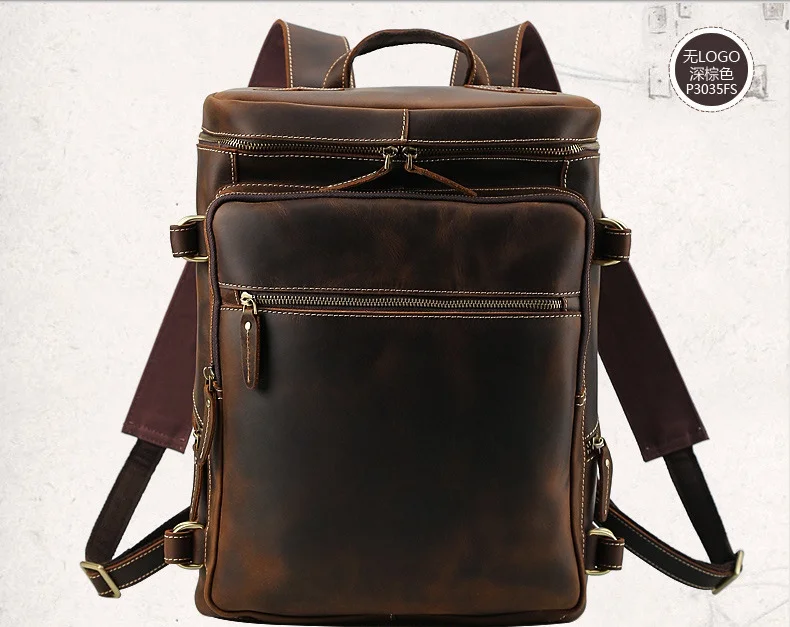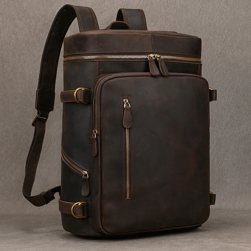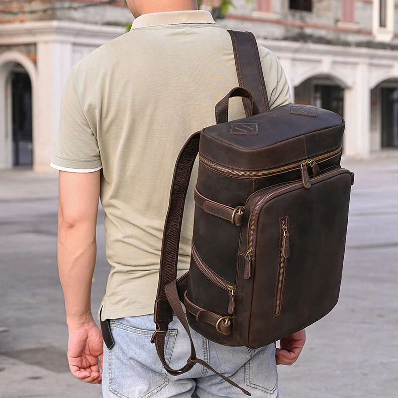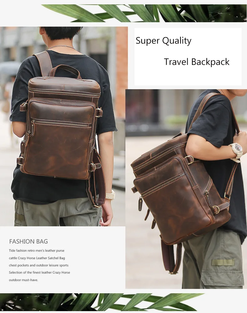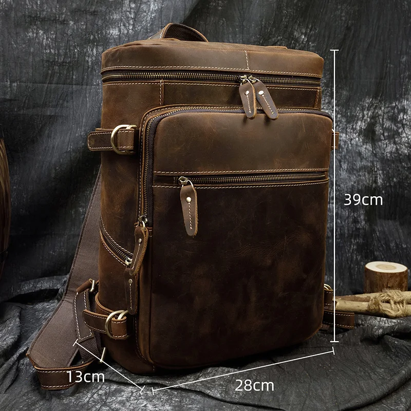 Luufan Leather Men’s Travel Backpack Crazy Horse Genuine leather Large Fit 15.6″ Laptop Rucksack Student School Bag Big Daypack
