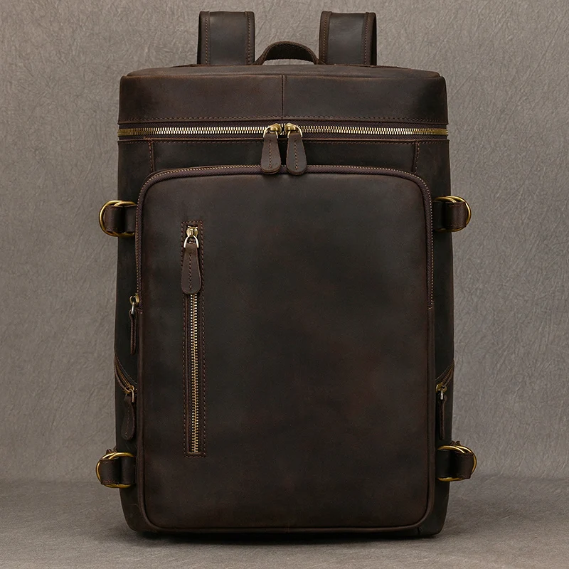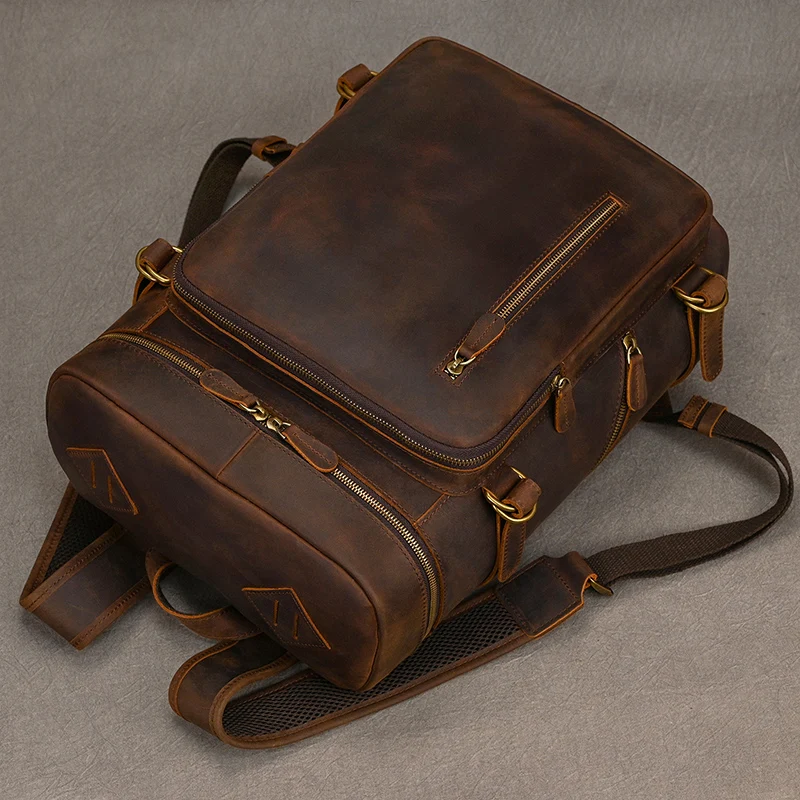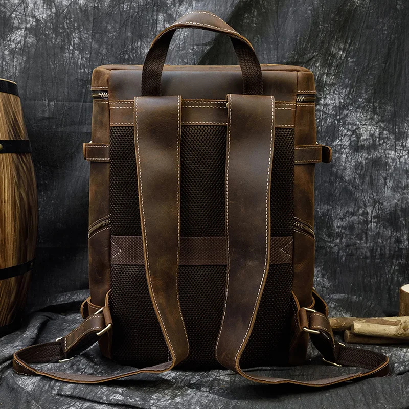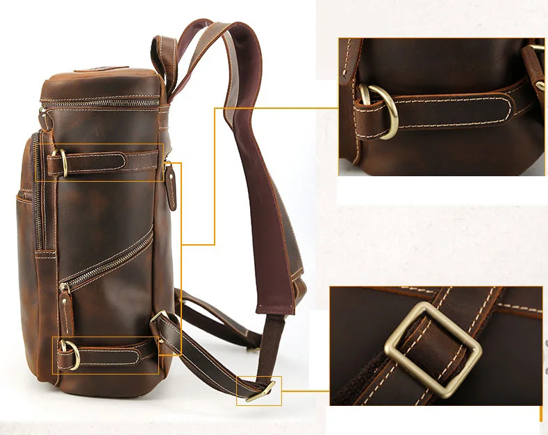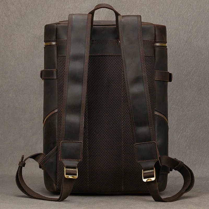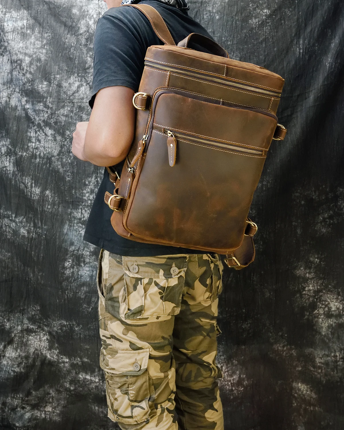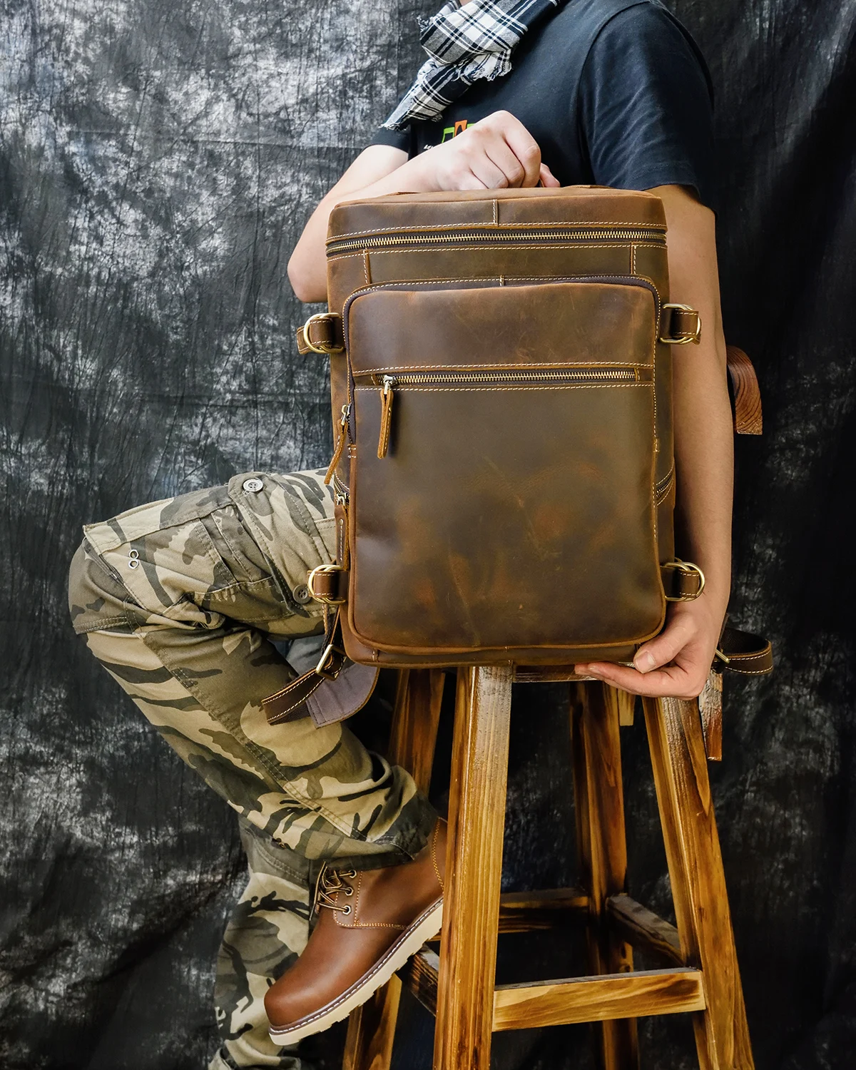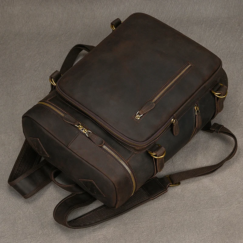 Luufan Leather Men’s Travel Backpack Crazy Horse Genuine leather Large Fit 15.6″ Laptop Rucksack Student School Bag Big Daypack