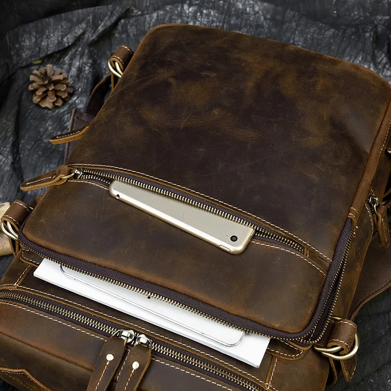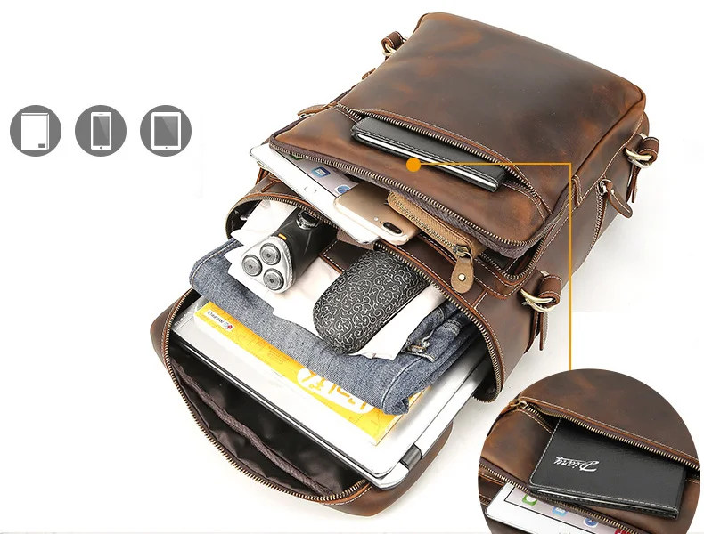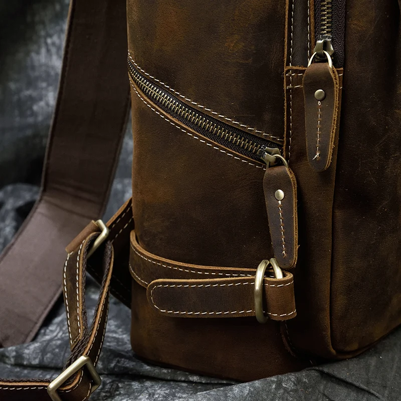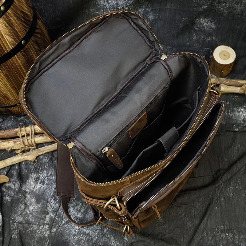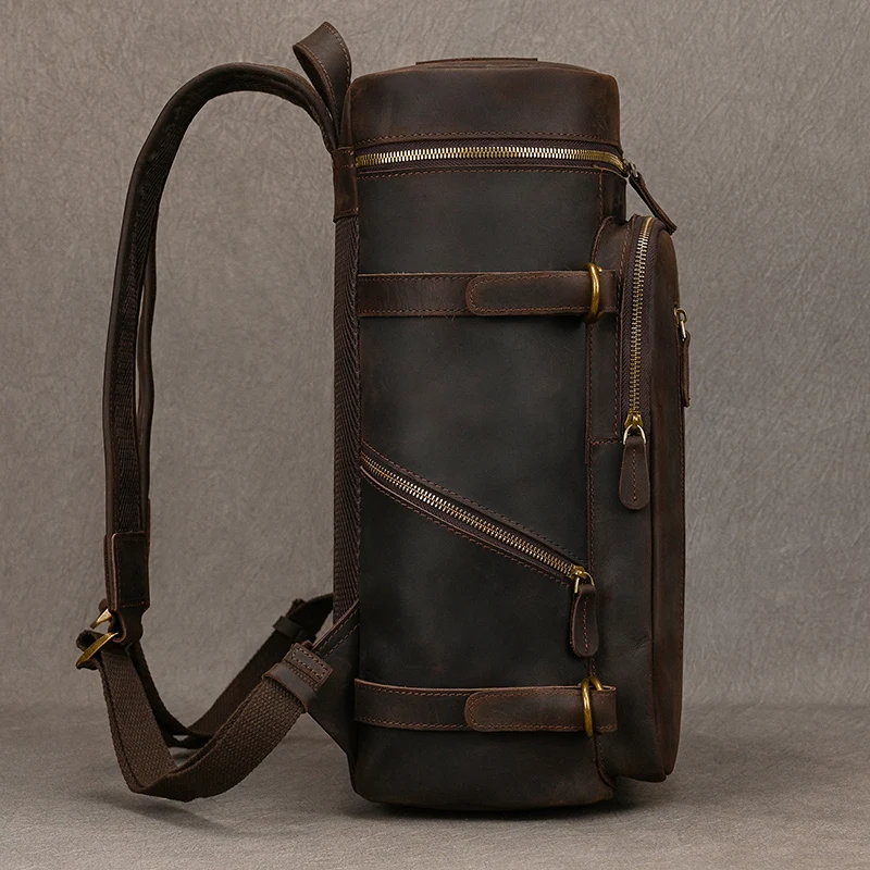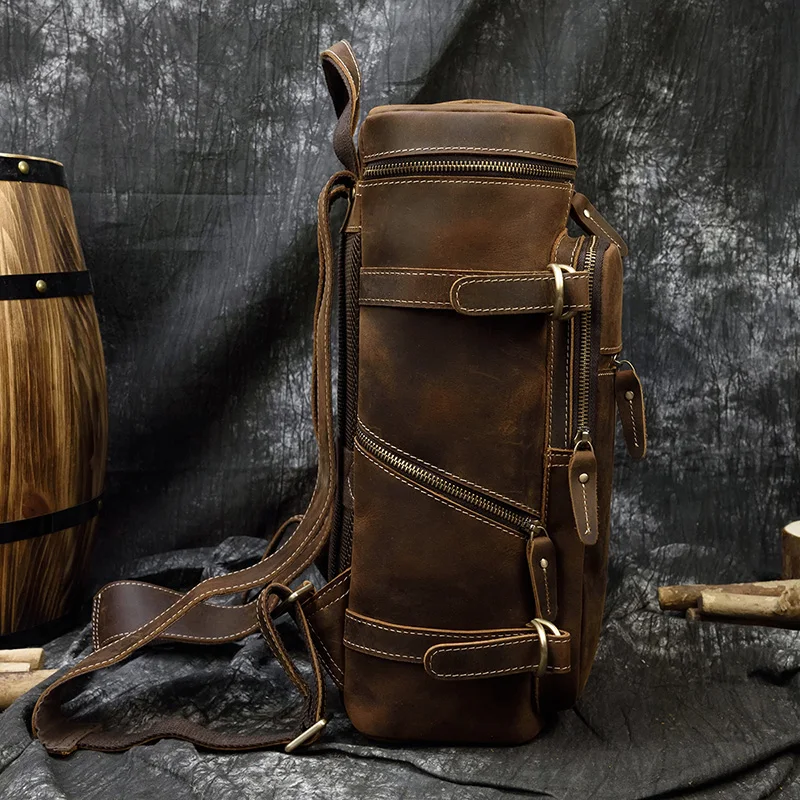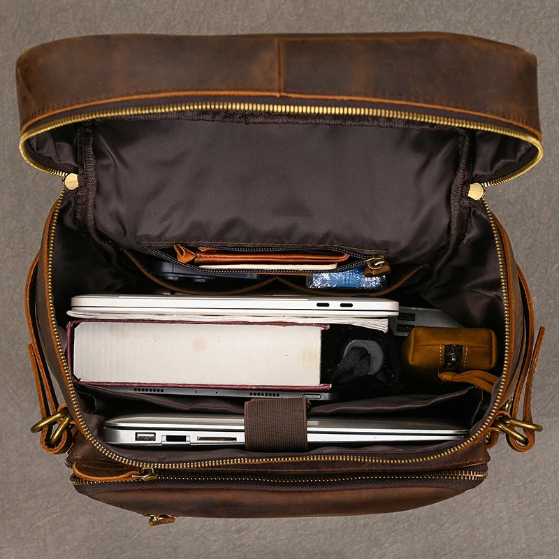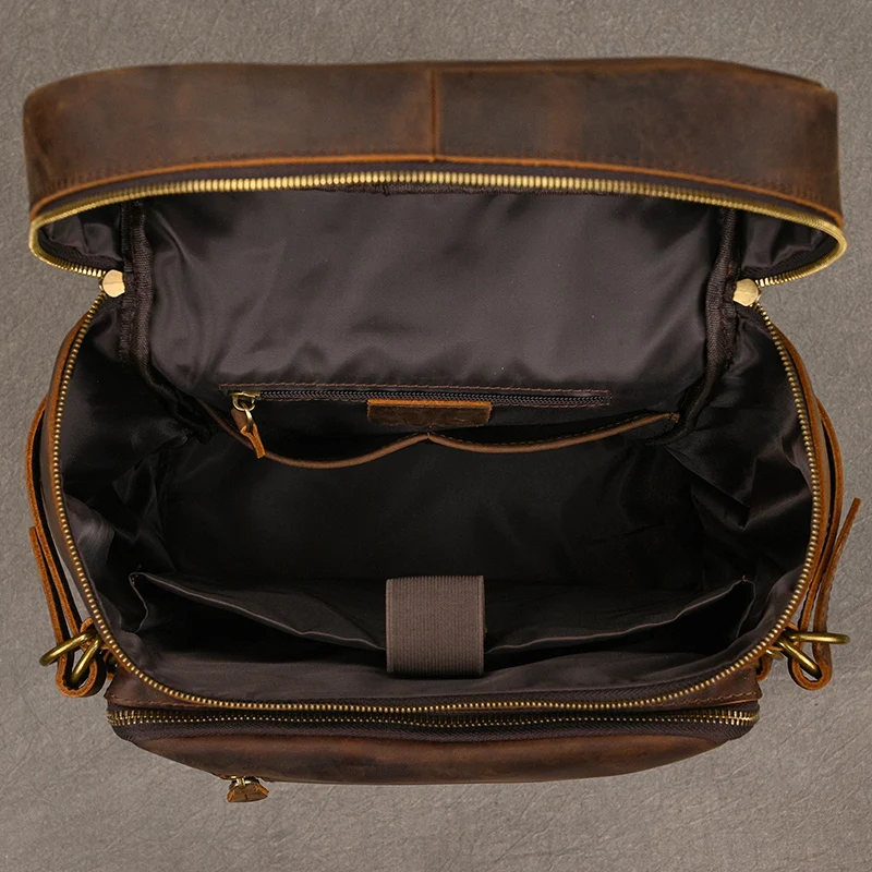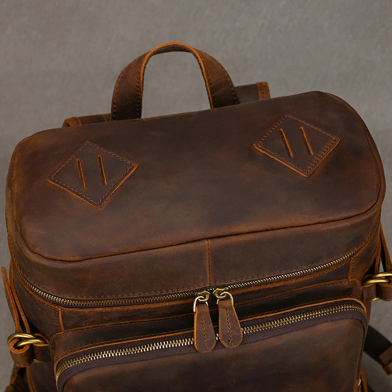 Luufan Leather Men’s Travel Backpack Crazy Horse Genuine leather Large Fit 15.6″ Laptop Rucksack Student School Bag Big Daypack
