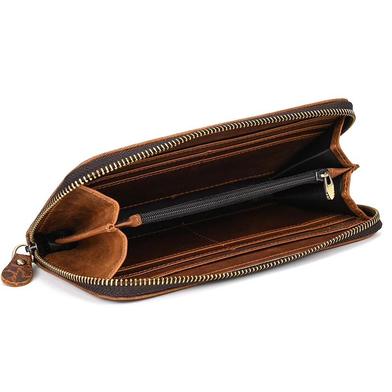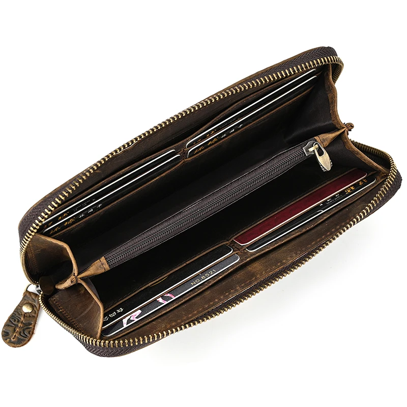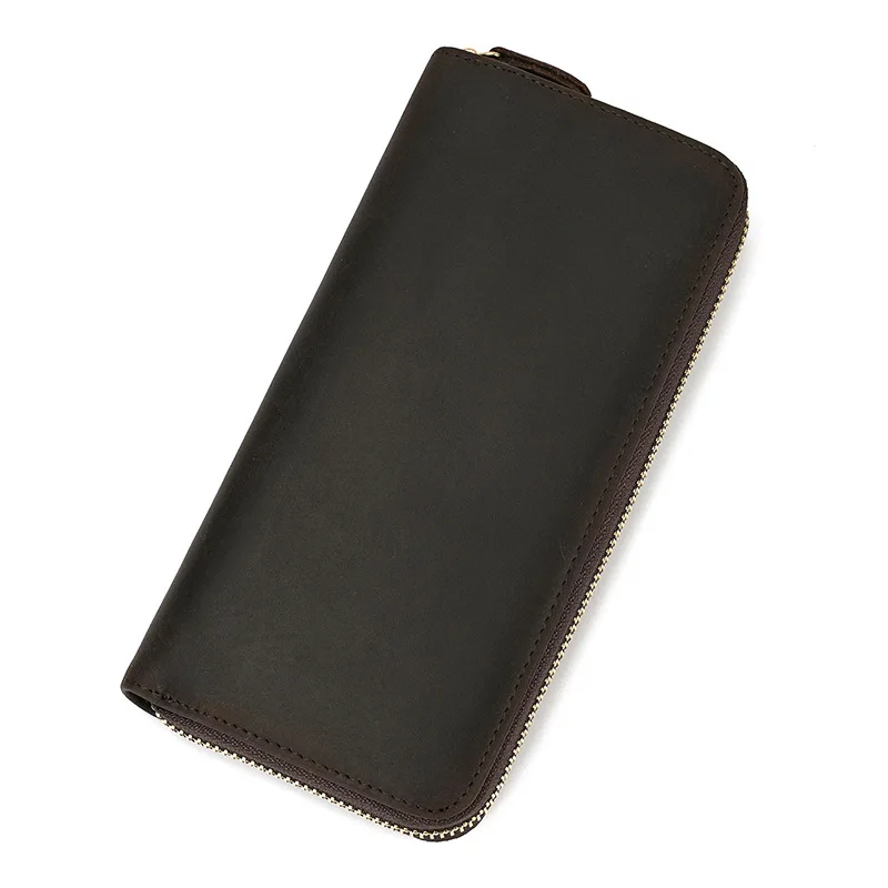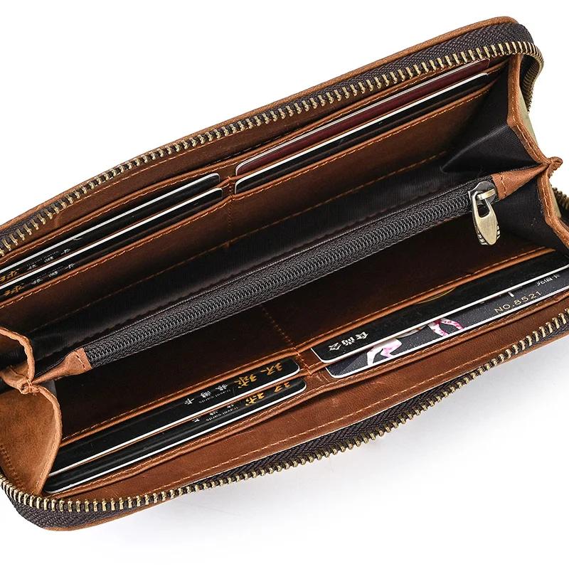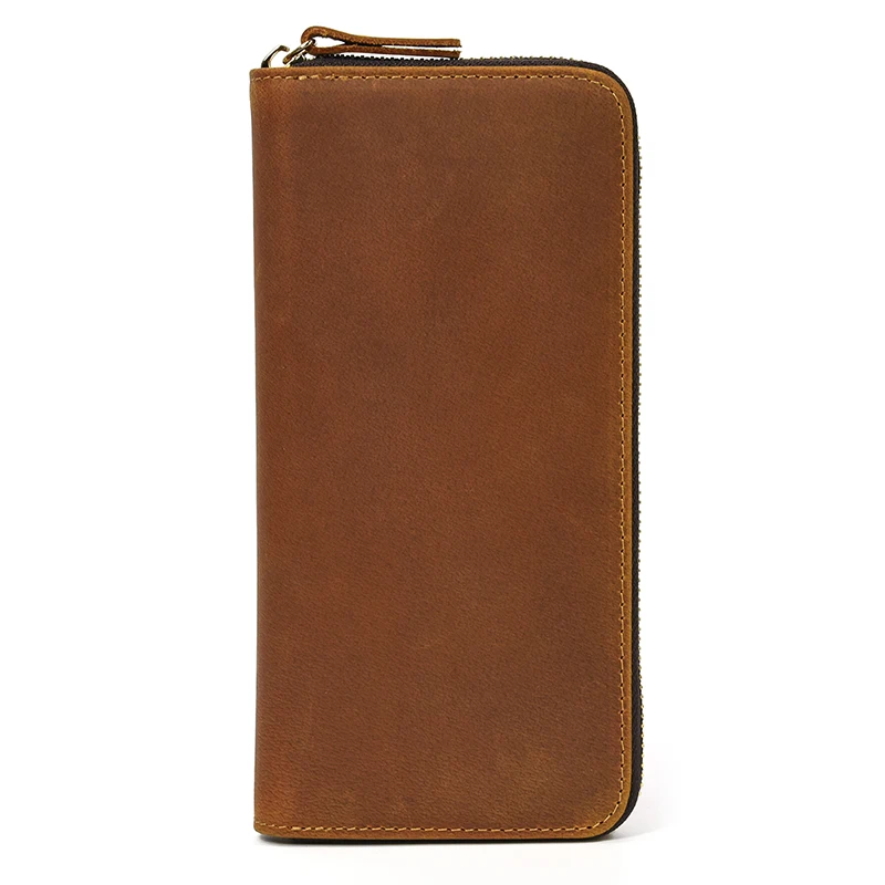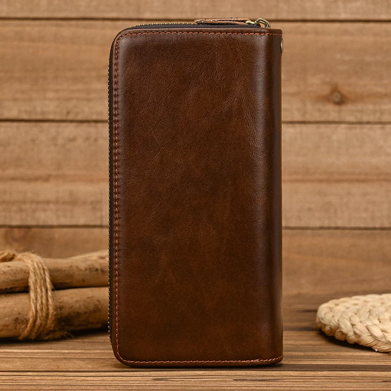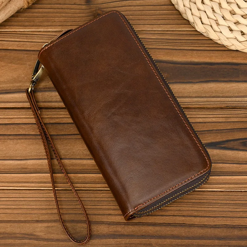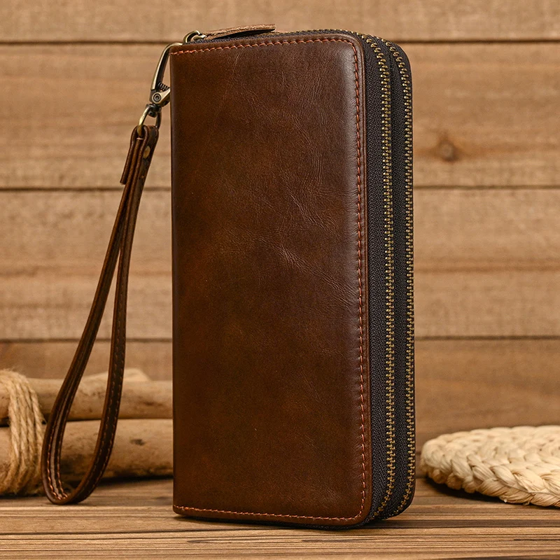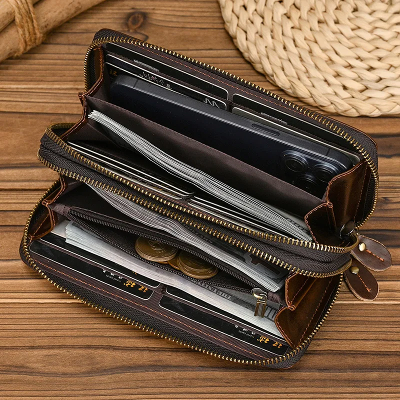 Luxury Double Zipper Women Men Long Wallet Vintage Leather Male Clutch Purse Man Phone Card Coin 100% Genuine Leather Men Wallet