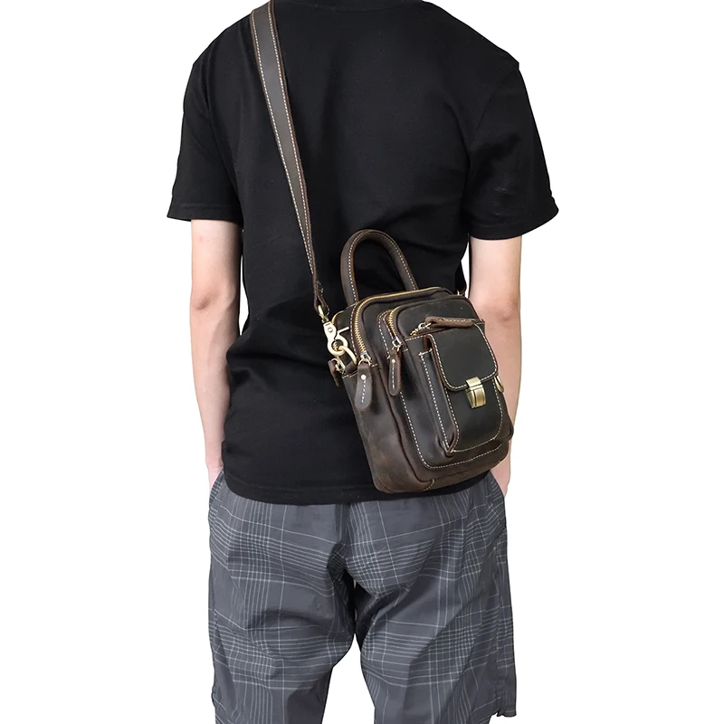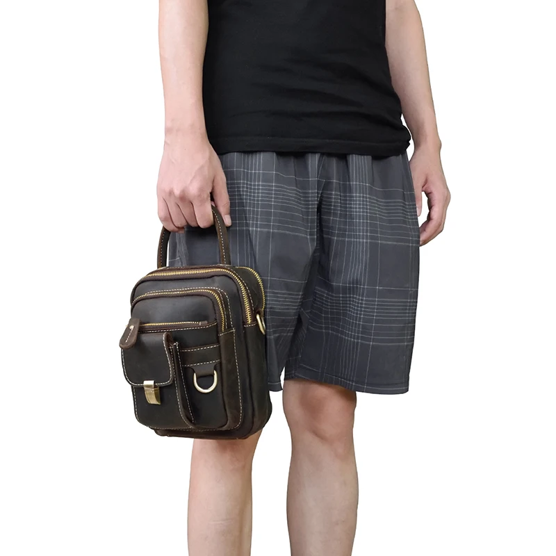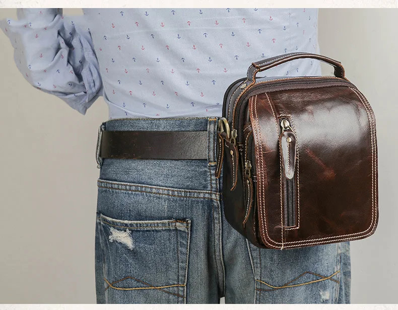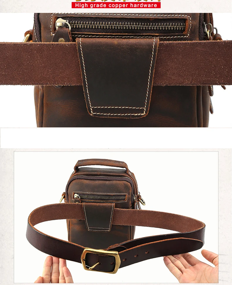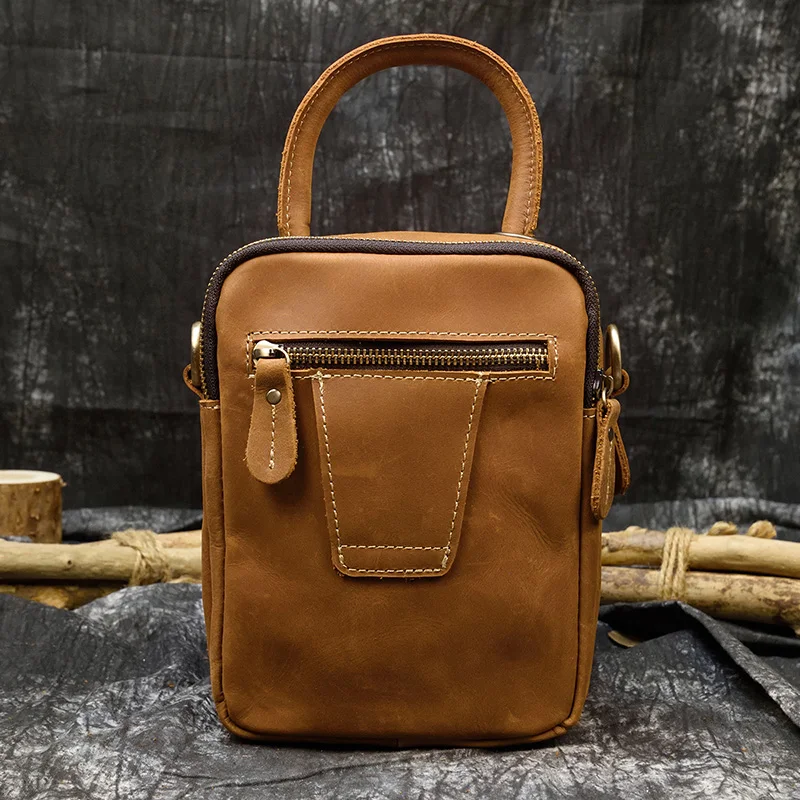 MAHEU Super Quality Men’s Mini Shoulder Bag Genuine Leather Phone Pouch On Belt Small Crossbody Bag With Handle Outdoor Bag