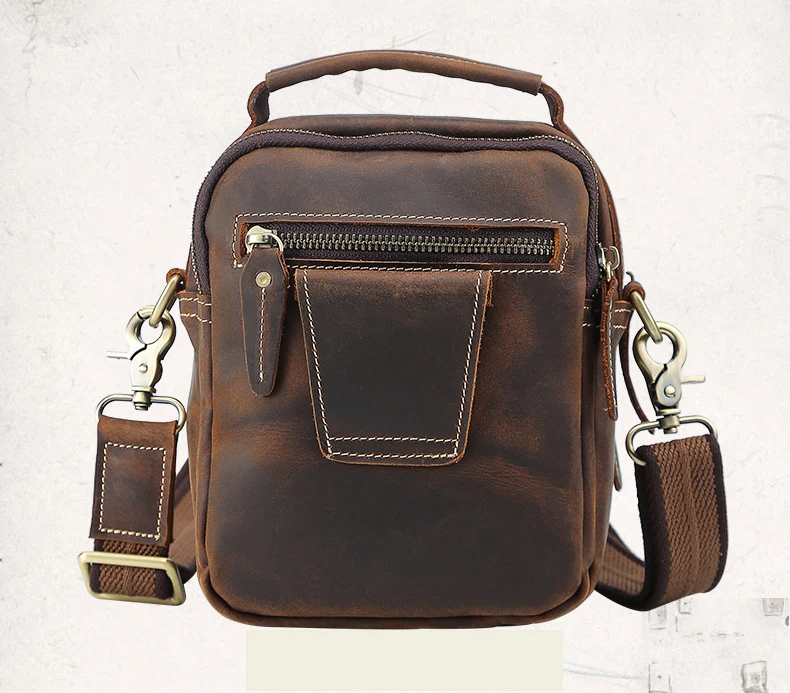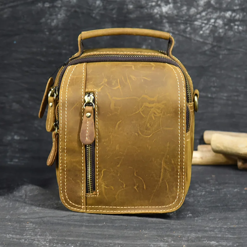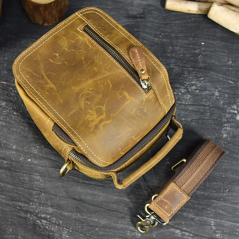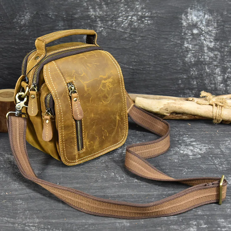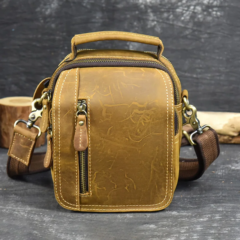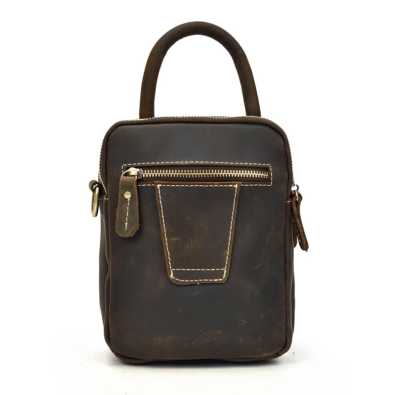 MAHEU Super Quality Men’s Mini Shoulder Bag Genuine Leather Phone Pouch On Belt Small Crossbody Bag With Handle Outdoor Bag