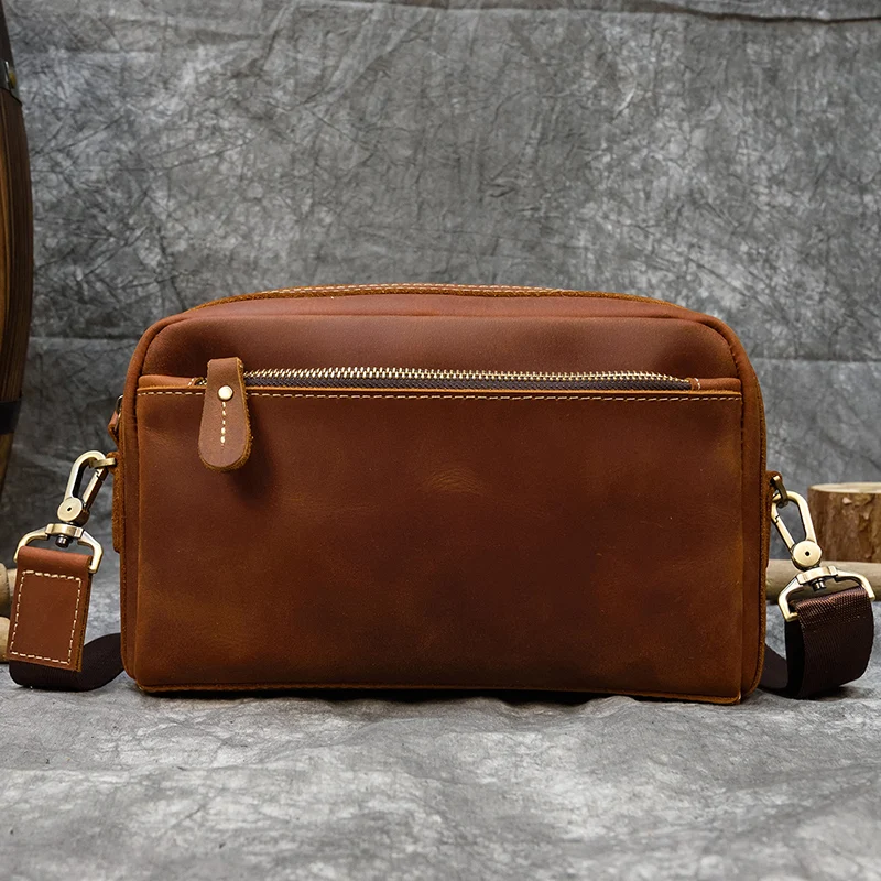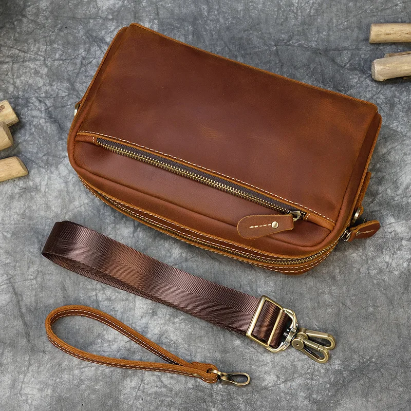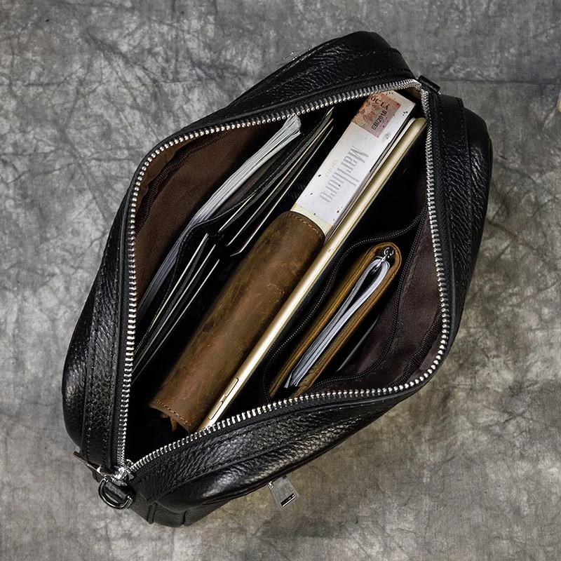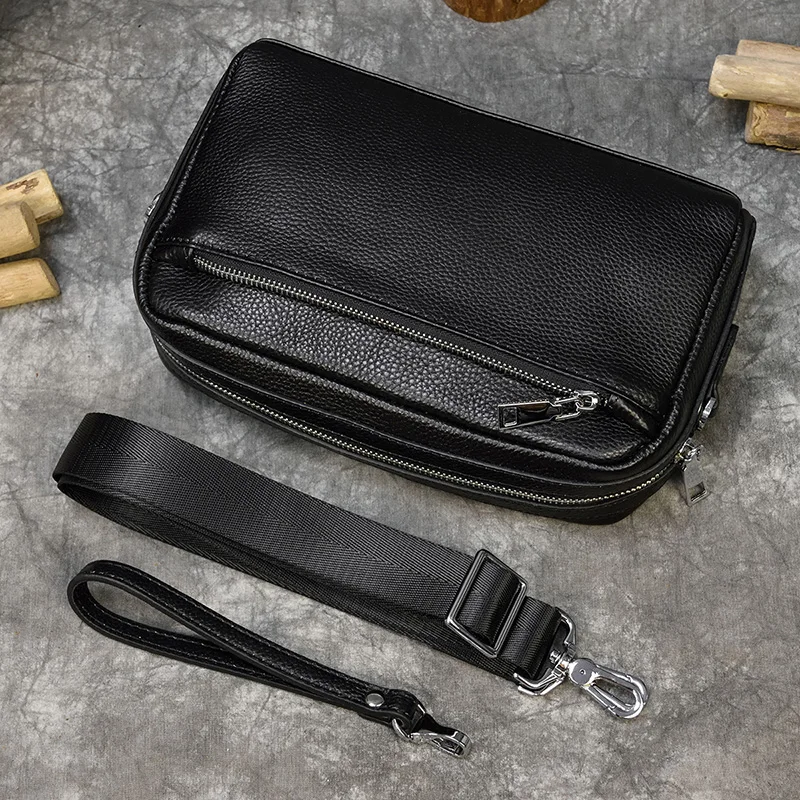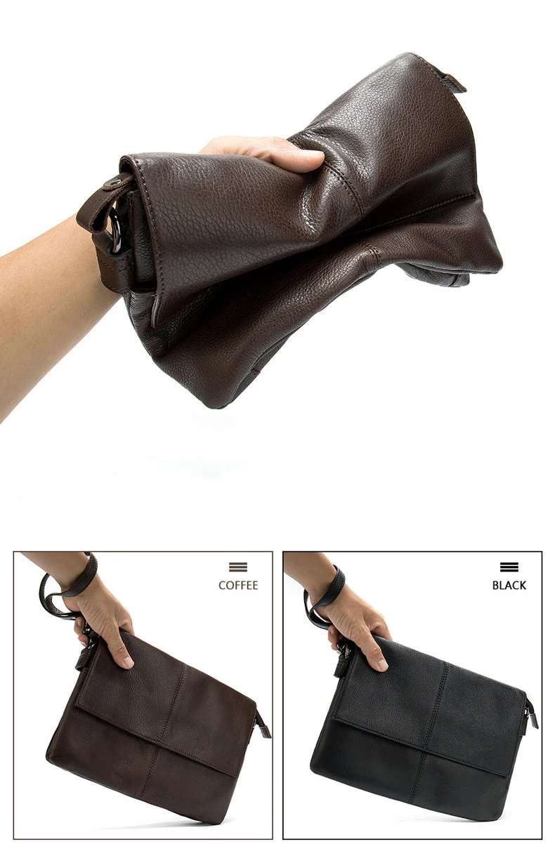 Mens Genuine Leather Shoulder Bag Messenger Bag Soft Cow Leather Crossbody Bags Daily clutch bag Male Wrist Bag Multifunction