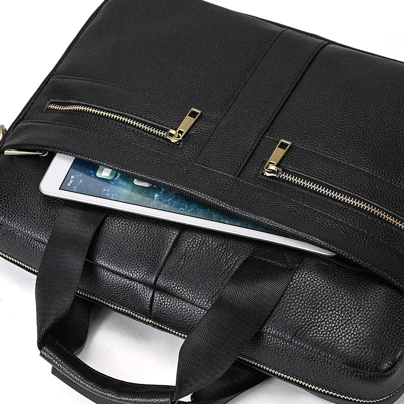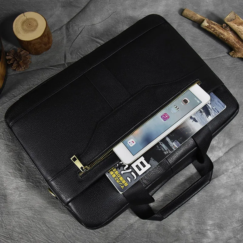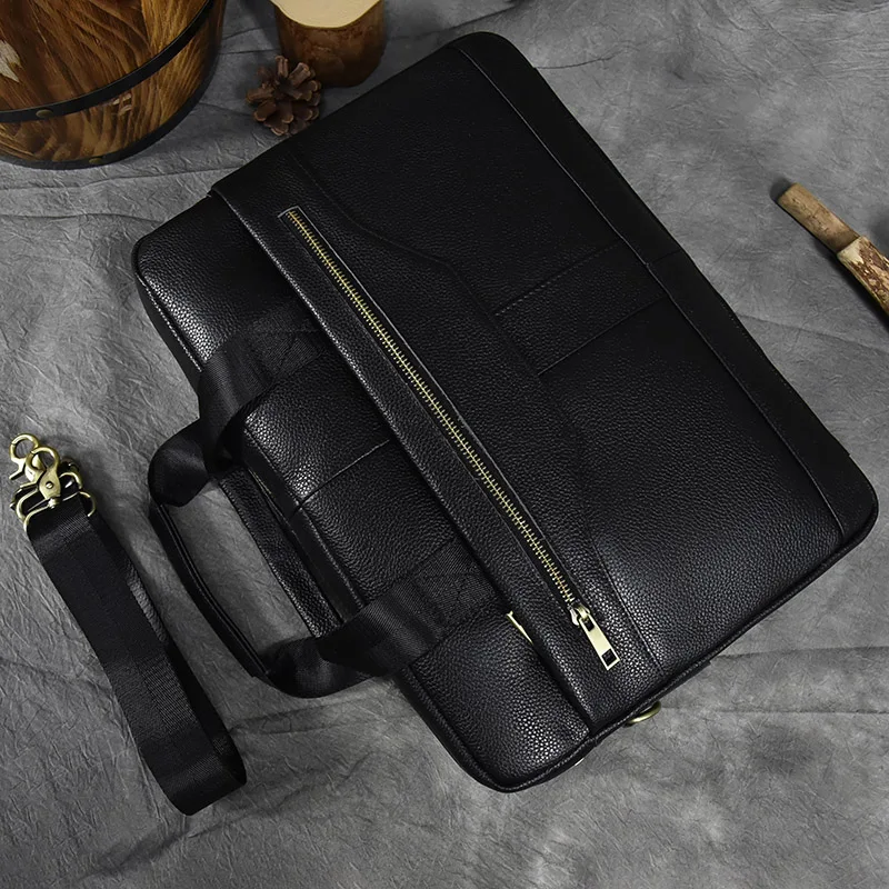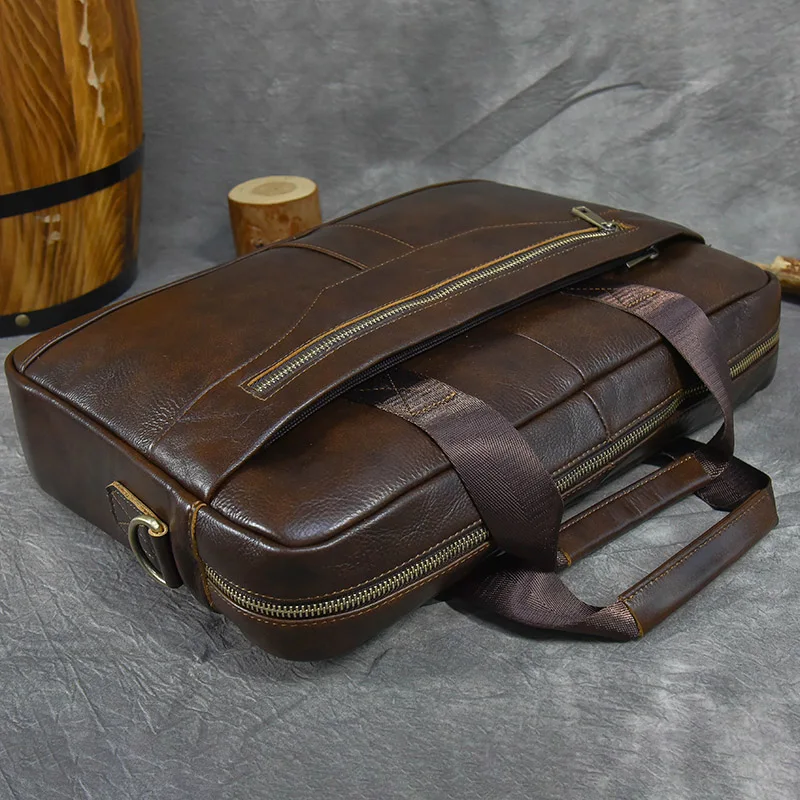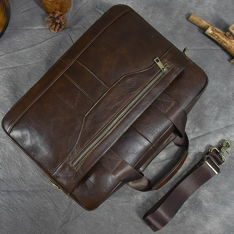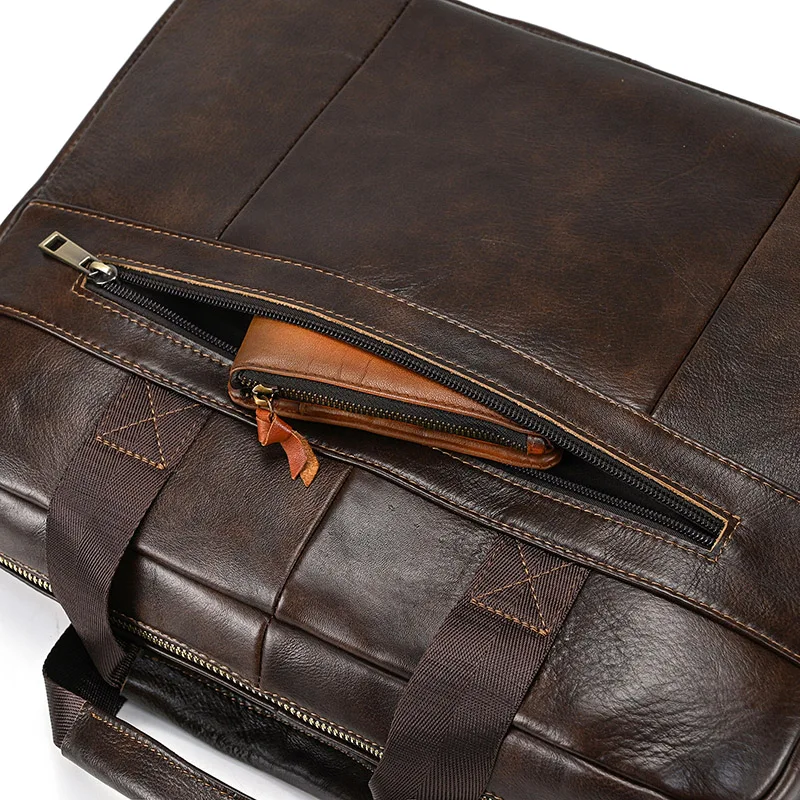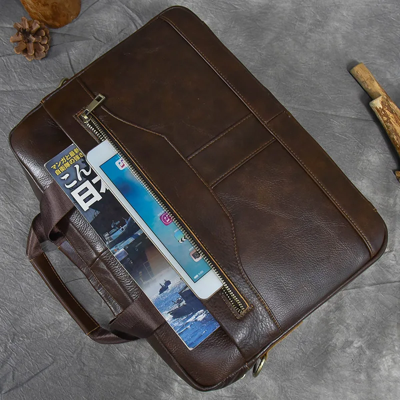 Men’s leather briefcase business man’s bag top layer cowhide lawyer’s computer bag Men’s style large 15.6 laptop bag with strap