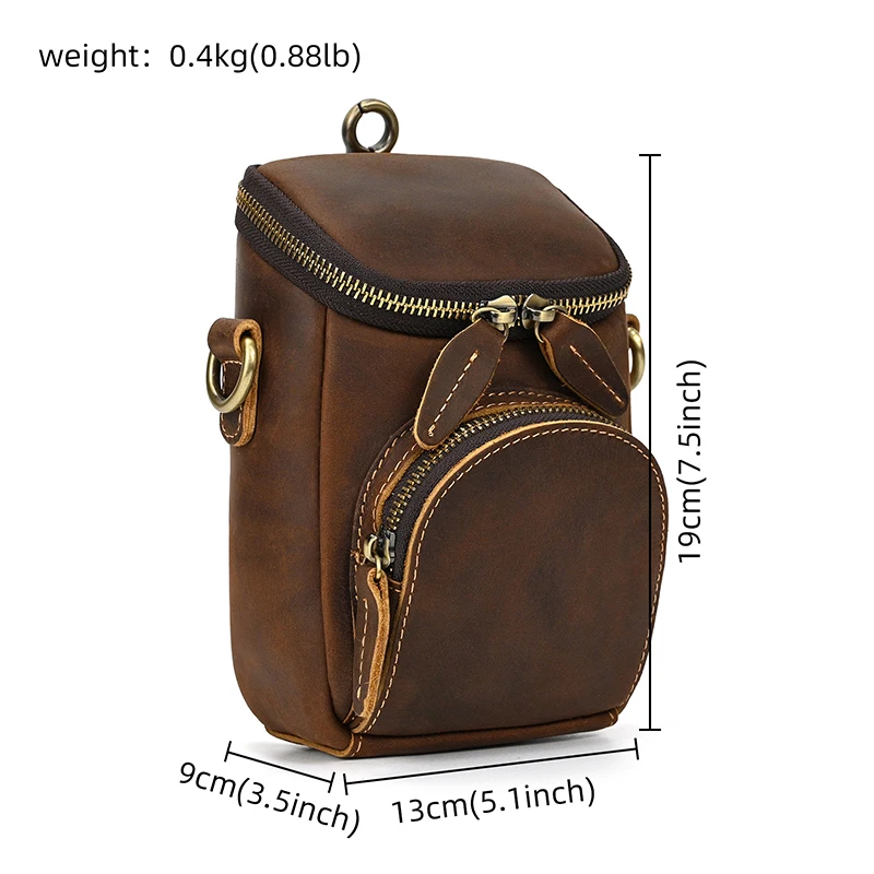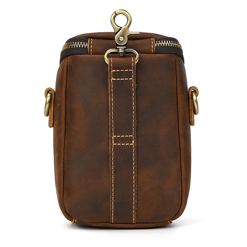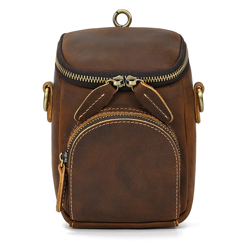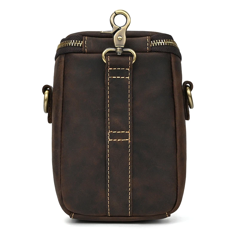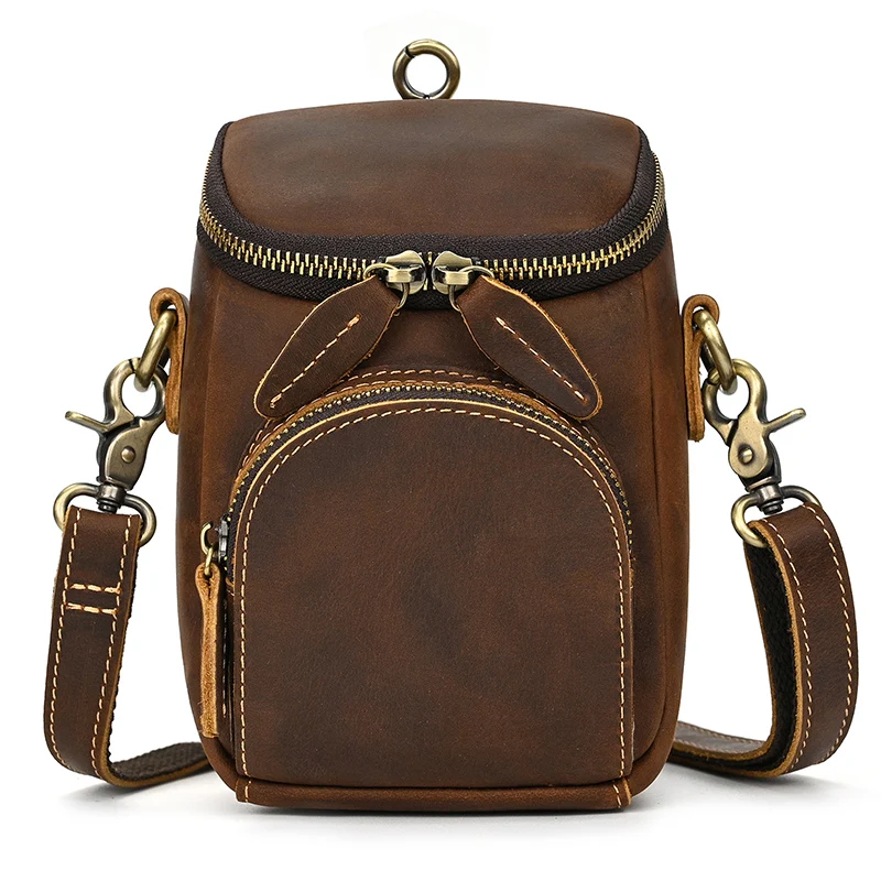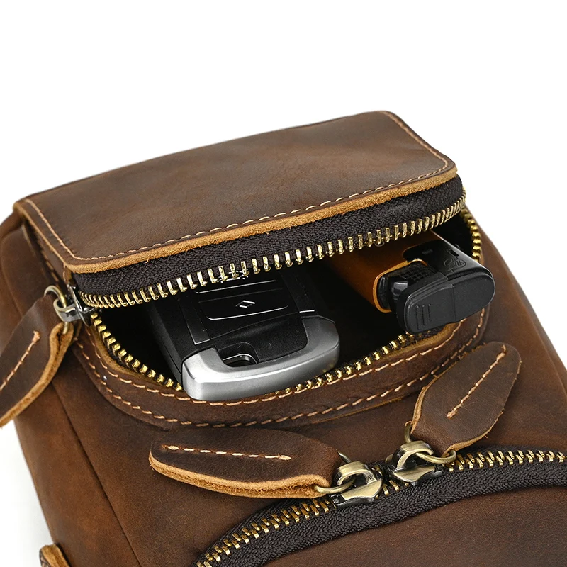 New design men’s bag shoulder crossbody bag leather vertical large capacity crazy horse leather mens wasit bag on belt sling bag