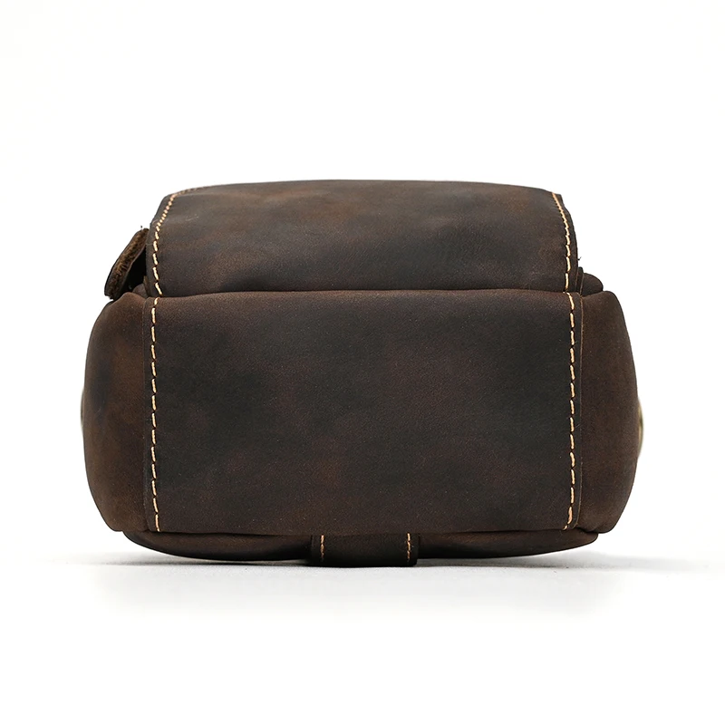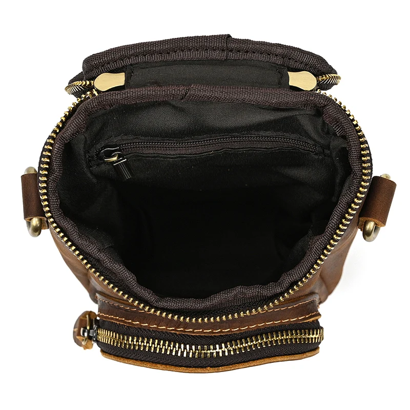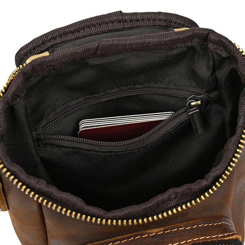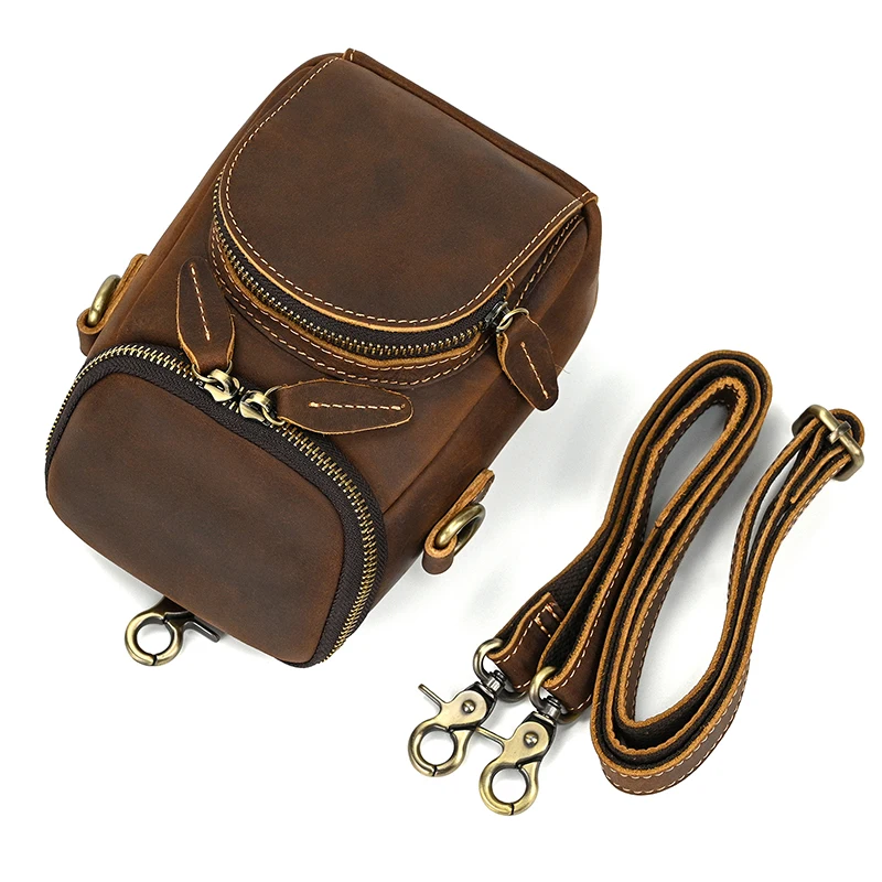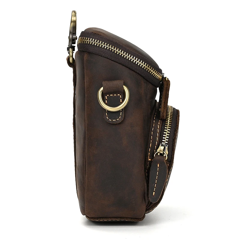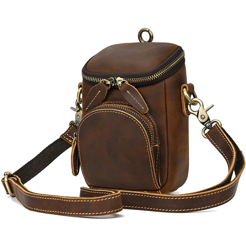 New design men’s bag shoulder crossbody bag leather vertical large capacity crazy horse leather mens wasit bag on belt sling bag