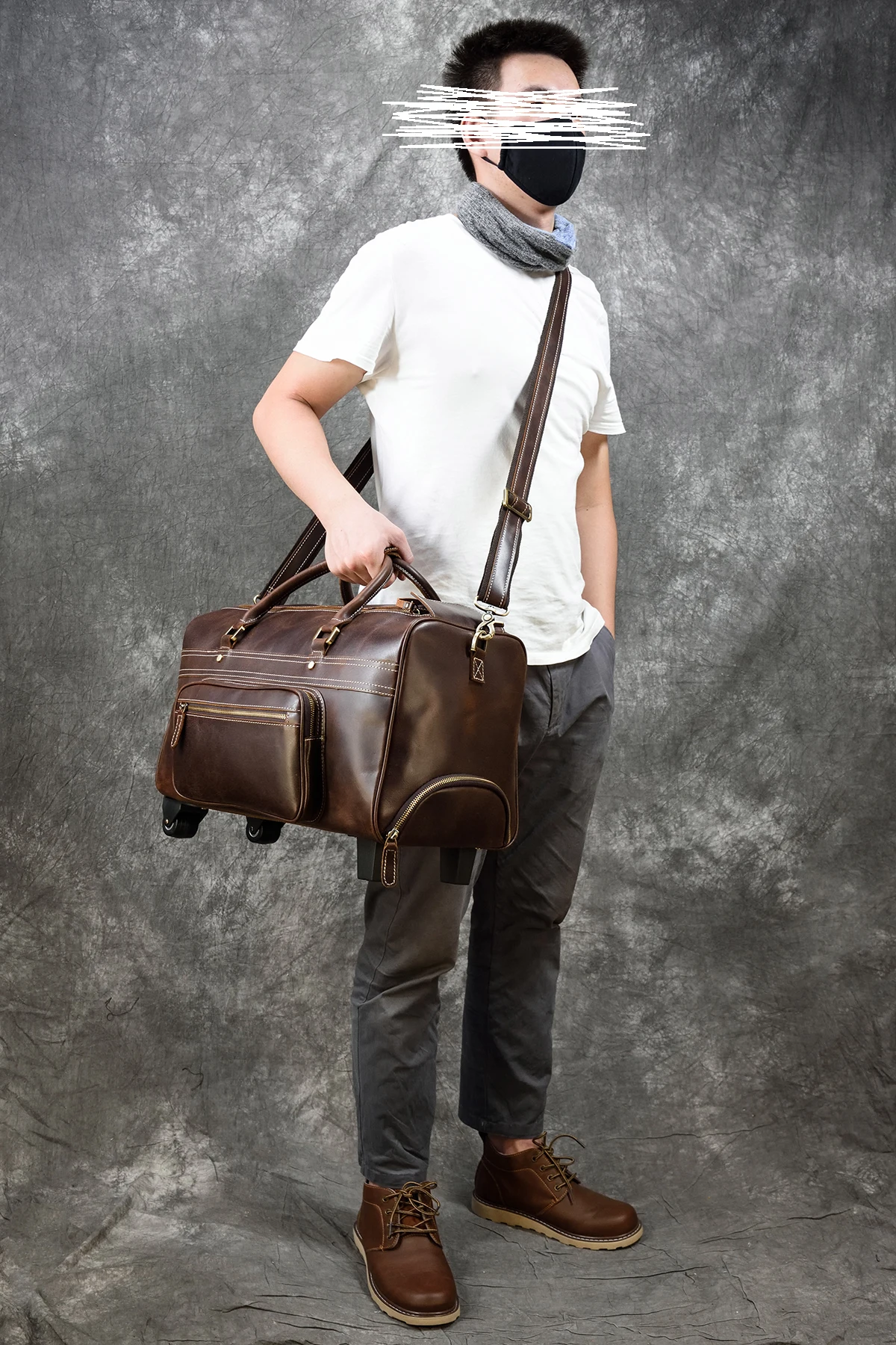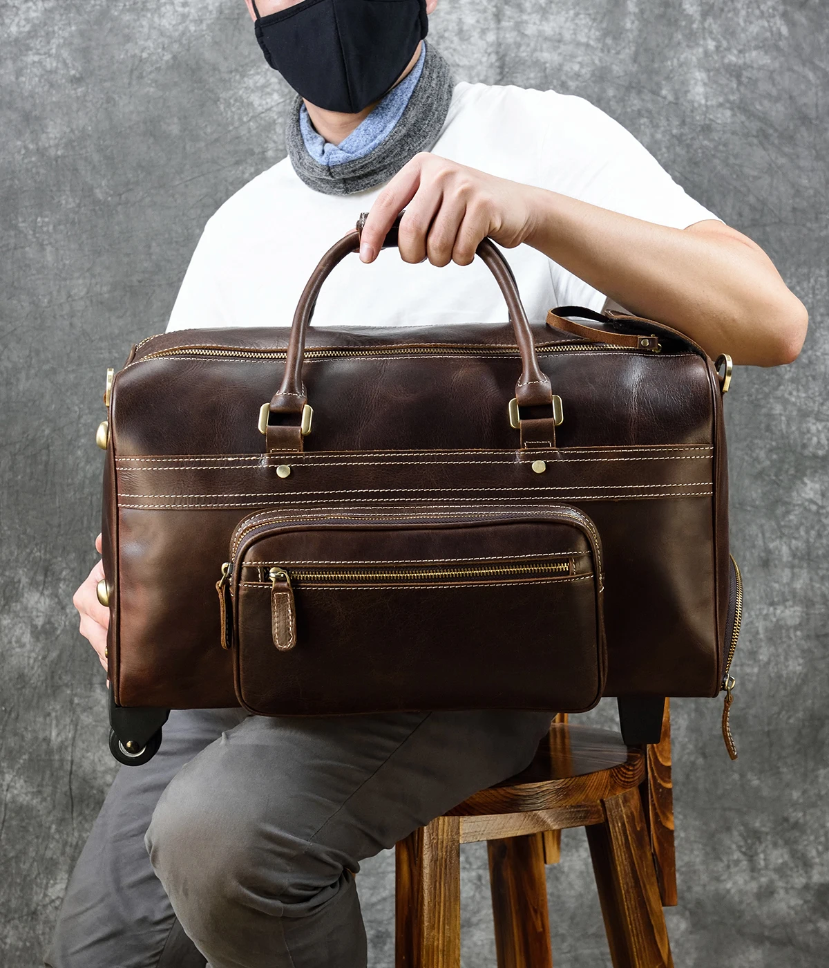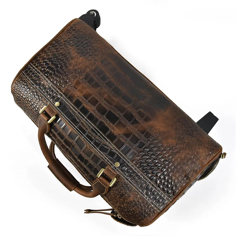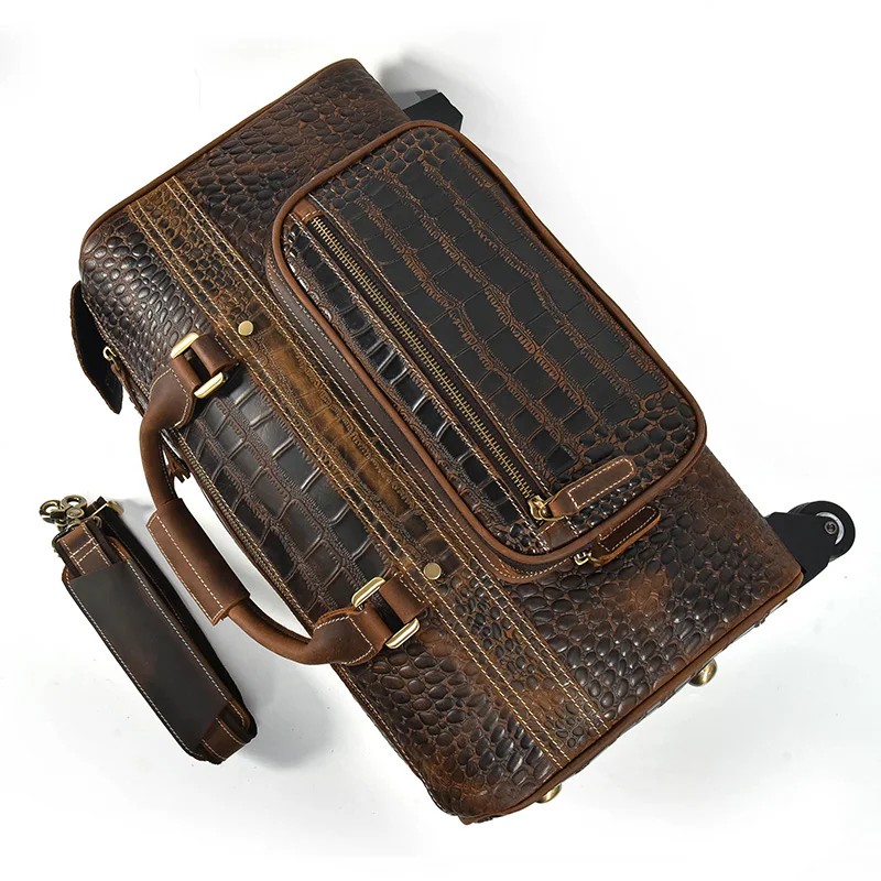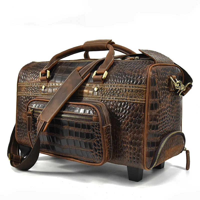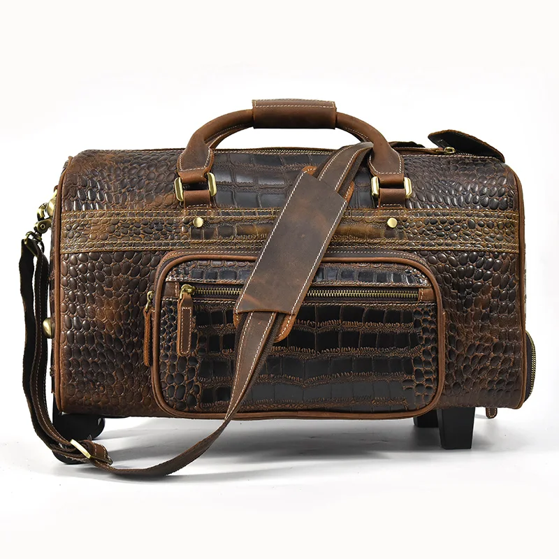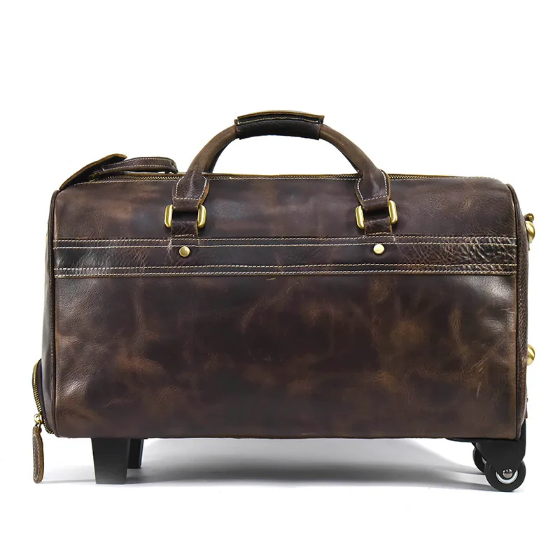 Newsbirds Genuine leather hand laugage travel bag with wheels men women travel bag rolling duffle bags with rollers handbags