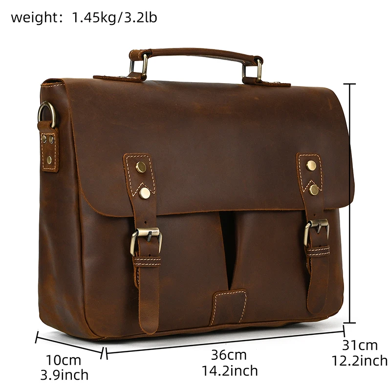 Newsbirds Leather Briefcase Shoulder Bag Vintage Style Men’s Crossbody Bags For A4 Books Messenger For Men Women Handbags