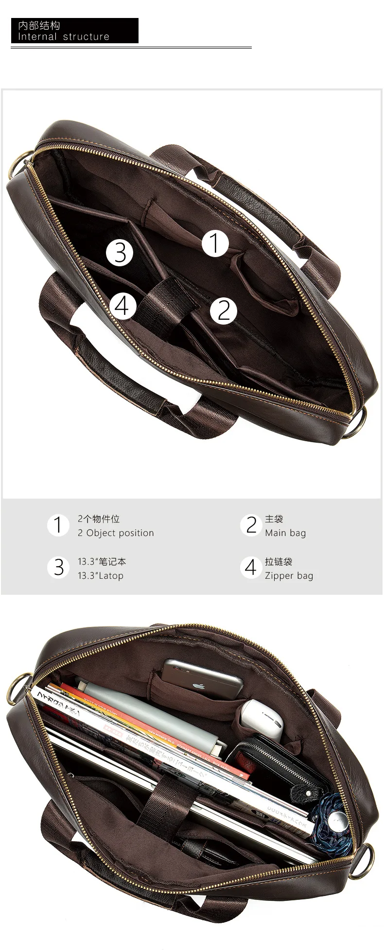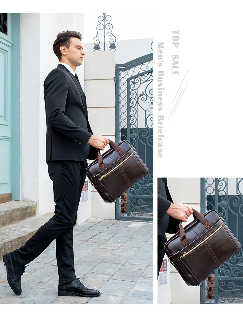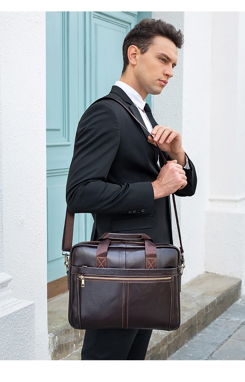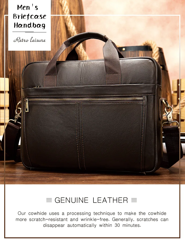 Newsbirds Leather Brifcase New designer laptop bag custom retro men’s handbag cowskin male business travel bag for 14 inch PC