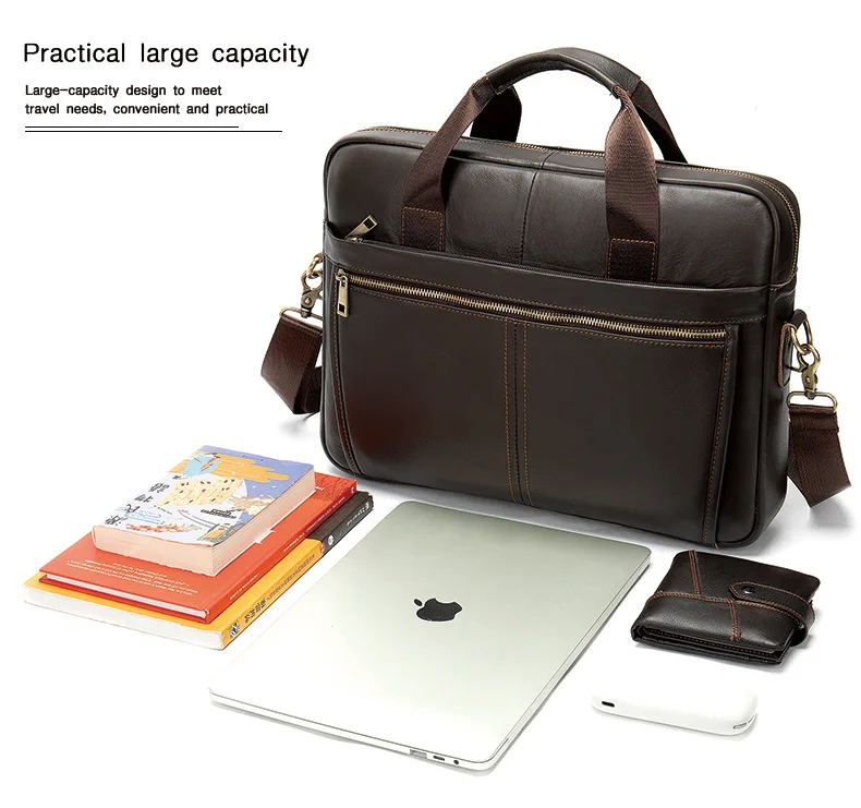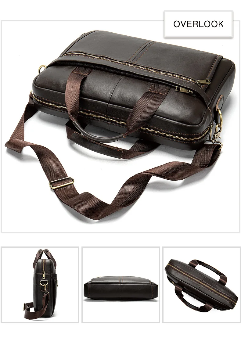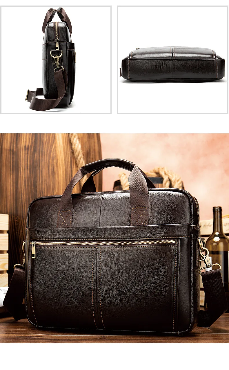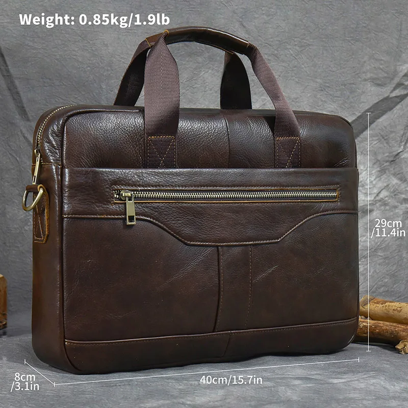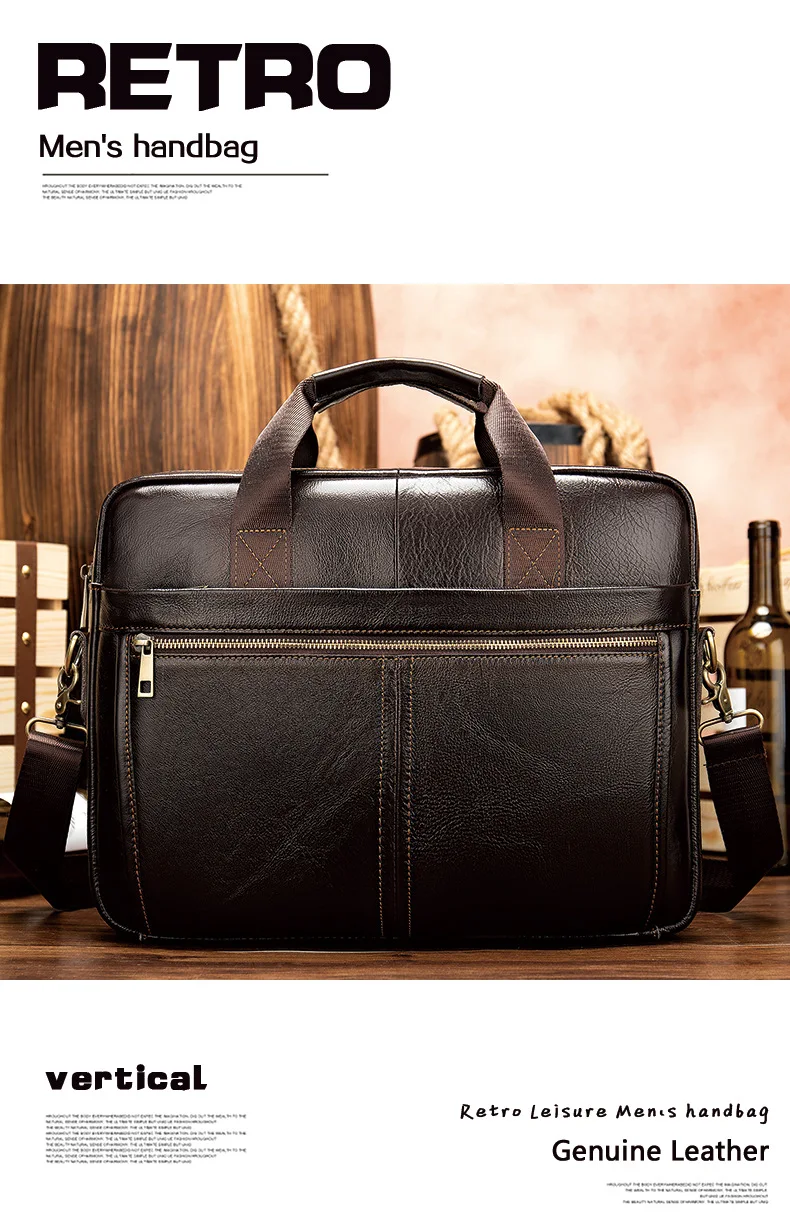 Newsbirds Leather Brifcase New designer laptop bag custom retro men’s handbag cowskin male business travel bag for 14 inch PC