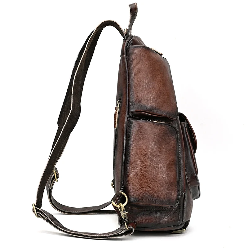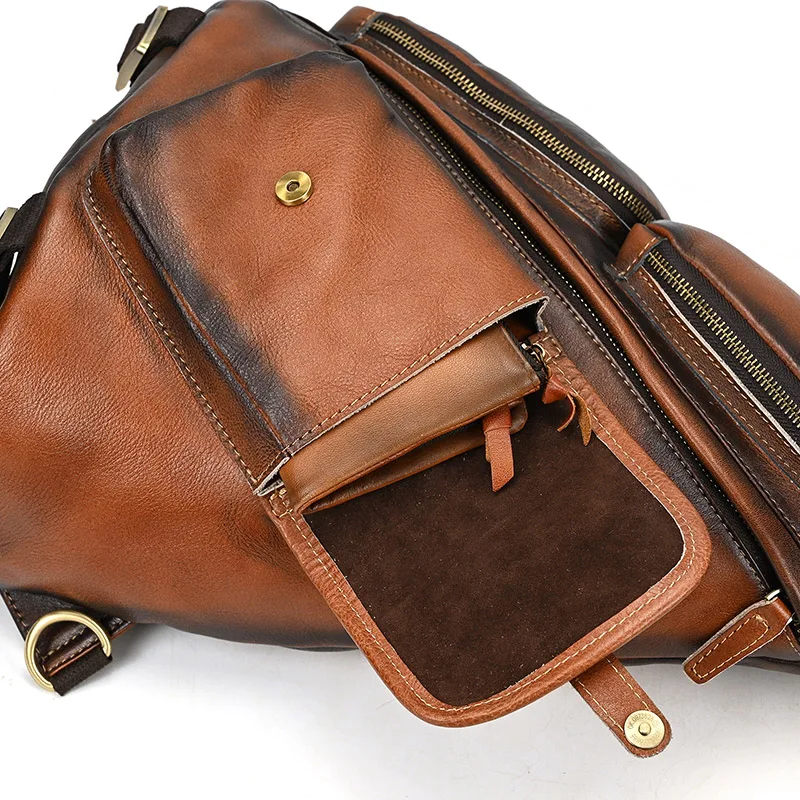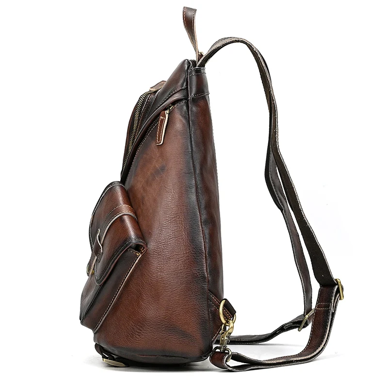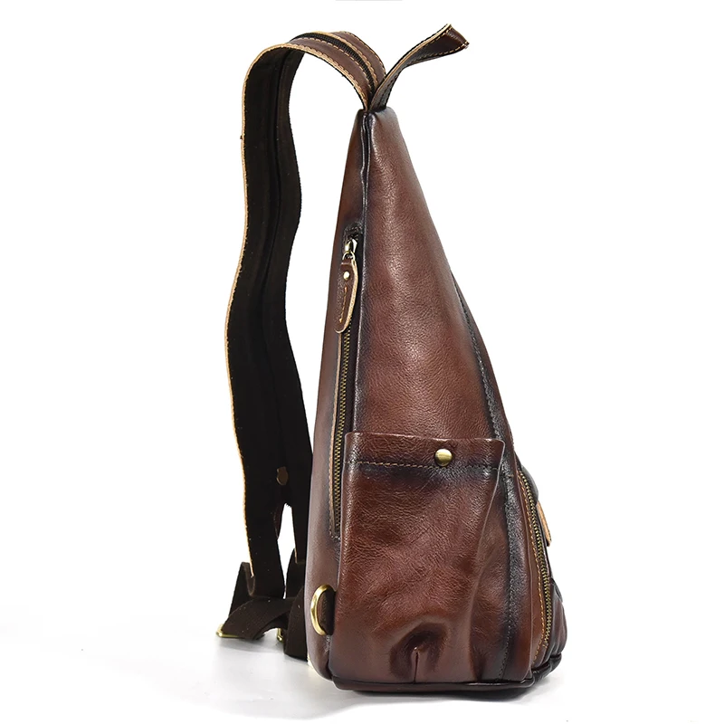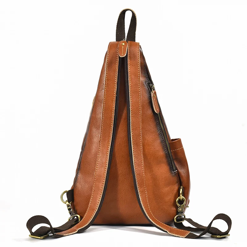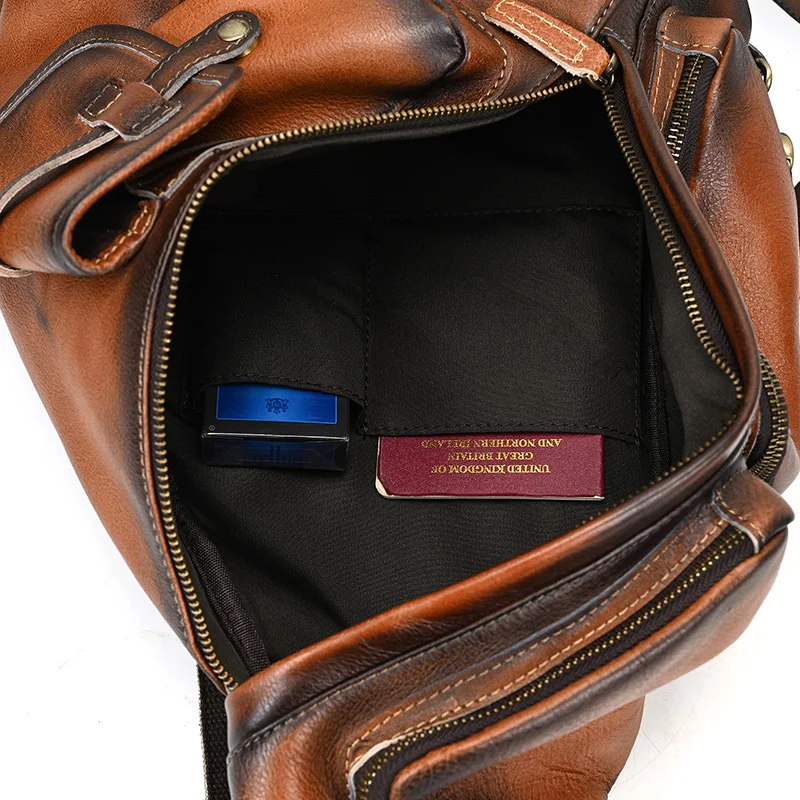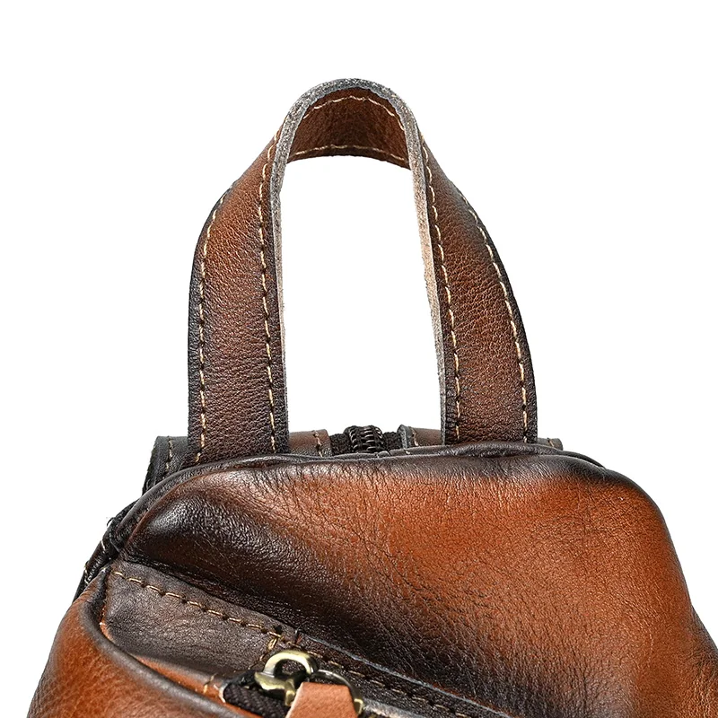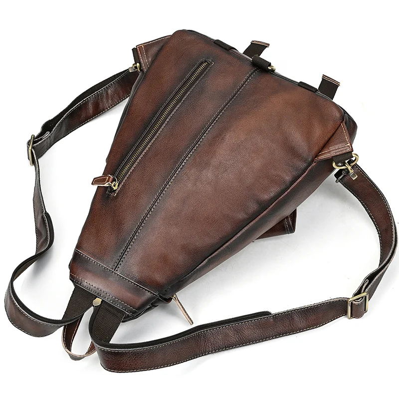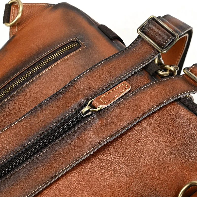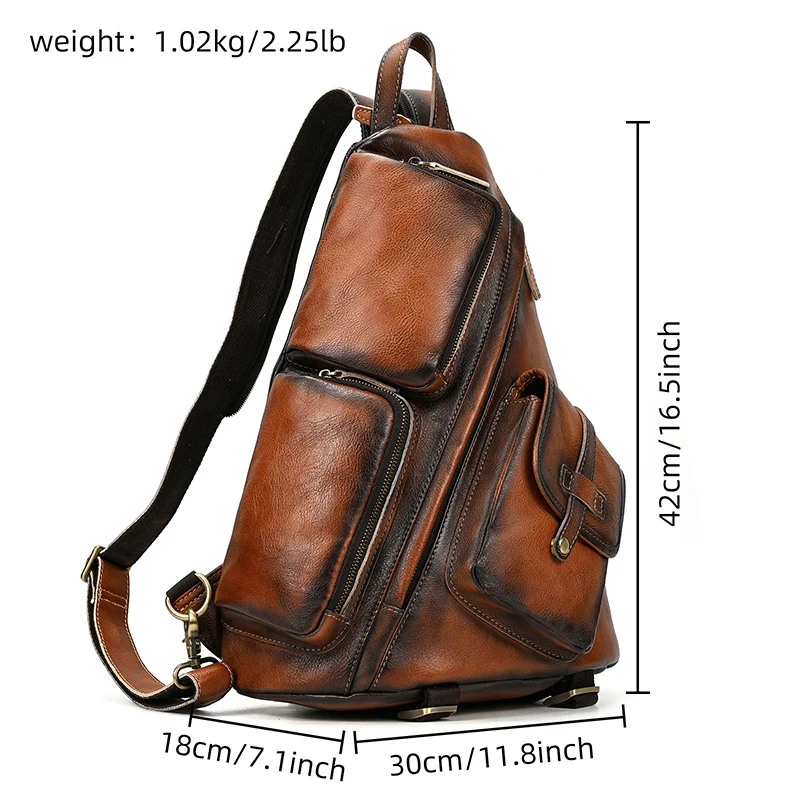 Newsbirds Leather Chest Bag Backpack Dual Use Genuine Leather Crossbody Bag Of Men Male Vintage Style Single Shoulder Backpack