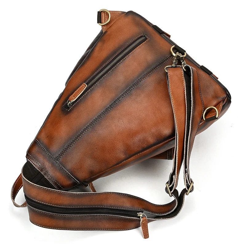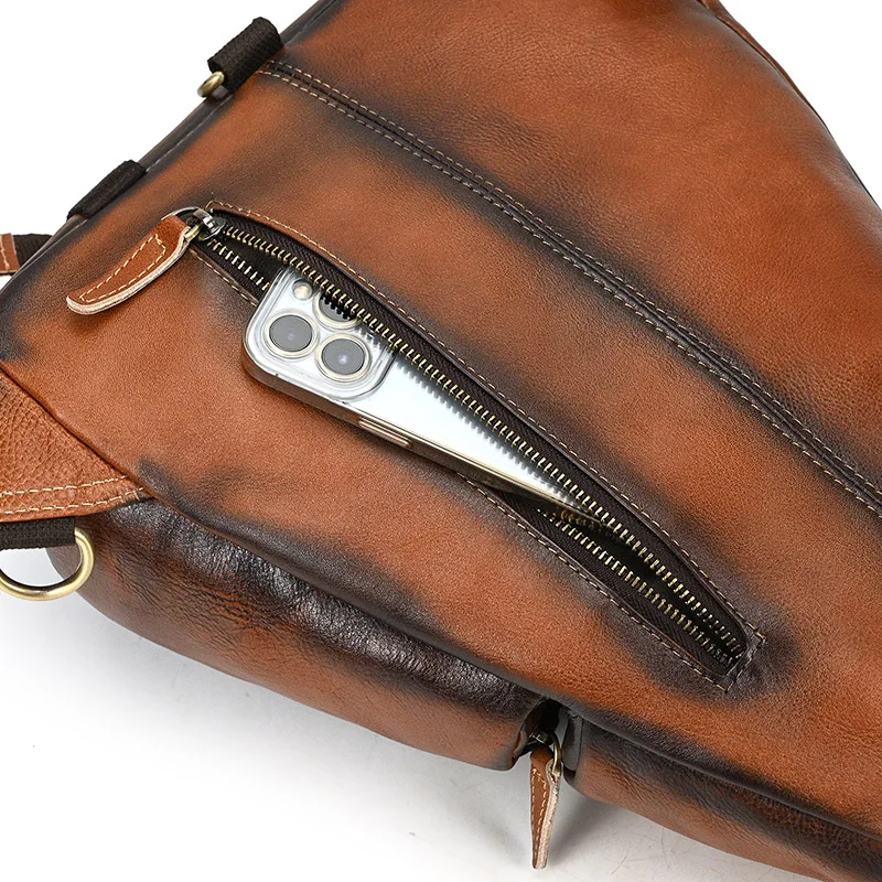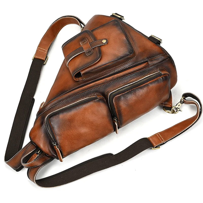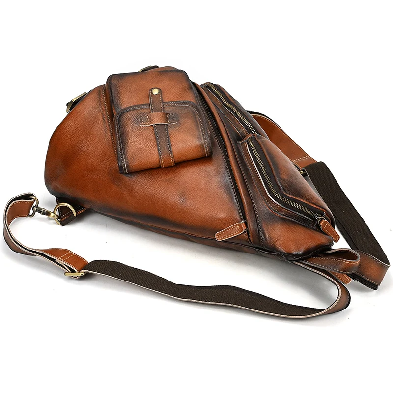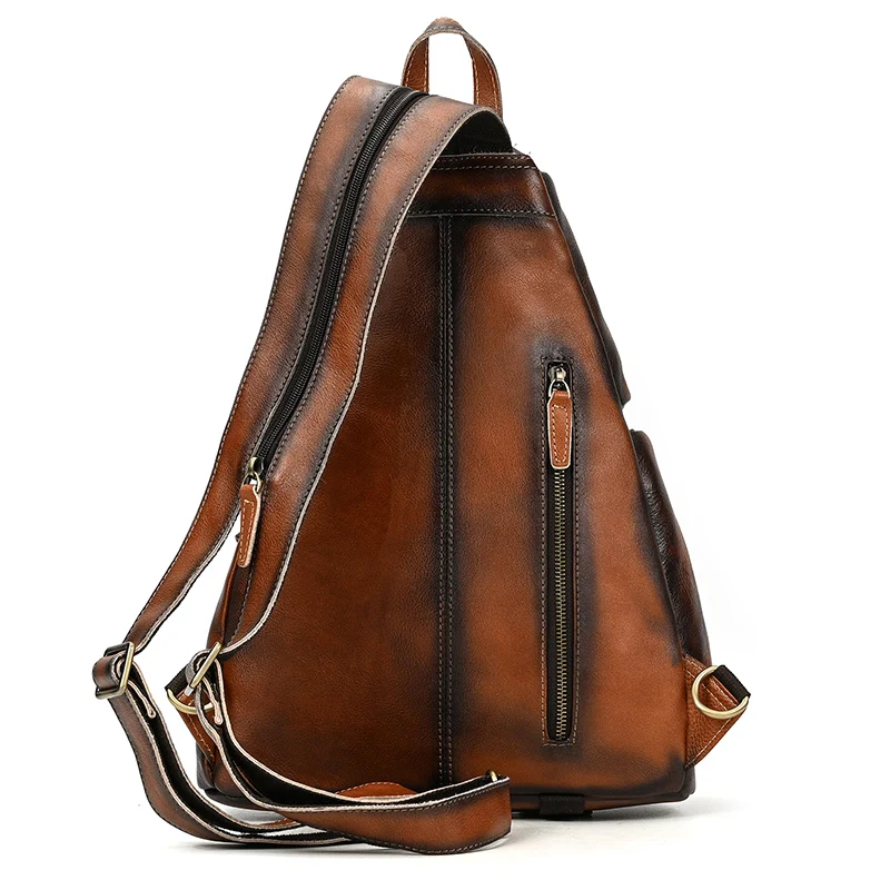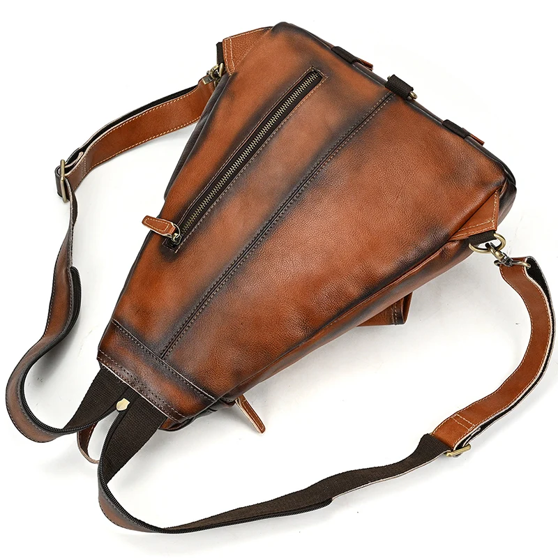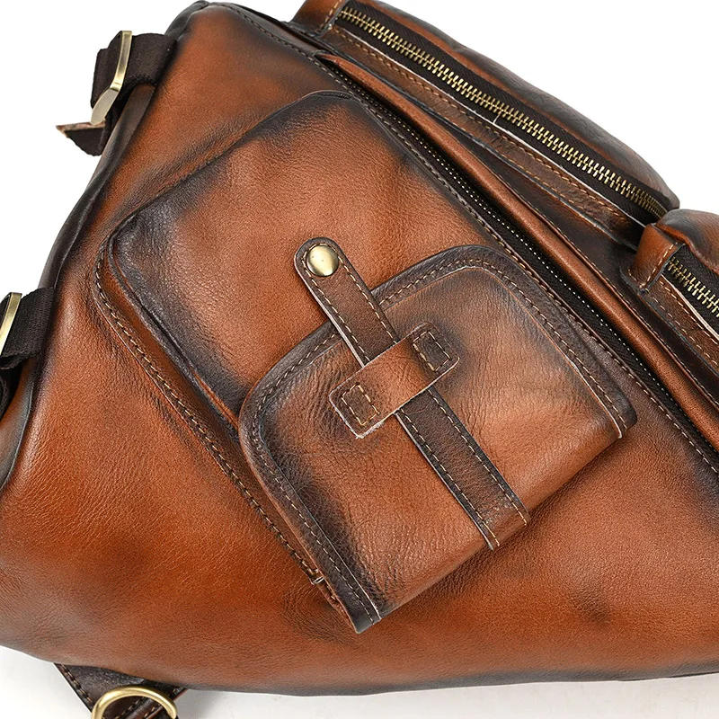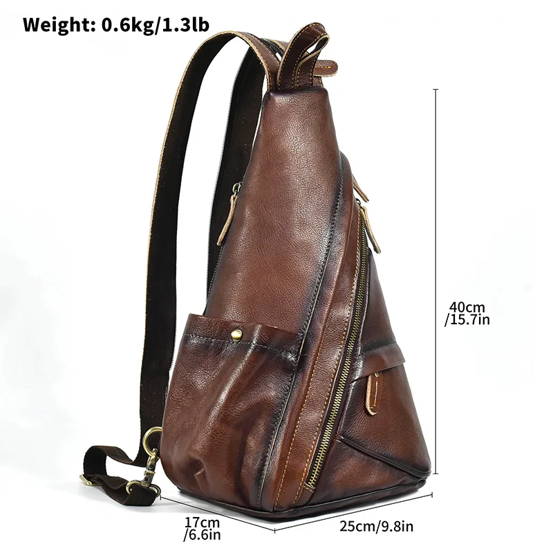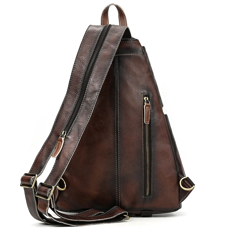 Newsbirds Leather Chest Bag Backpack Dual Use Genuine Leather Crossbody Bag Of Men Male Vintage Style Single Shoulder Backpack