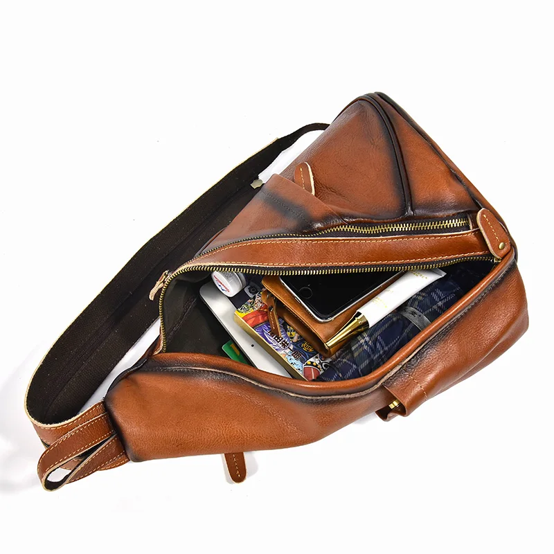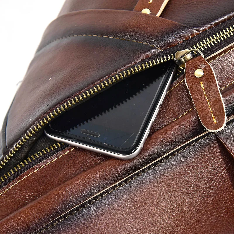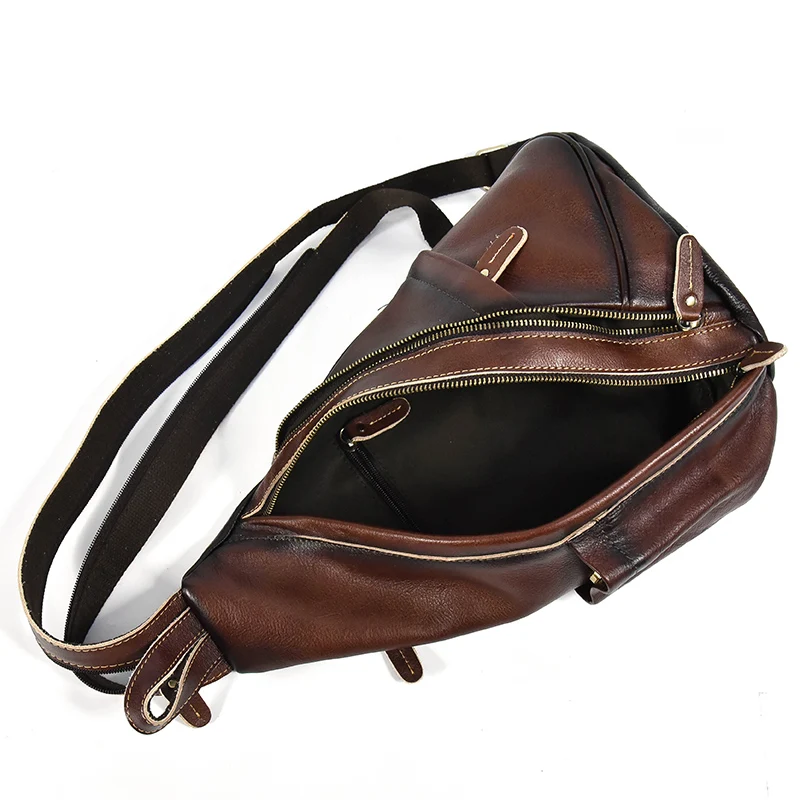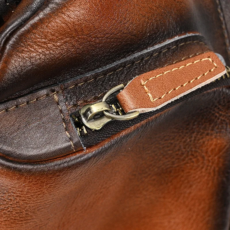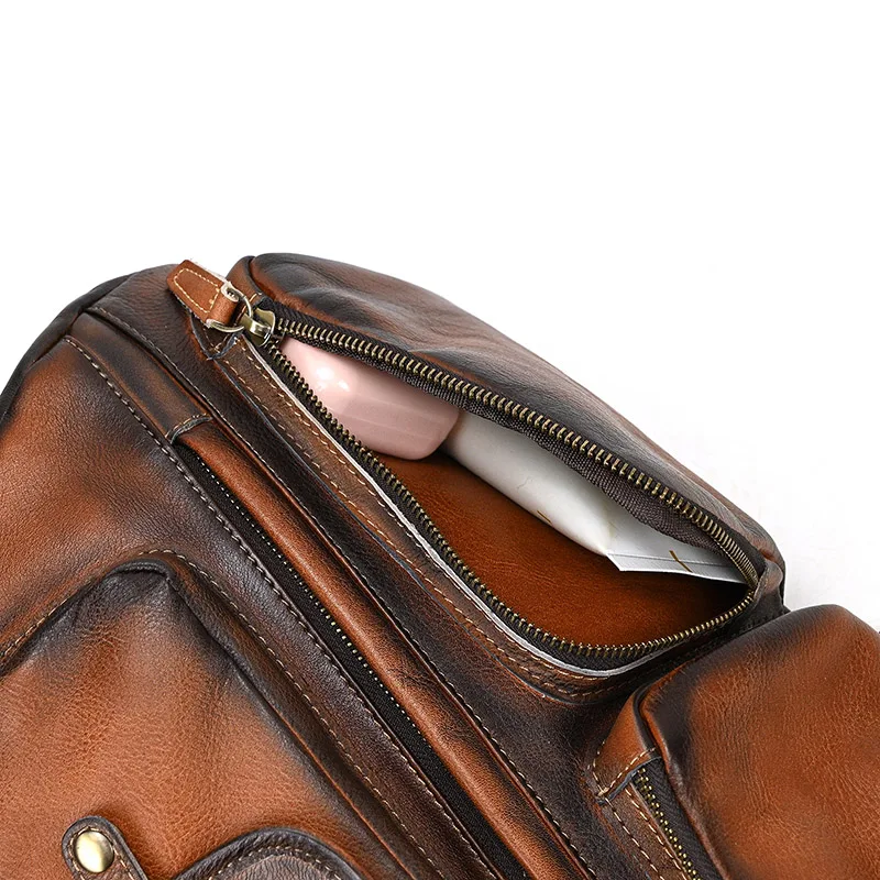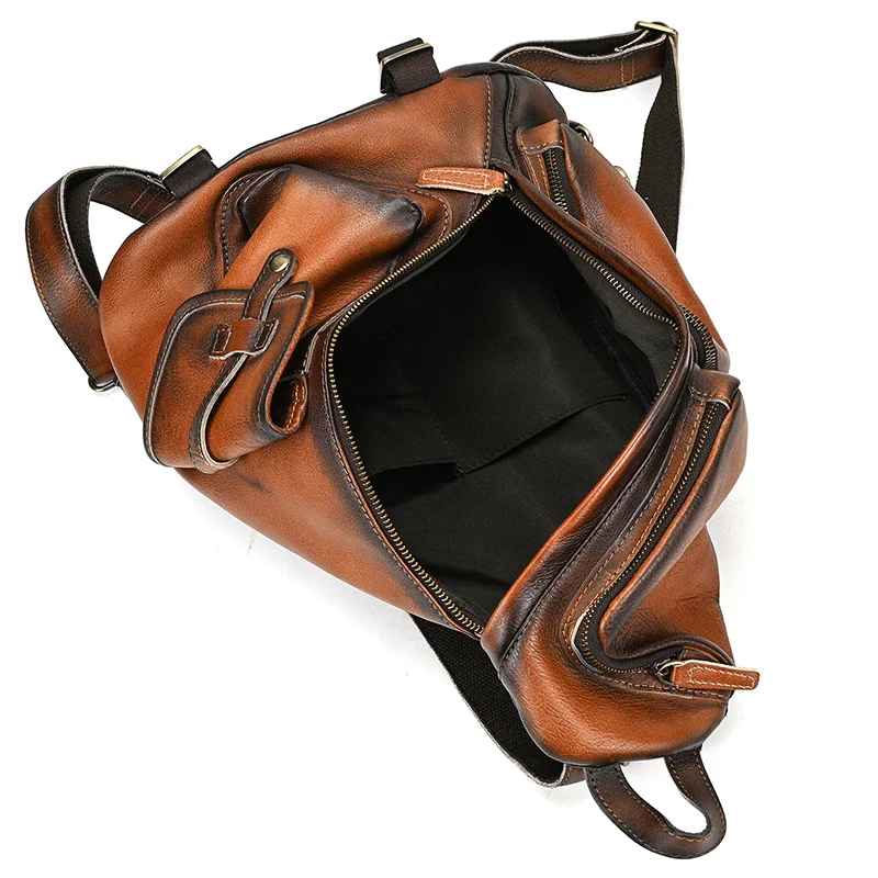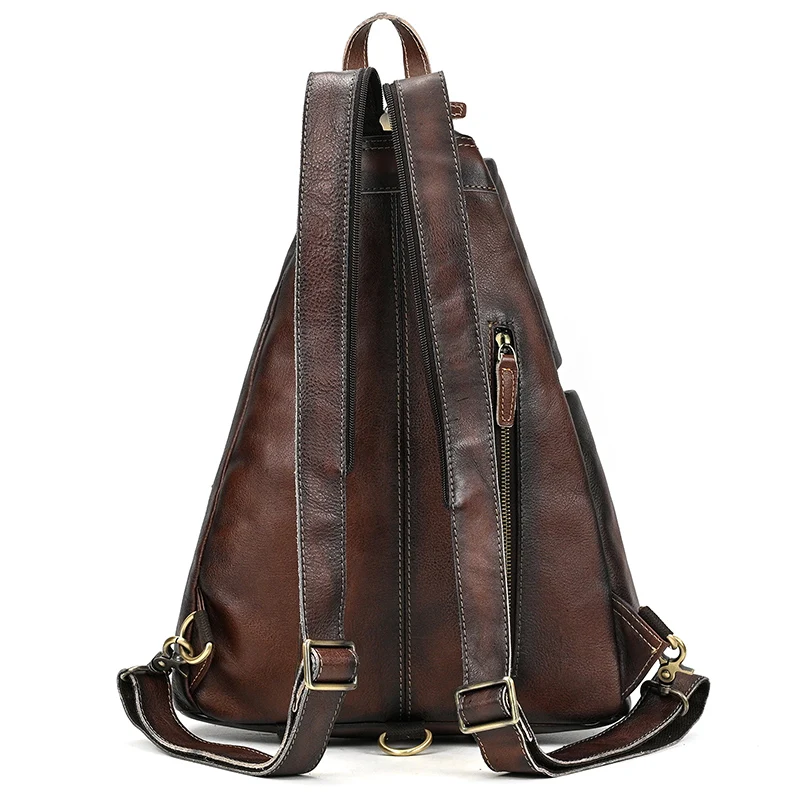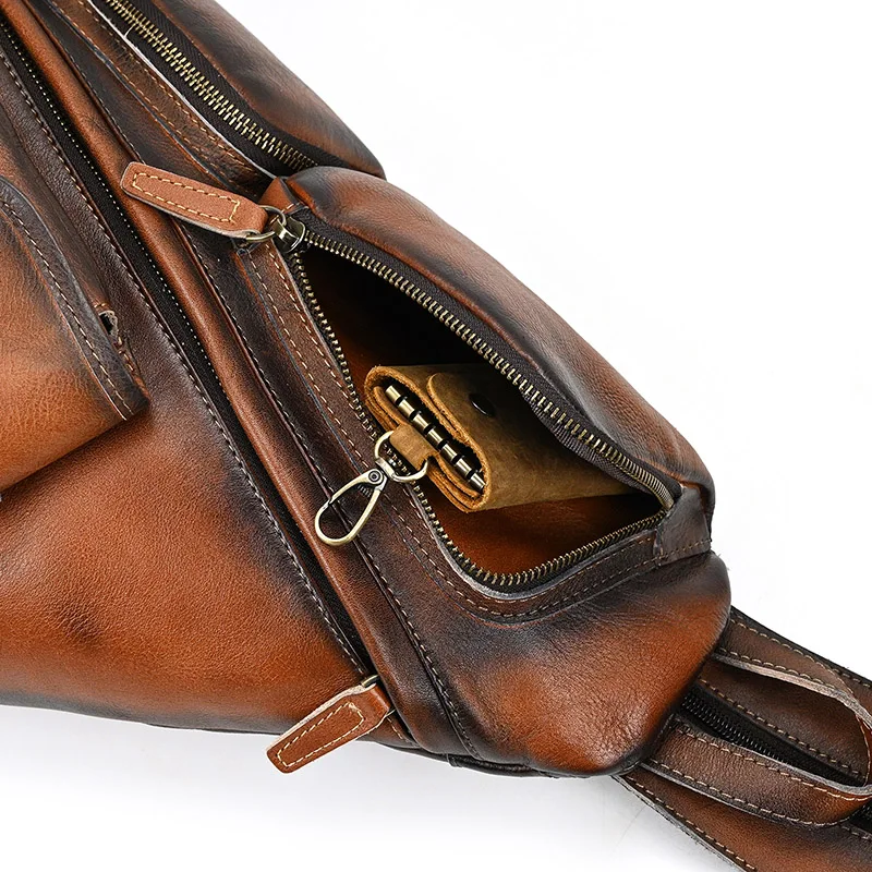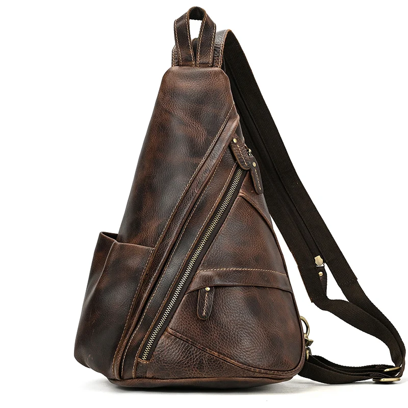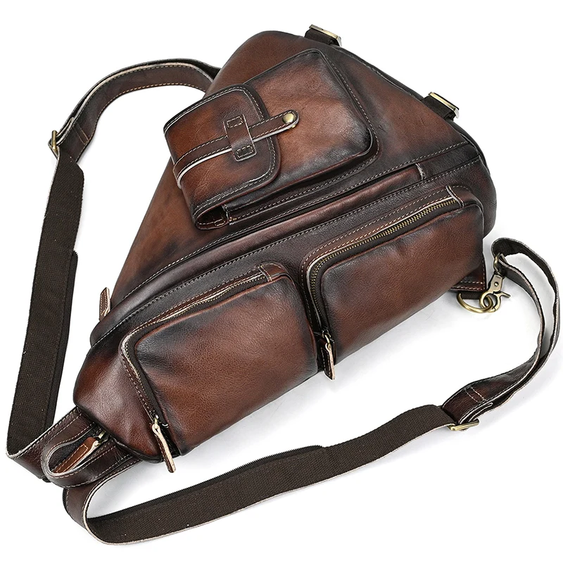 Newsbirds Leather Chest Bag Backpack Dual Use Genuine Leather Crossbody Bag Of Men Male Vintage Style Single Shoulder Backpack