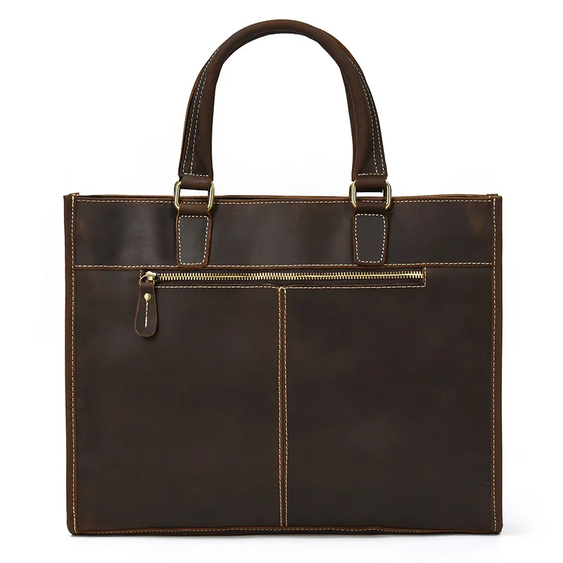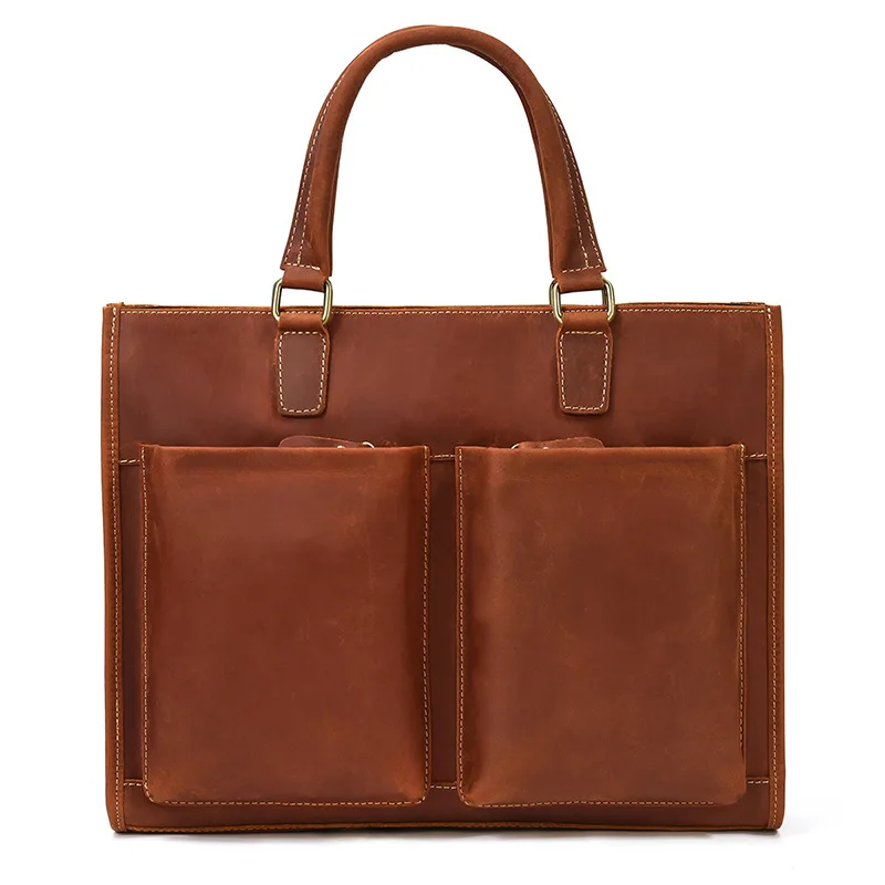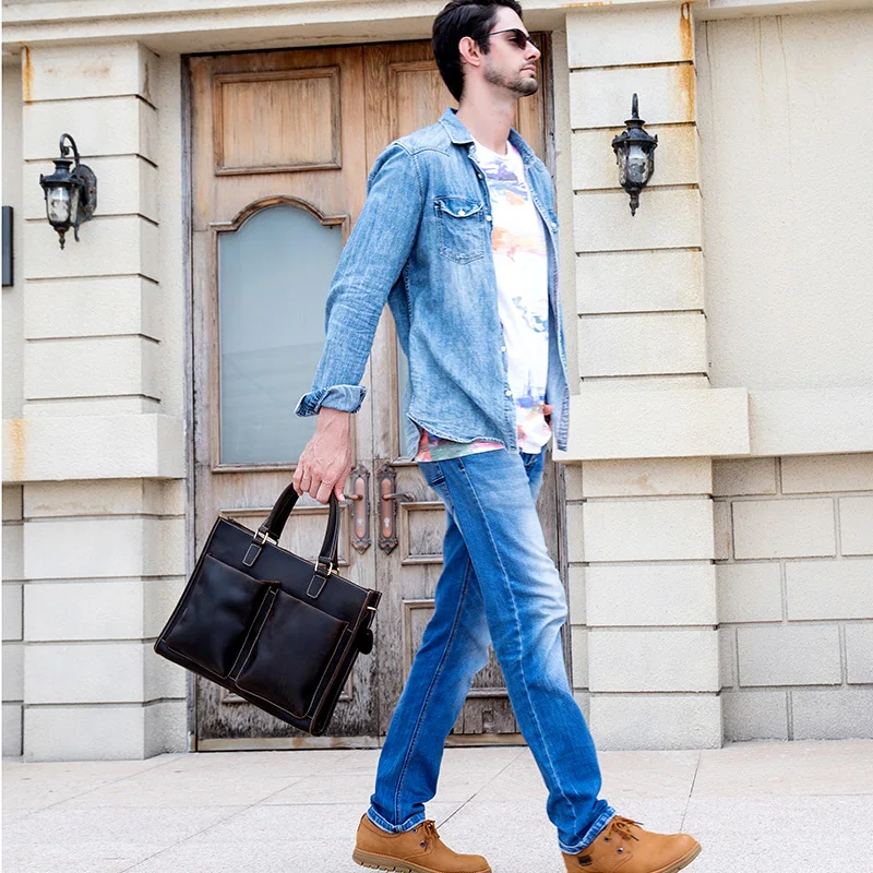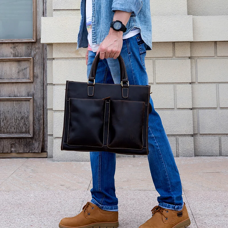 Newsbirds Leather Handbag Men 100% Cow Skin Briefcase With Shoulder Strap Laptop Handbag With 2 Front Pockets New Designer Bag