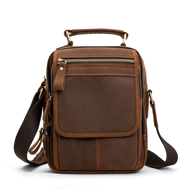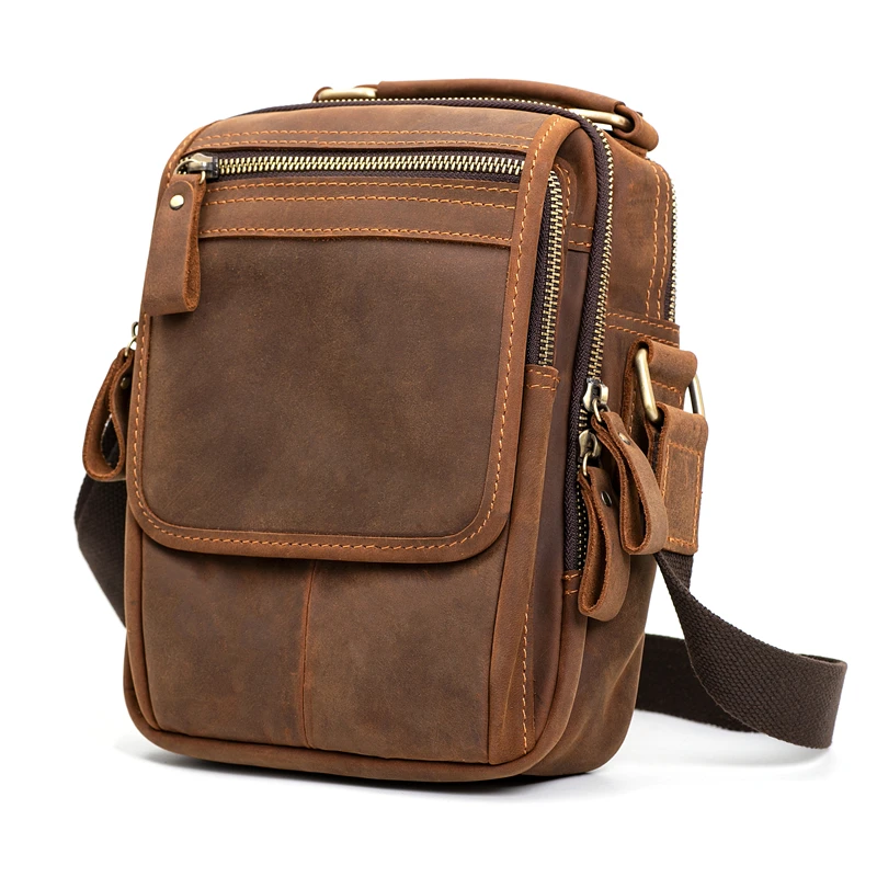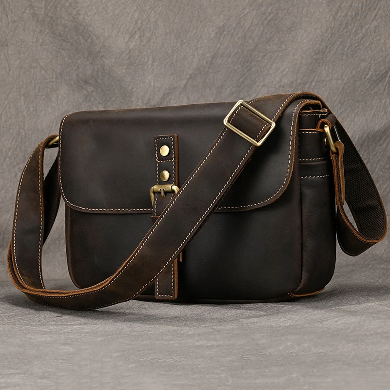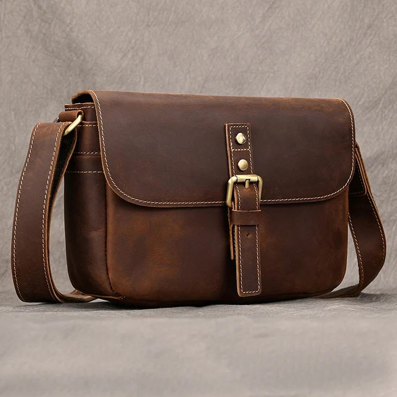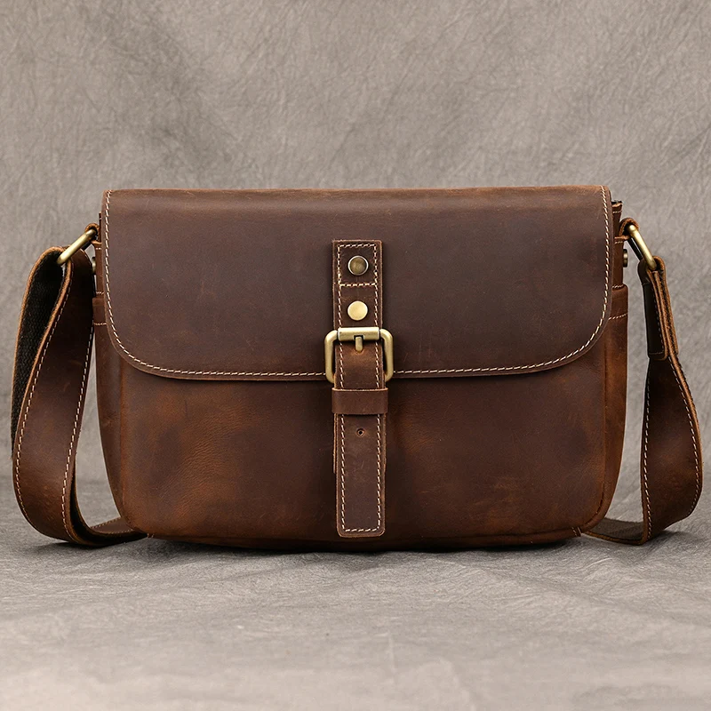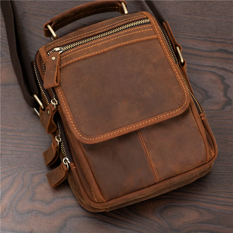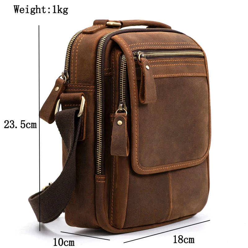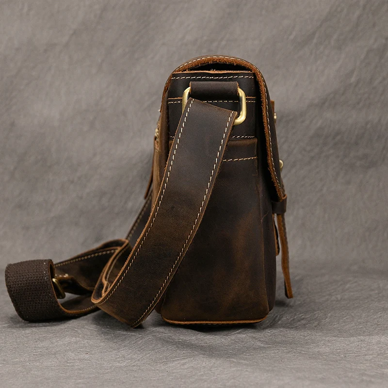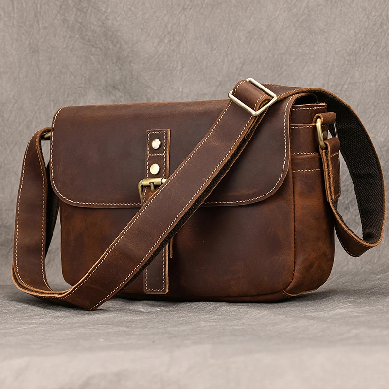 Newsbirds Leather Shoulder Bag Crossbody Bag Genuine Leather Mens Crossbody Bags Crazy Horse leather Vintage Sling Bag