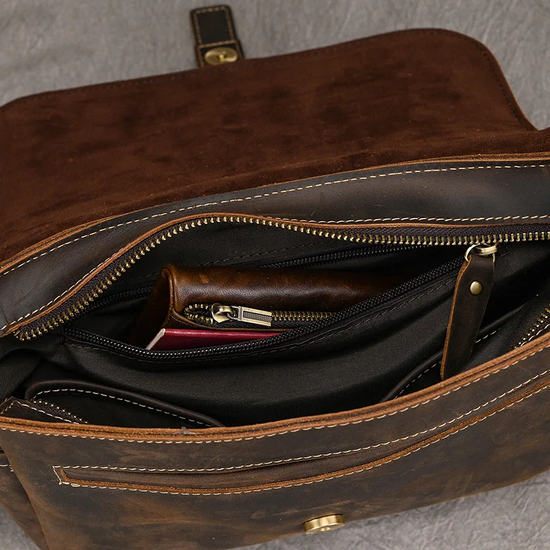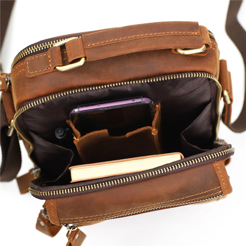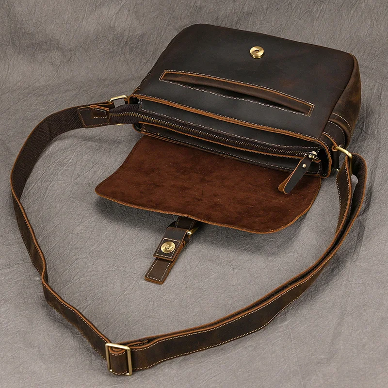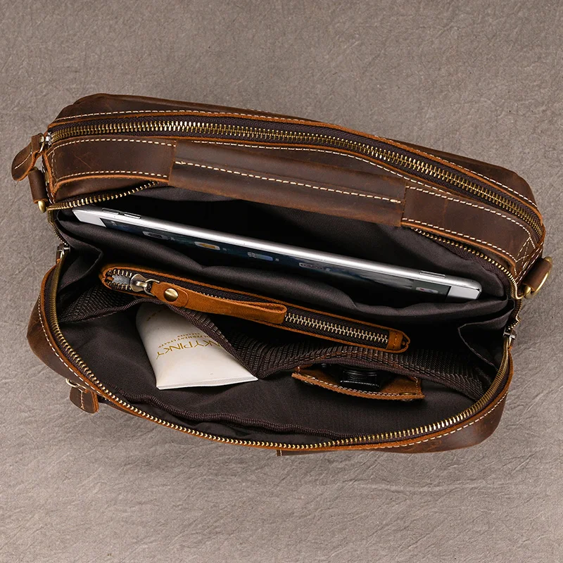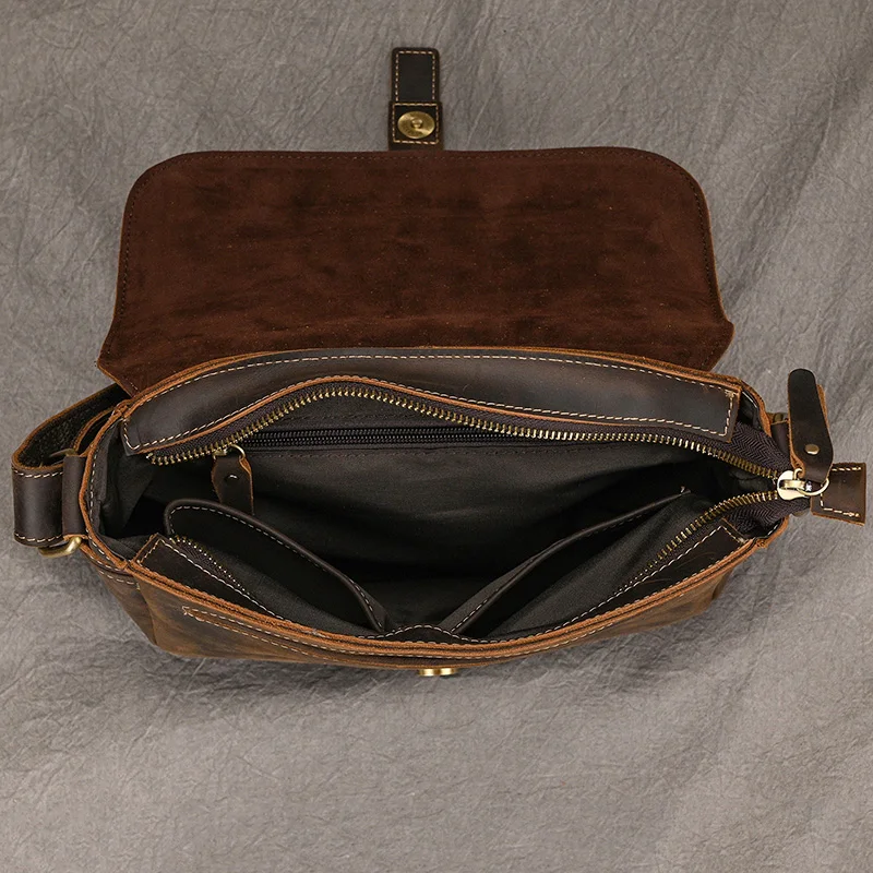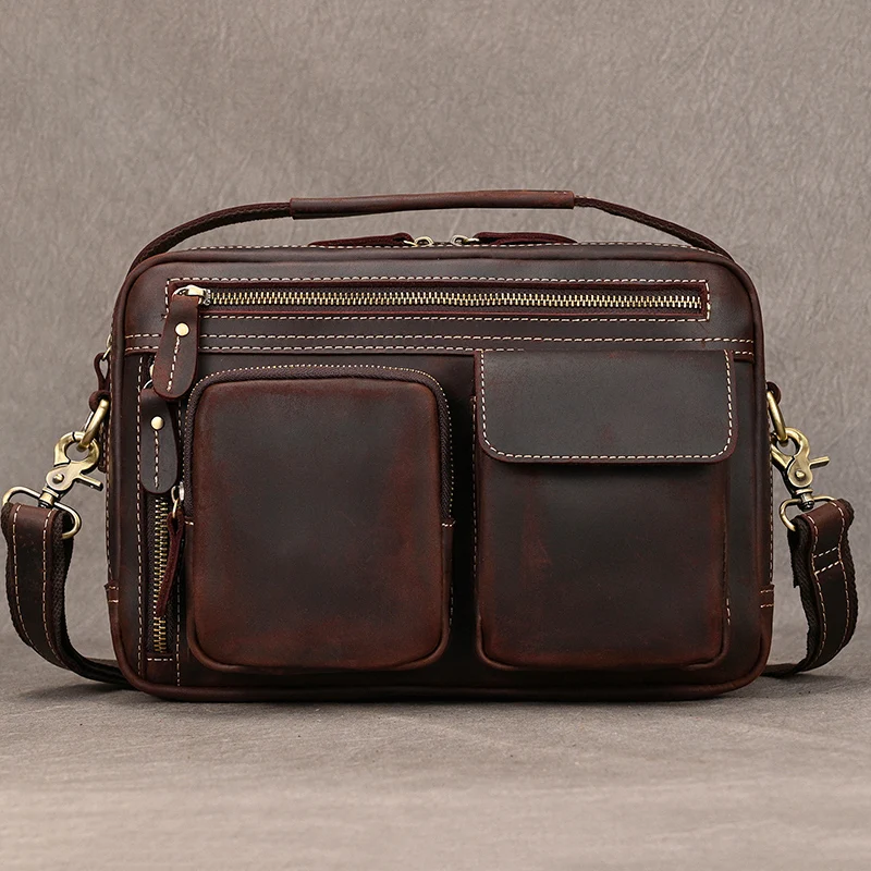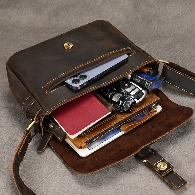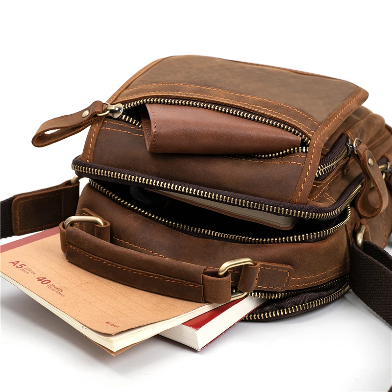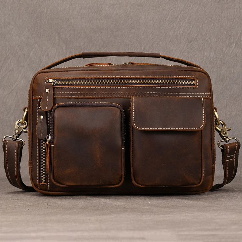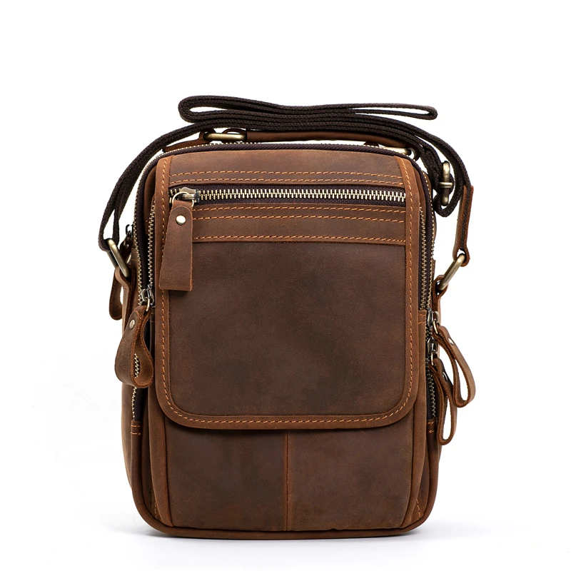 Newsbirds Leather Shoulder Bag Crossbody Bag Genuine Leather Mens Crossbody Bags Crazy Horse leather Vintage Sling Bag