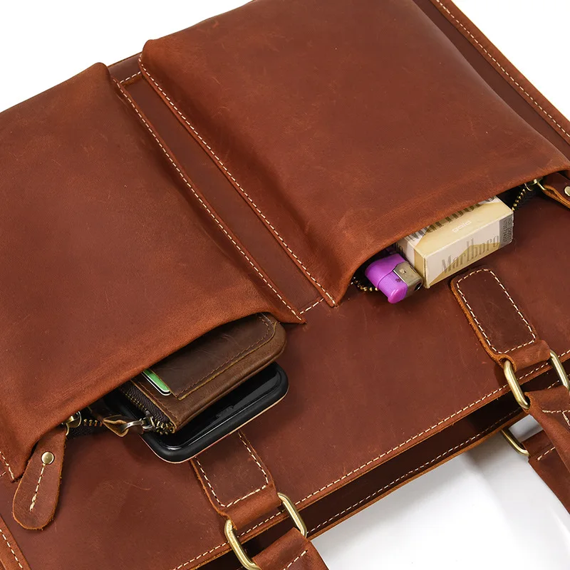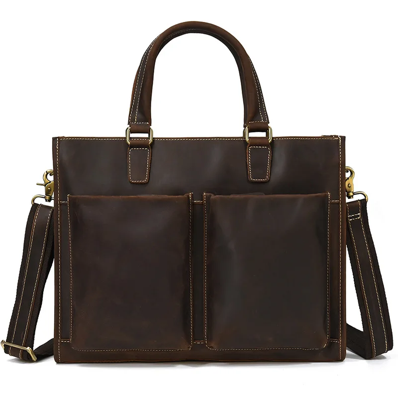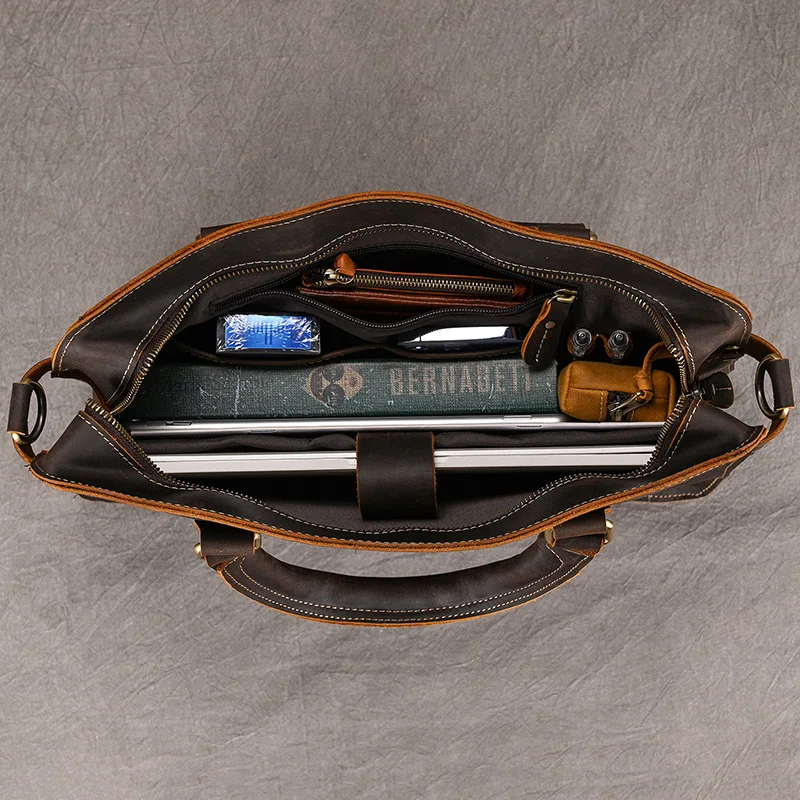 Newsbirds Mens Leather Handbag 15.6 Inch PC Notebook Laptop Briefcase Shoulder Bag 100% Cowhide Man Bag Male Business Bag