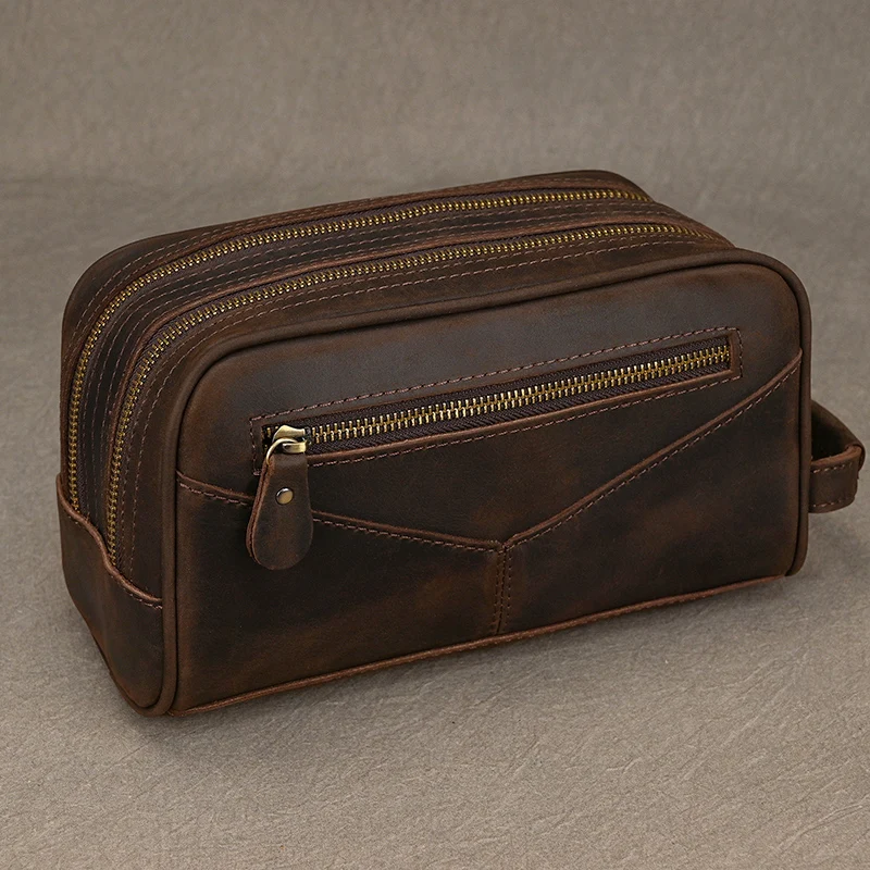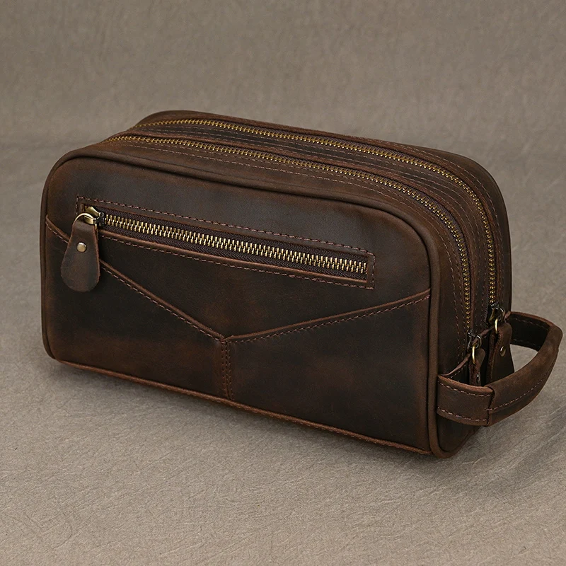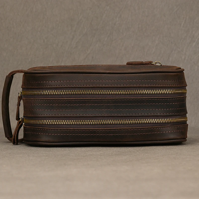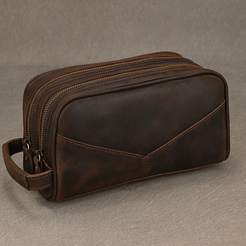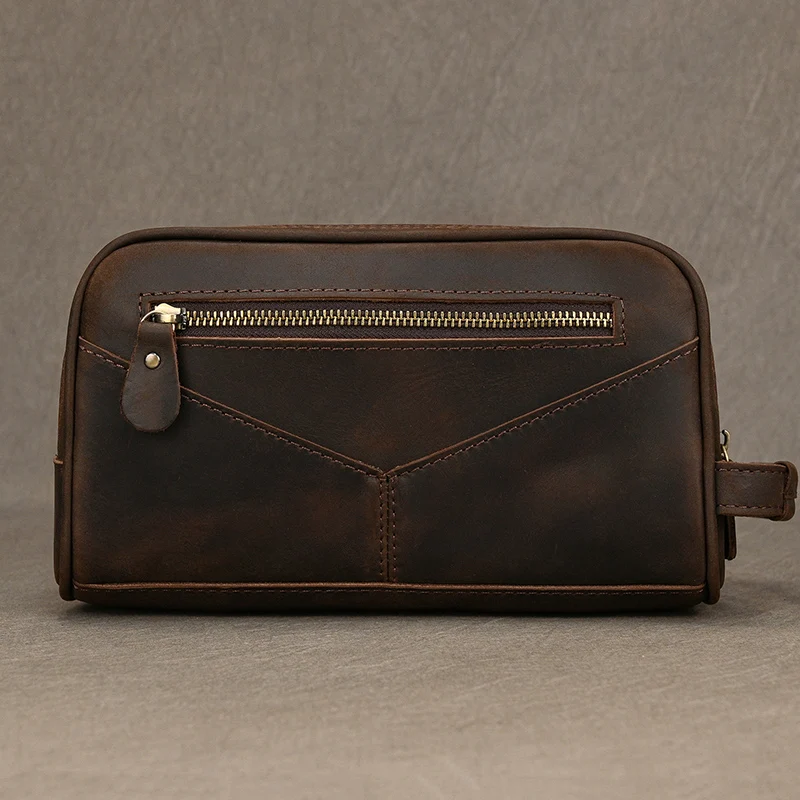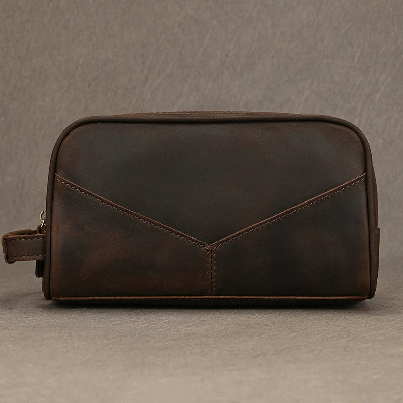 Newsbirds Thick Leather Clutch Bag mens wash bag storage bag genuine leather Toiletry kits bag real cowskin make up day clutch