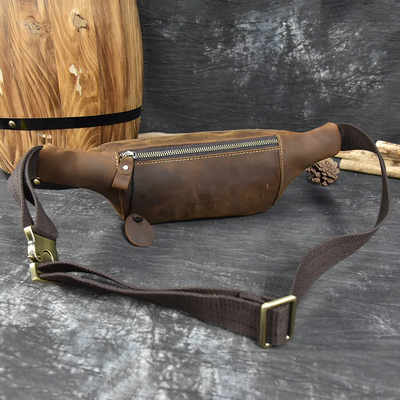 Real Leather Wait Bag Summer Outdoor Walking Bag Portable Waist Packs Crazy horse leather male fanny pack sling bag chest bag