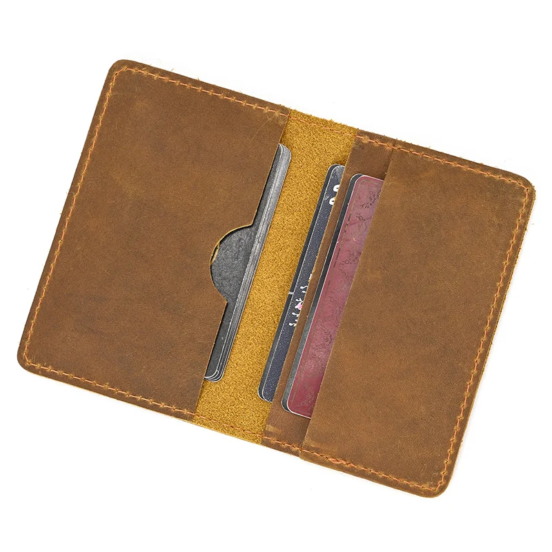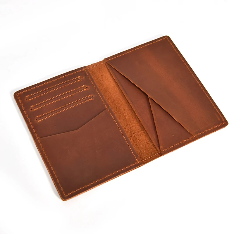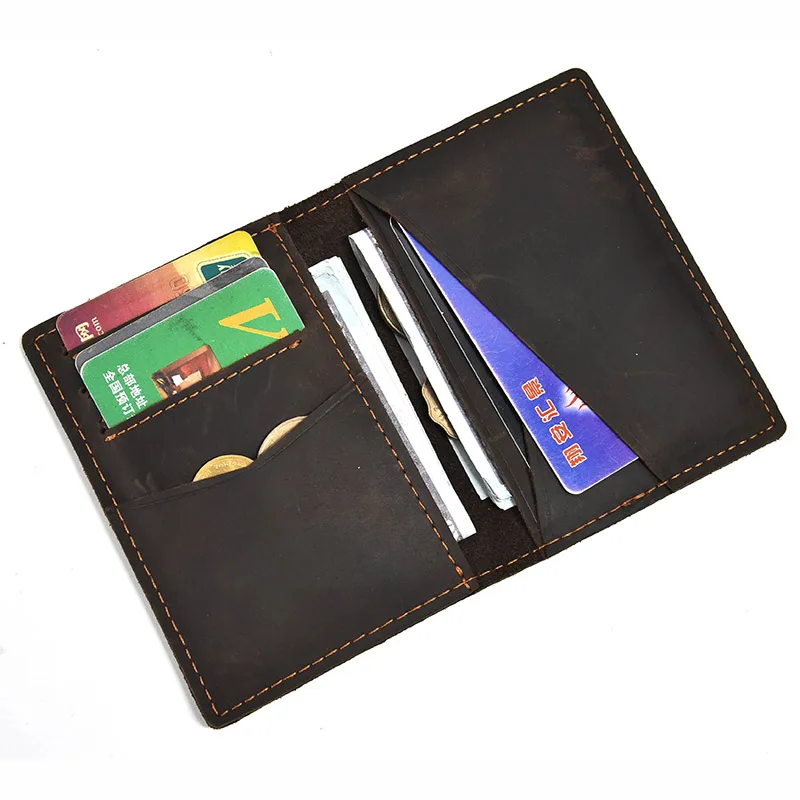 Retro Fashion Leather Passport Wallet Card Holder Bifold Men’s Slim Wallets Genuine Leather Passport Holder Cover For Man Woman