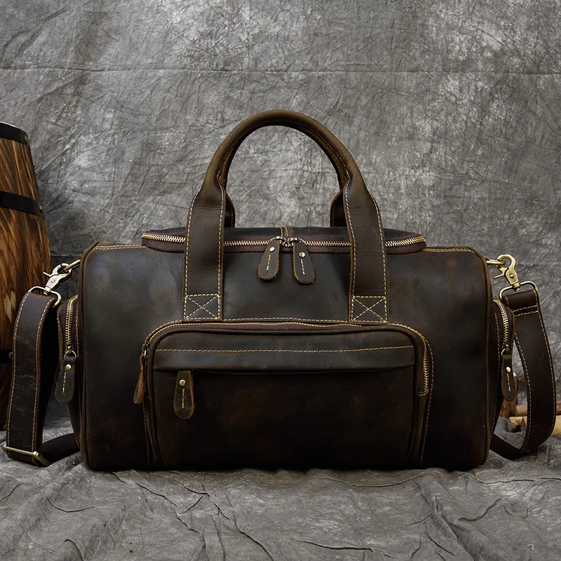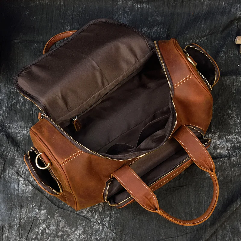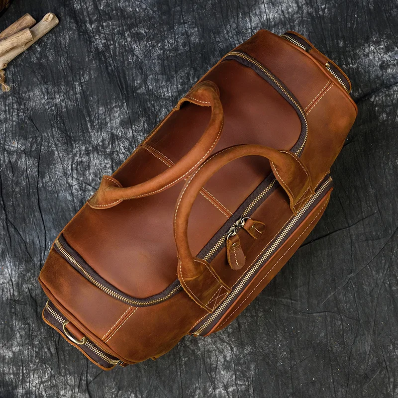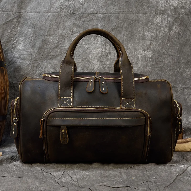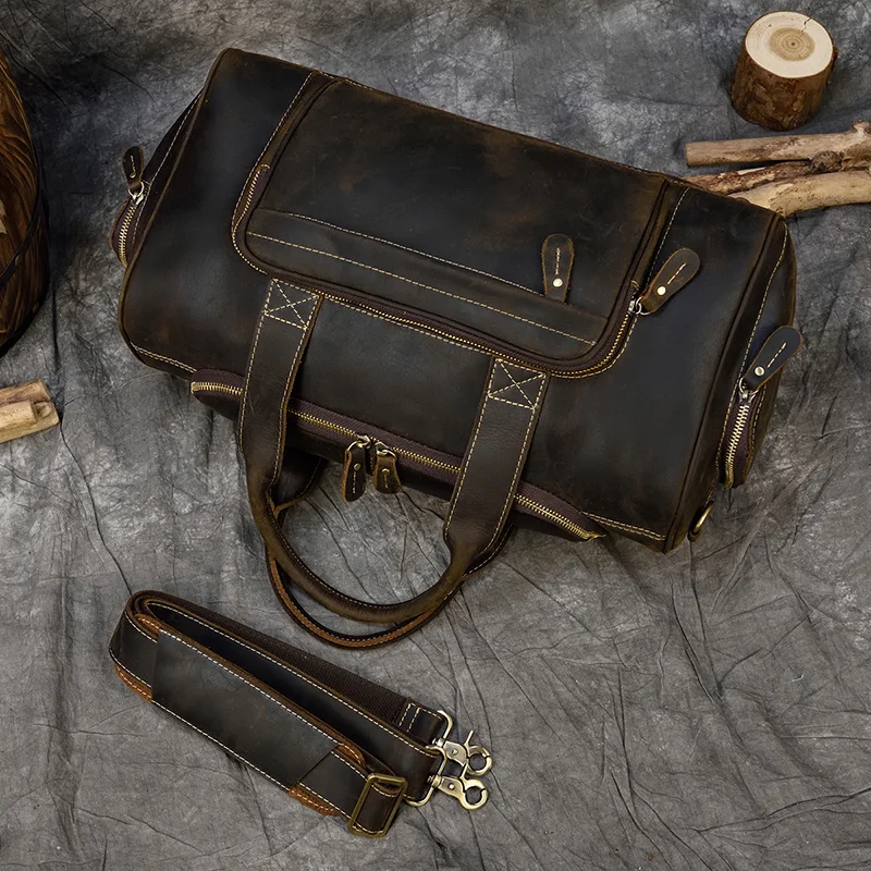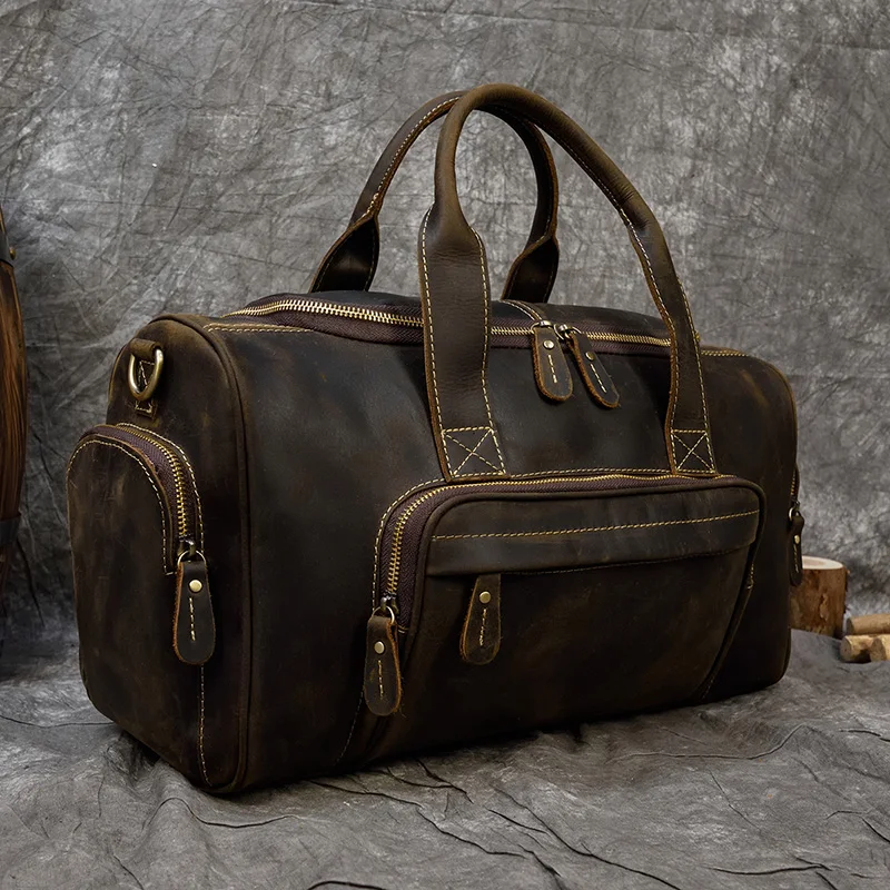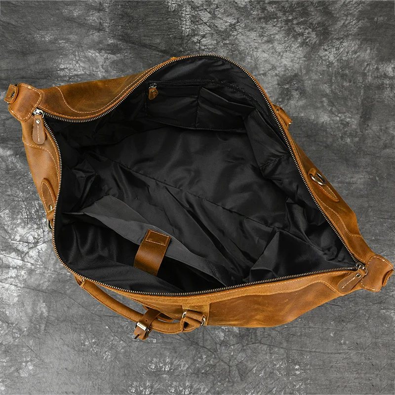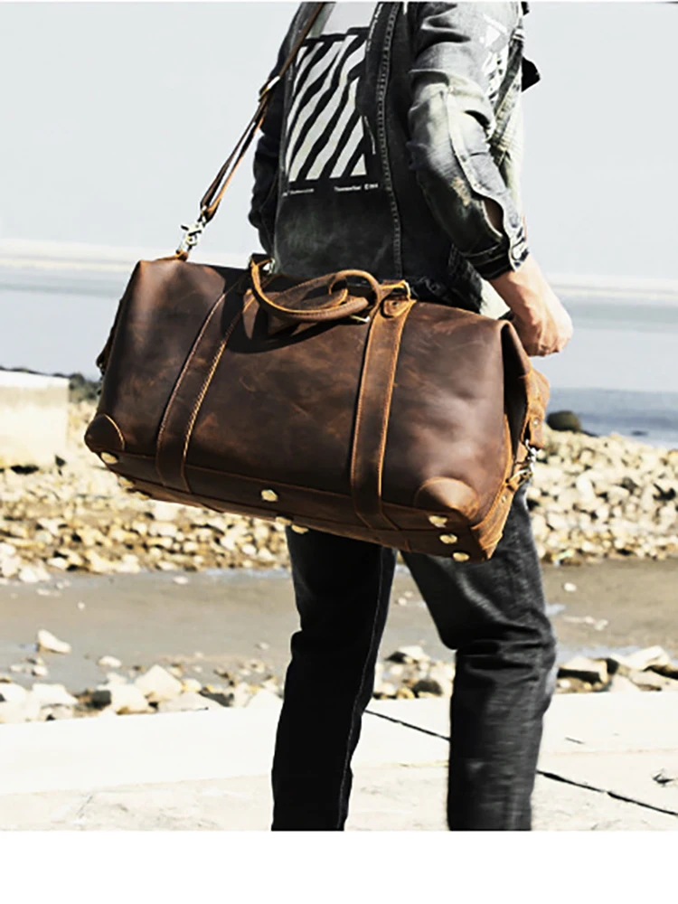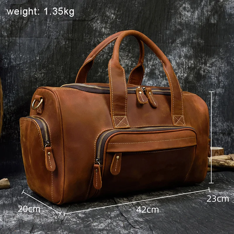 Retro Genuine Leather Retro Large Capacity Men Leather Duffle Bag Vintage Shoulder Bag Cowhide Weekender Bag Man Totes Handbag