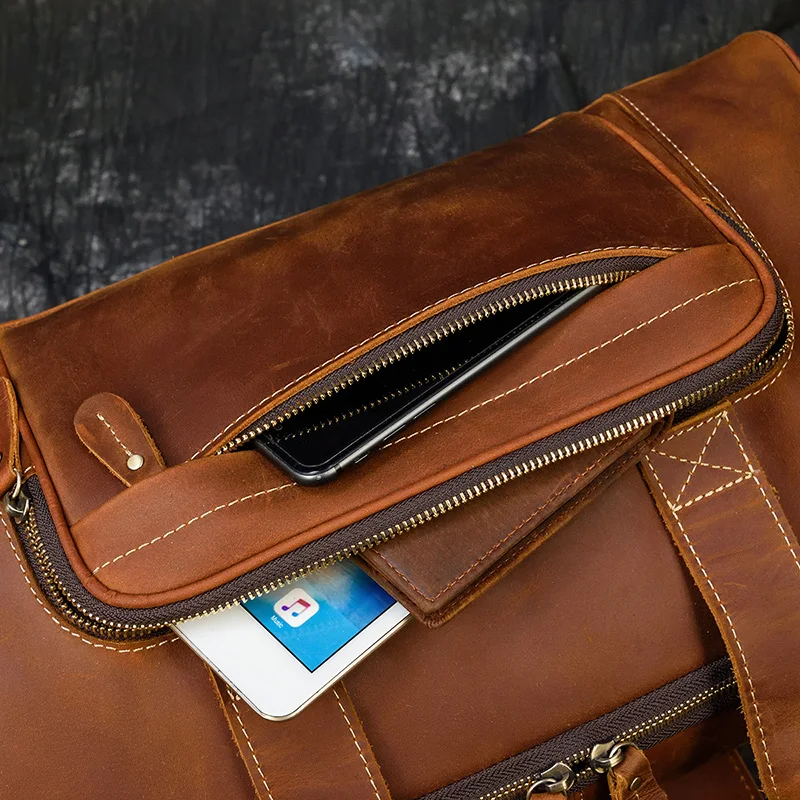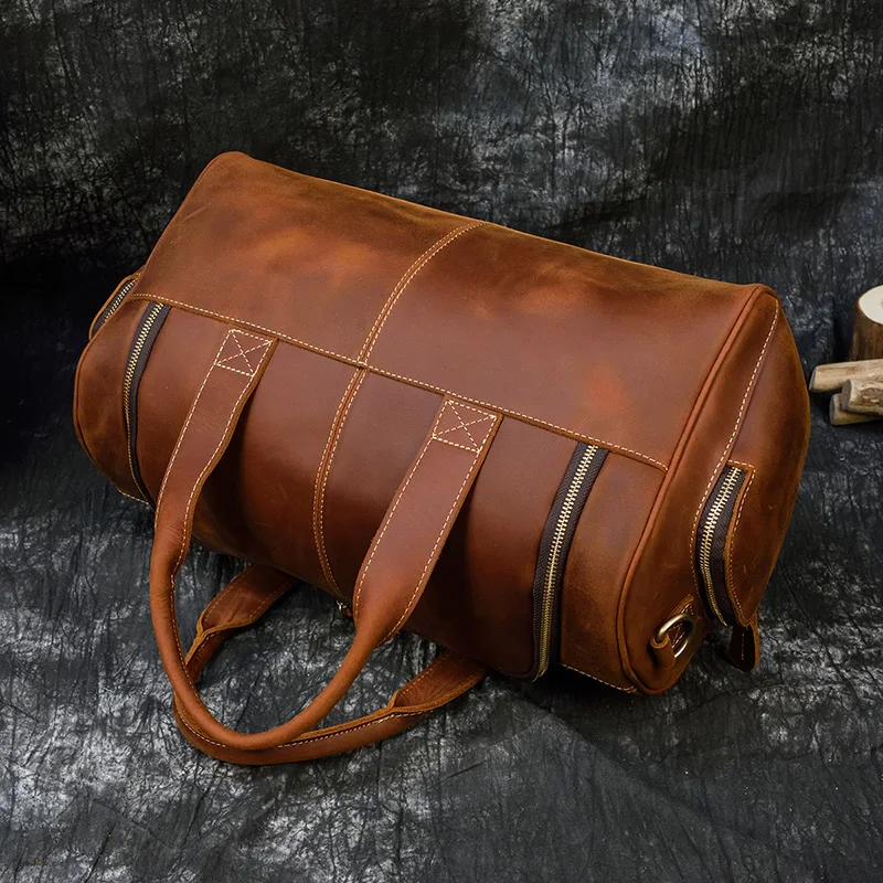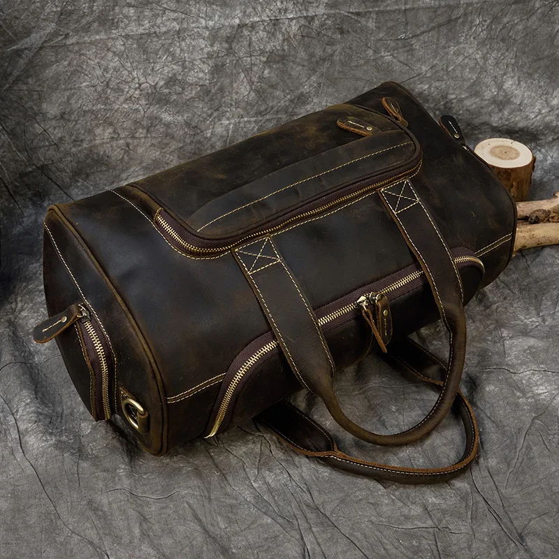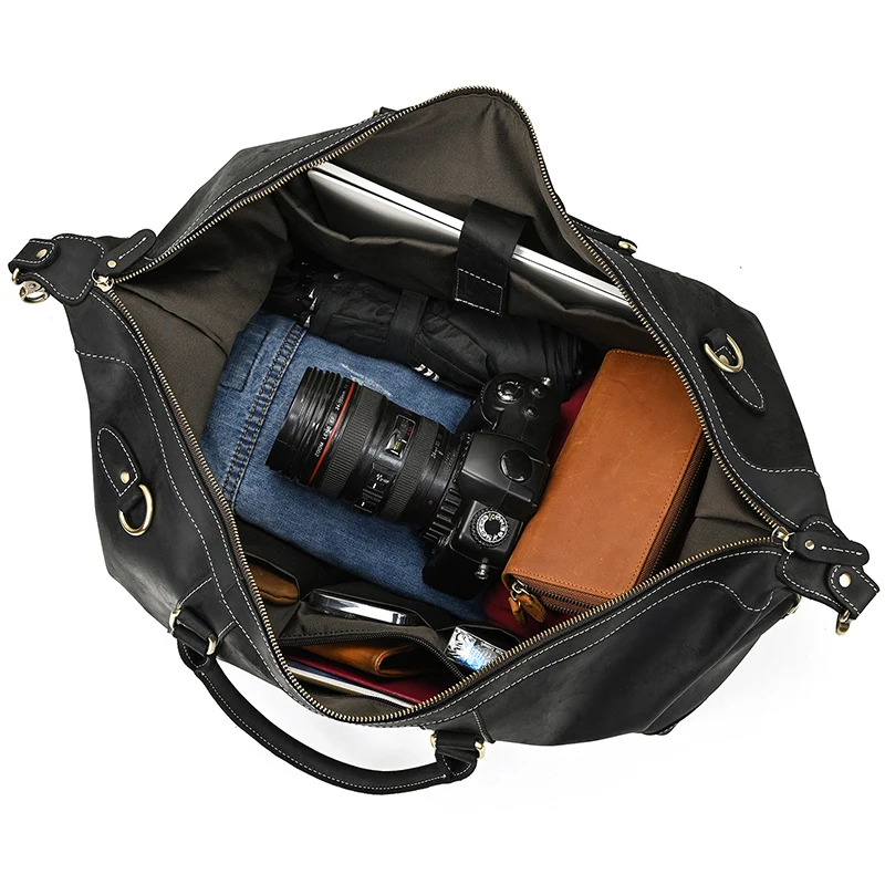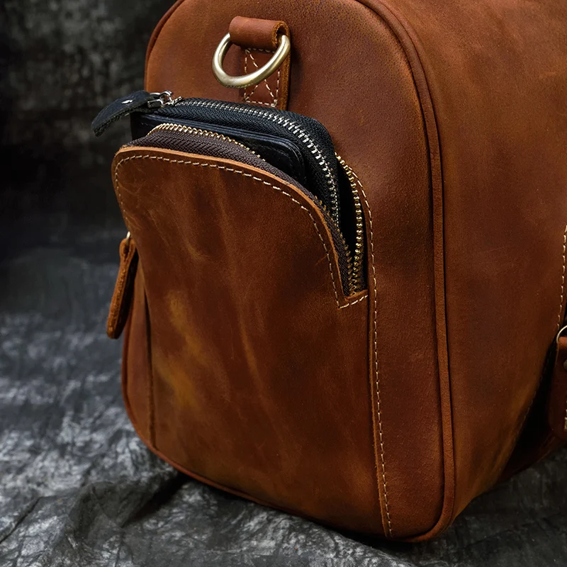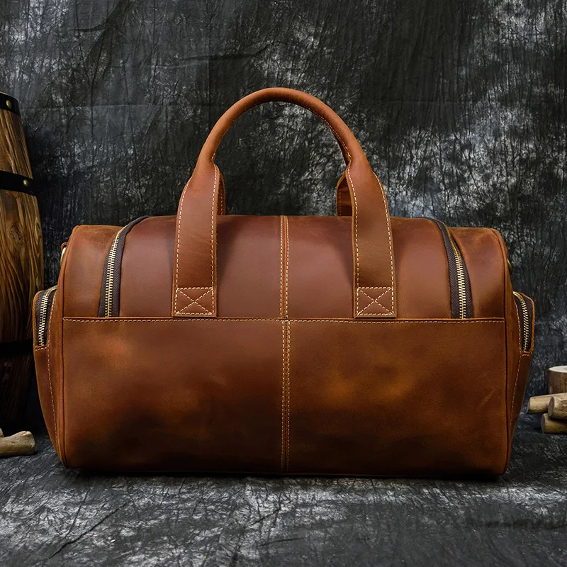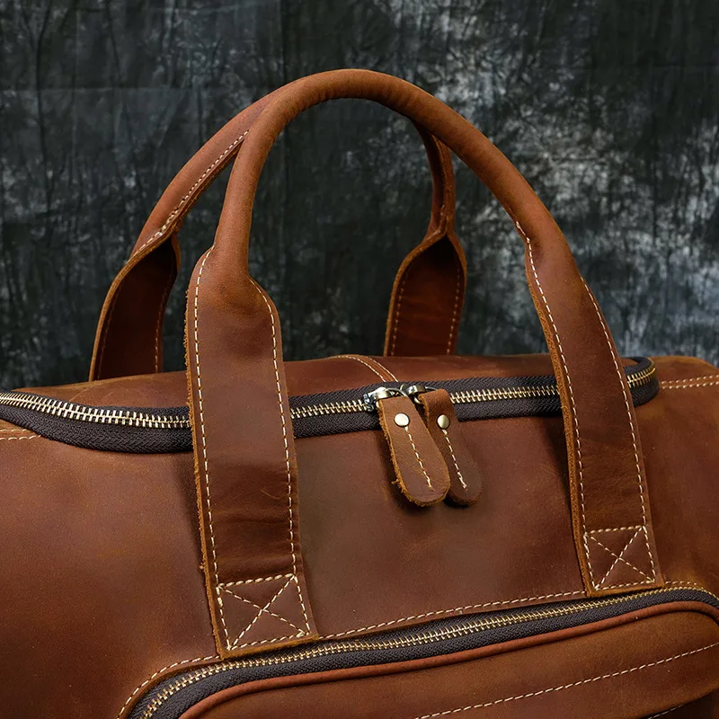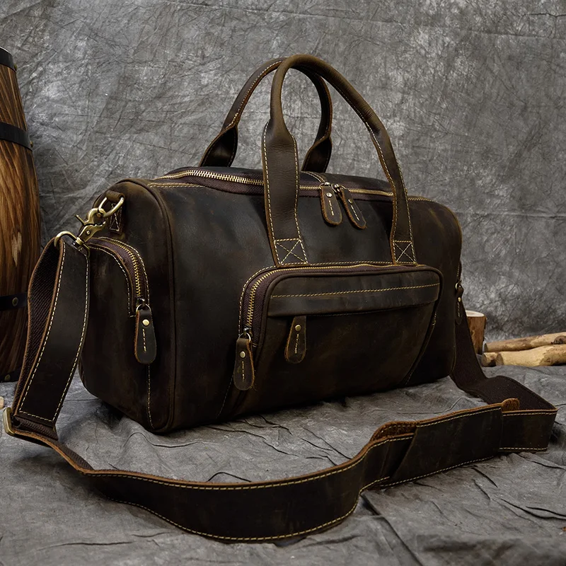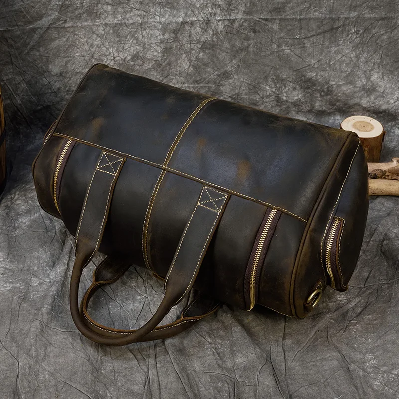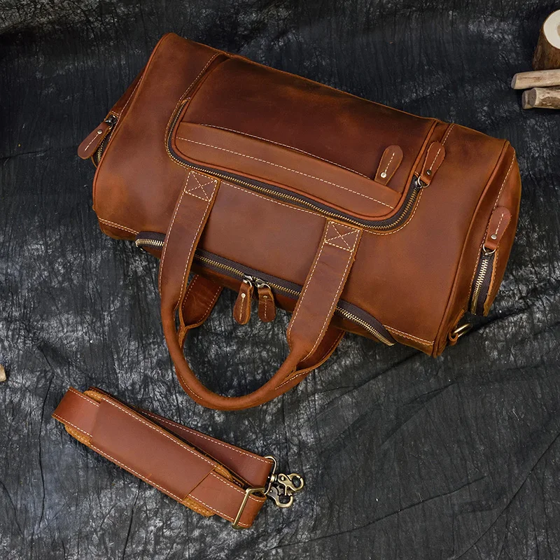 Retro Genuine Leather Retro Large Capacity Men Leather Duffle Bag Vintage Shoulder Bag Cowhide Weekender Bag Man Totes Handbag