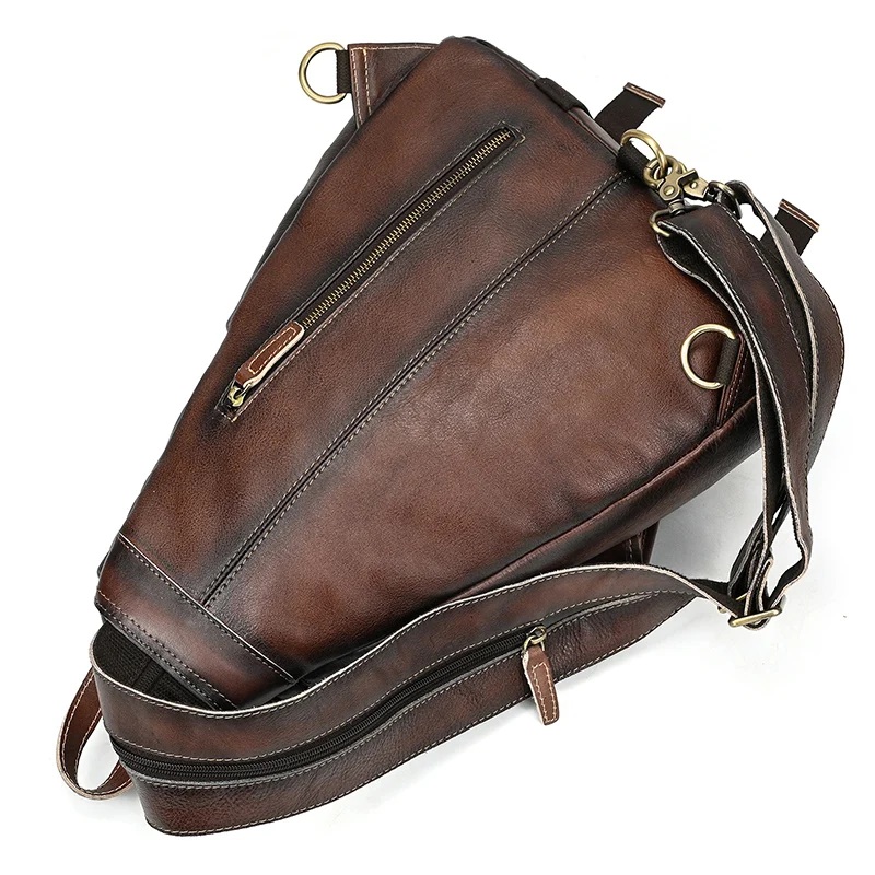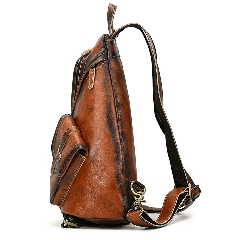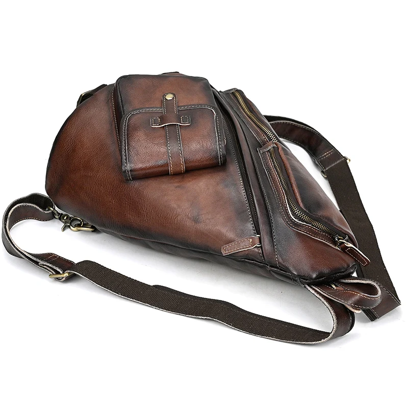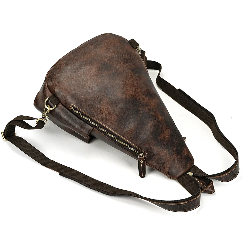 Single Shoulder Bagpack Genuine Leather Chest Bag Outdoor Riding Bag Chest Packs For Biker Men Male Sling Bags Cow Leather