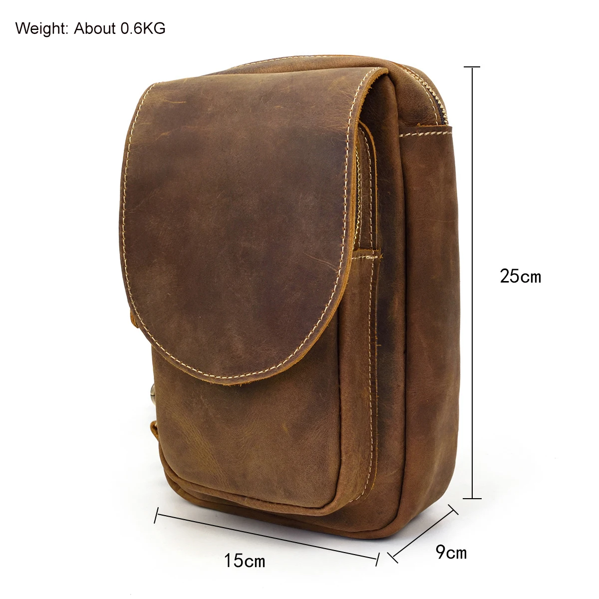 Unique Leather Chest Bag Crossbody Crazy Horse Leather Sling Bag Vintage Fashion Crossbody Bag Chest Pack For Man ox horn bag